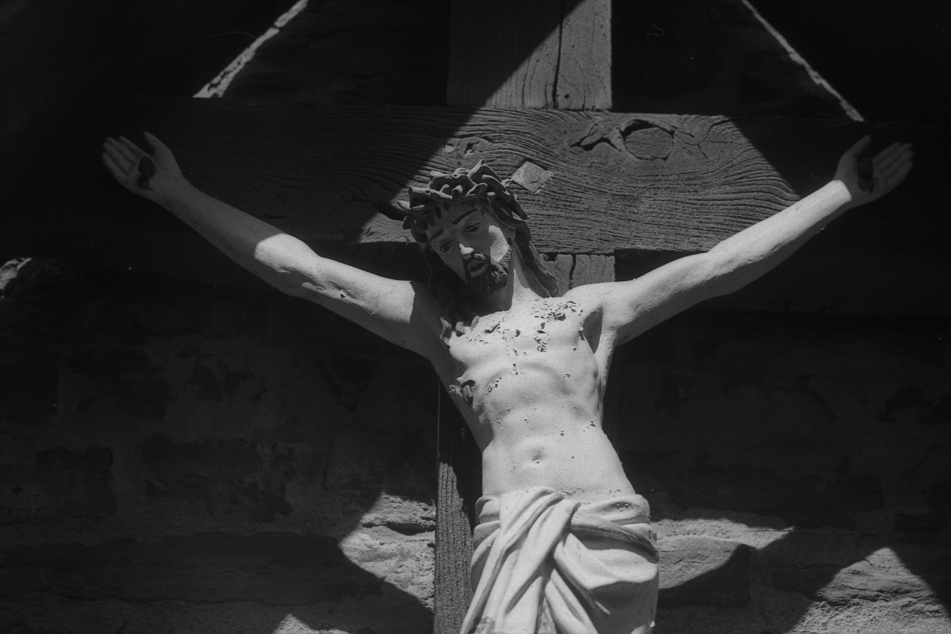 Ich mein, da unten beim Jesus am Kreuz, da kann man es recht gut erkennen, dass das wahrscheinlich das 100er war, genauso wie, dass die Kirche wohl mit dem 28er entstanden sein wird. Hübsches Wetter hatten wir auf jeden Fall, siehe Schattenschlag in Jesus's Gesicht. Ach, wenn wir doch nur schon wieder Mai hätten. OK, das miese Wetter draußen hat auch sein Gutes: Ich kann endlich mal all die s/w-Filme, die ich übers Jahr gemacht habe, raus hauen und so ein bisschen aufholen!