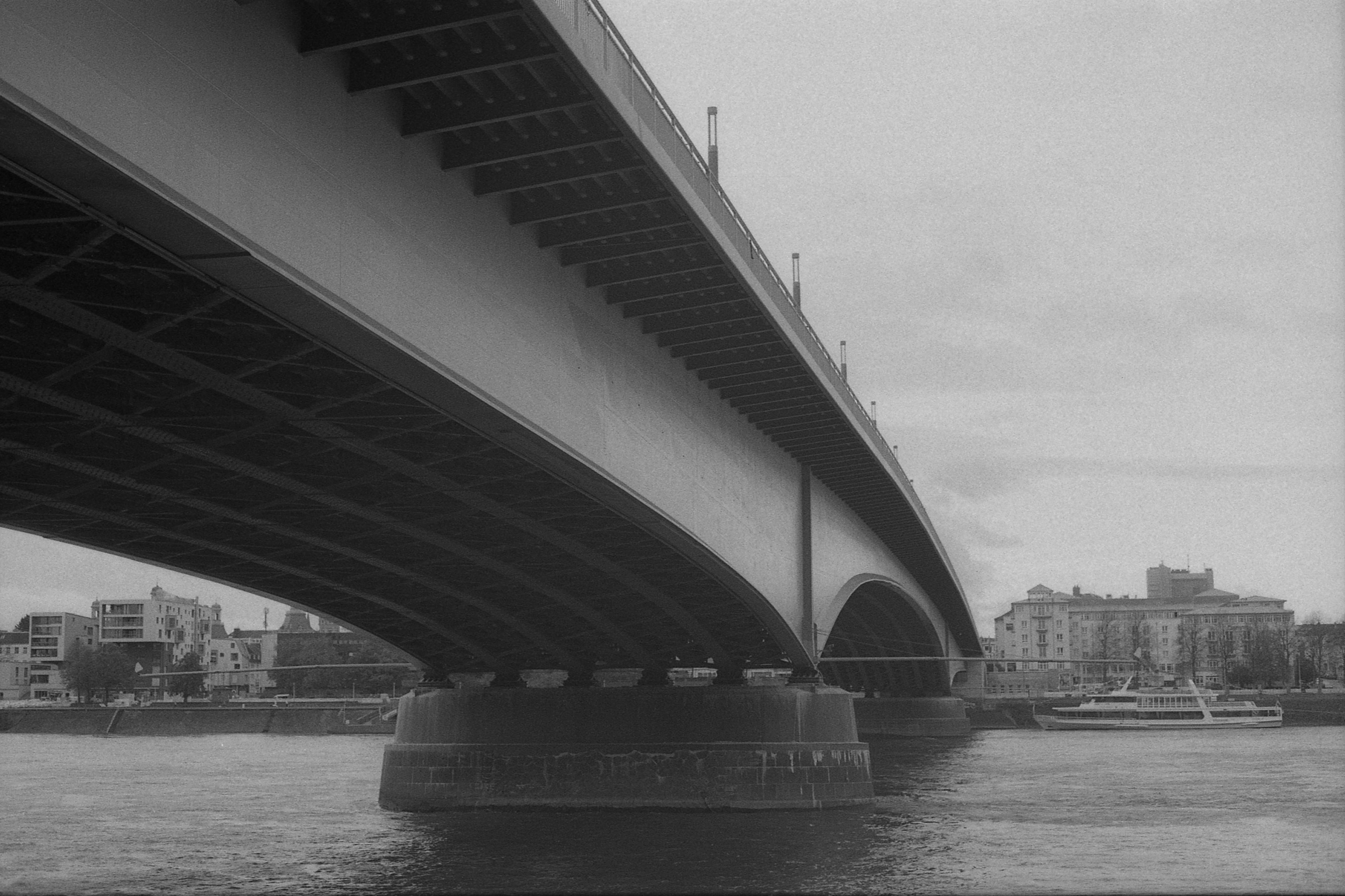 Geparkt wie immer auf der beueler Seite unter der Brücke, die ich dann auch gleich mal ins Visier genommen habe. (50mm, 1/1000s, f/4.) Die übliche Ansicht des Rheins, die ich ja auch immer mal wieder dabei habe. Die Kamera macht hier alles richtig und die Struktur der Stahlträger unter der Brücke kommt recht gut raus.