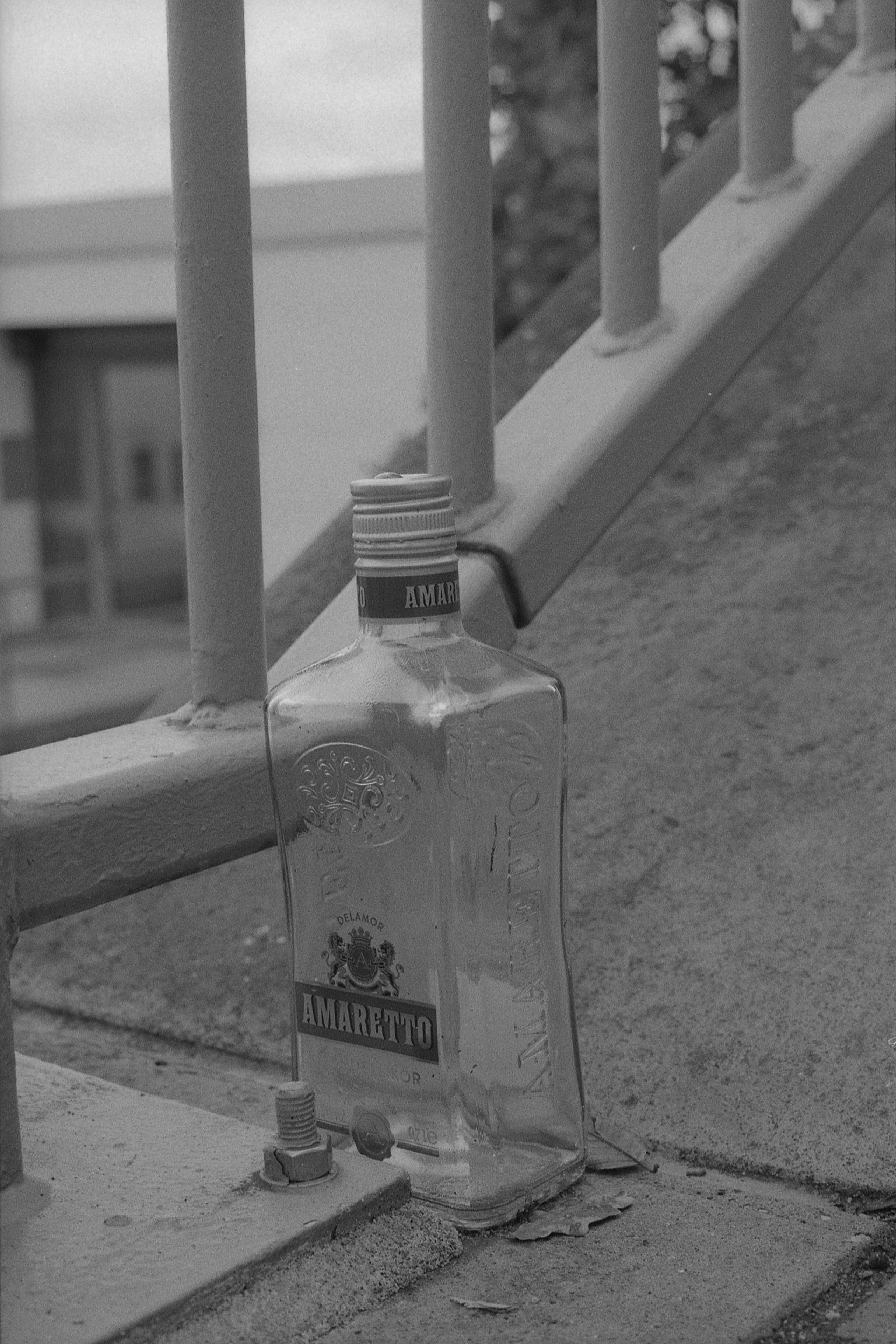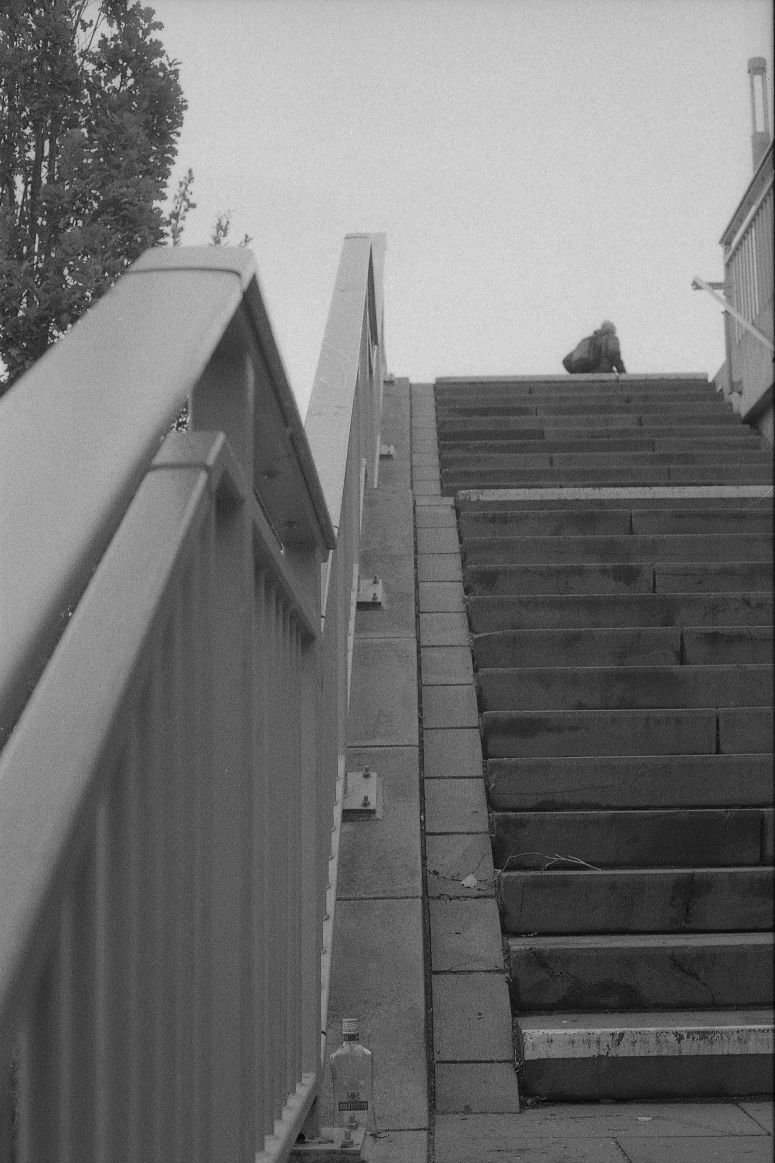 Und dann mussten wir natürlich die Treppe hoch und da habe ich mal das Geländer genauer unter die Lupe genommen. (50mm, unbekannte Werte.) Man beachte unten die leere Amaretto-Flasche (Hmm, Amaretto!) und oben die Person, dick verpackt gegen den Wind! Aber Grundsätzlich mal eine Übung im Fluchtpunktfinden.