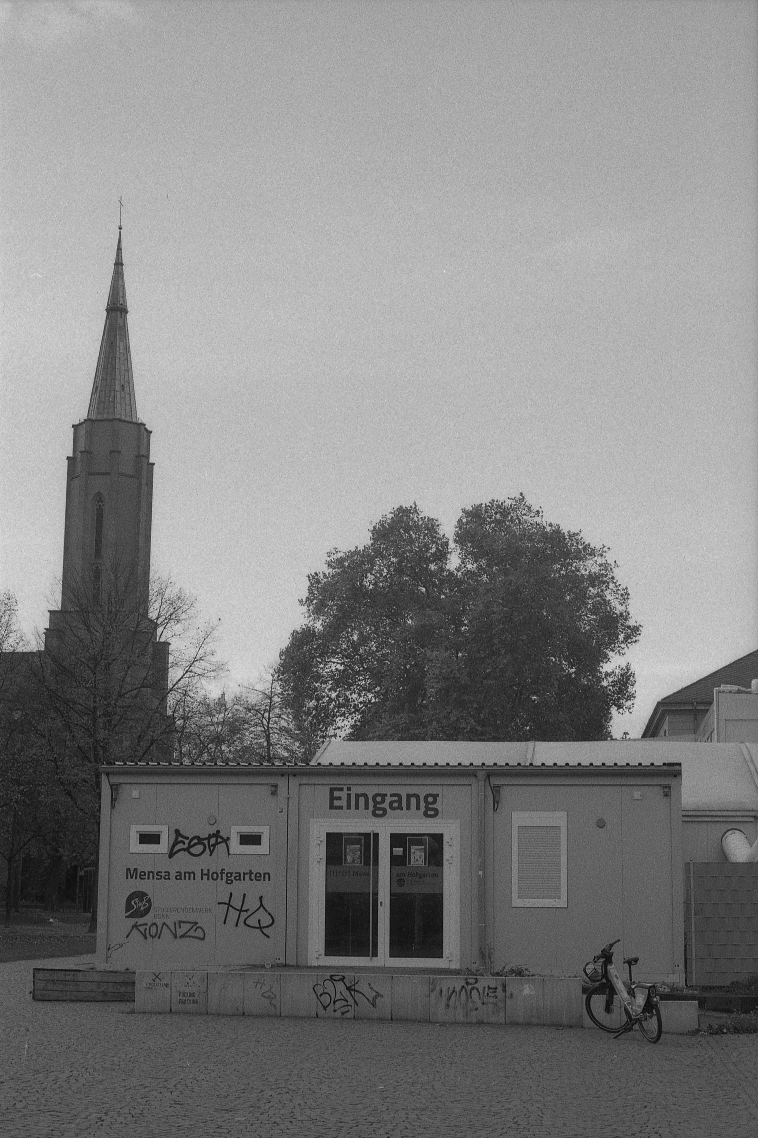 Und dann ist da noch die "Mensa" am Hofgarten. Also, die Container-Sammlung, weil: Deutsches Bildungssystem! (50mm, 1/500s, f/8.) Ist auch nicht besser als der Rest der deutschen Infrastruktur. Wie lang steht dieses Provisorium jetzt schon da rum? Ich weiß nicht, ich glaube, da habe ich noch studiert. Komm, ich fang' gleich wieder an, diese gemeingefährlichen sozialdemokratischen Vorstellungen zu verbreiten!