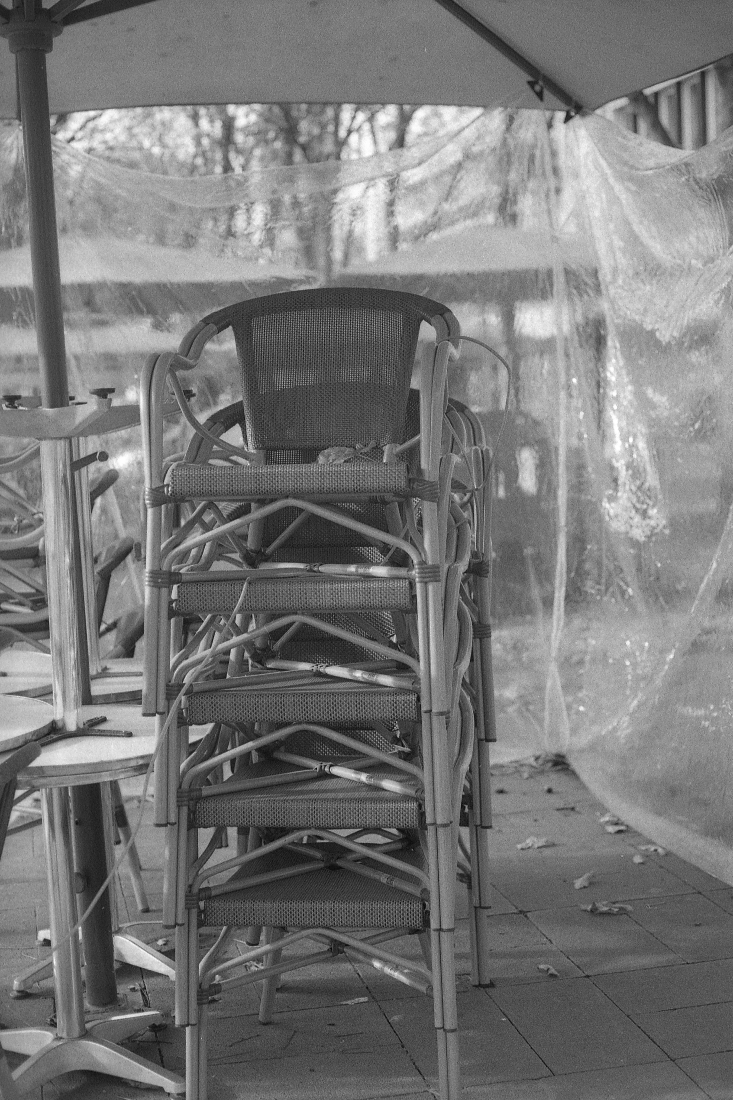 Das Bild mit den Stühlen hat es tatsächlich in meinen diesjährigen Kalender geschafft. (50mm, 1/250s, f/3,5.) Weiß nicht, ist wieder eines dieser Herbstfotos, die mich einfach ansprechen. Die Geschäftigkeit des Sommers ist vorbei, die Bürgersteige werden hochgeklappt, die Rattanstühle gehen zurück in den Keller. Hätten gerne noch ein paar mehr Blätter rum liegen können.