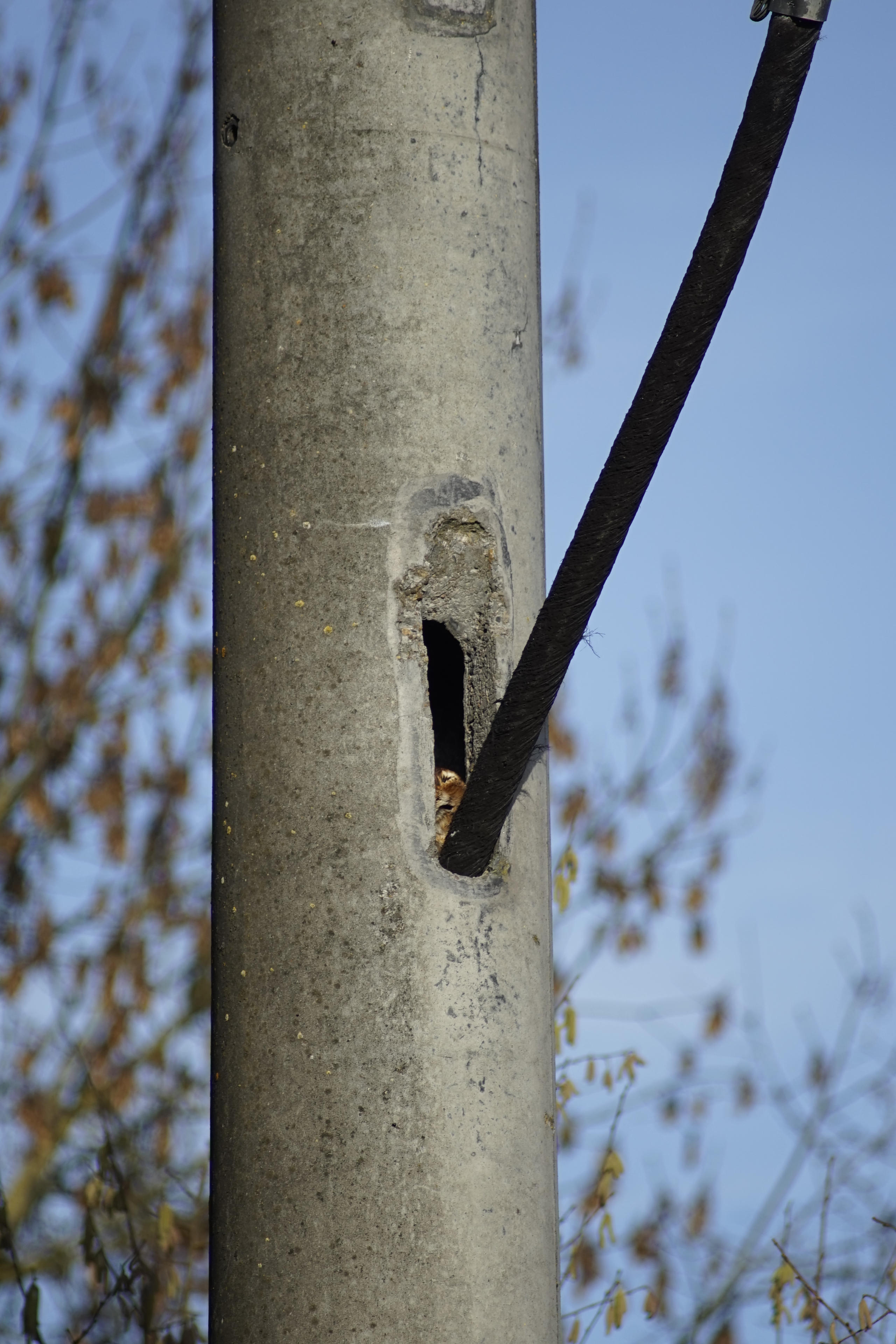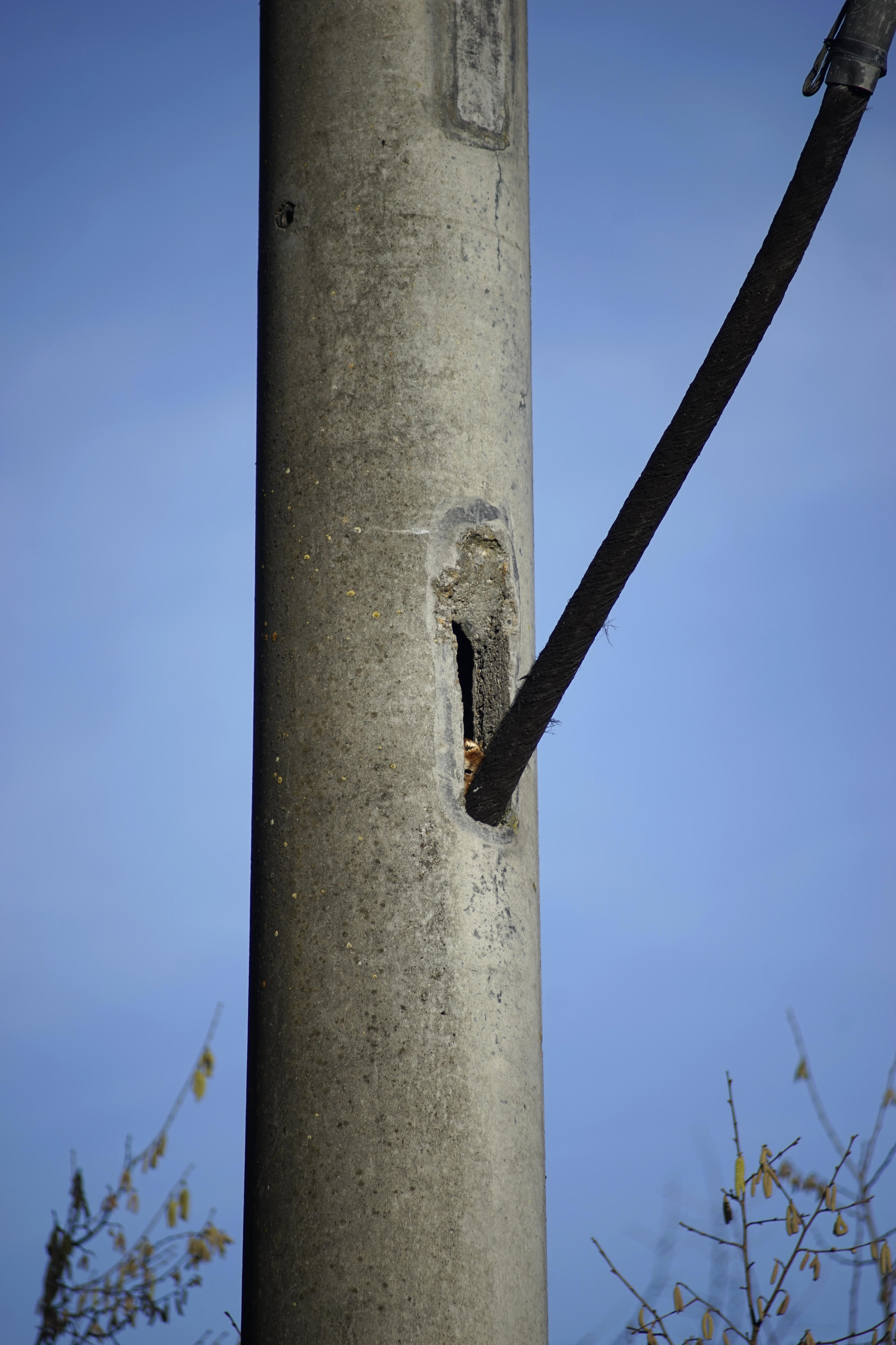Ja, doch, ich erinner mich dunkel, dass ich das auch noch mal benutzen wollte, nachdem ich in letzter Zeit so viel die lange Zoom-Brennweite benutzte hatte. Weil: Das ist ja doch deutlich schärfer und bunter. Das AT-X ist im Vergleich ja doch immer sehr trübe-bräunlich. War natürlich insofern ein Fehler, indem ich am zu Hause des Kauzes vorbei gekommen bin und der da gerade raus gelugt hat. Niedlich! Wenn auch etwas weit entfernt für 200mm. Da hätte ich durchaus das 400er brauchen können.