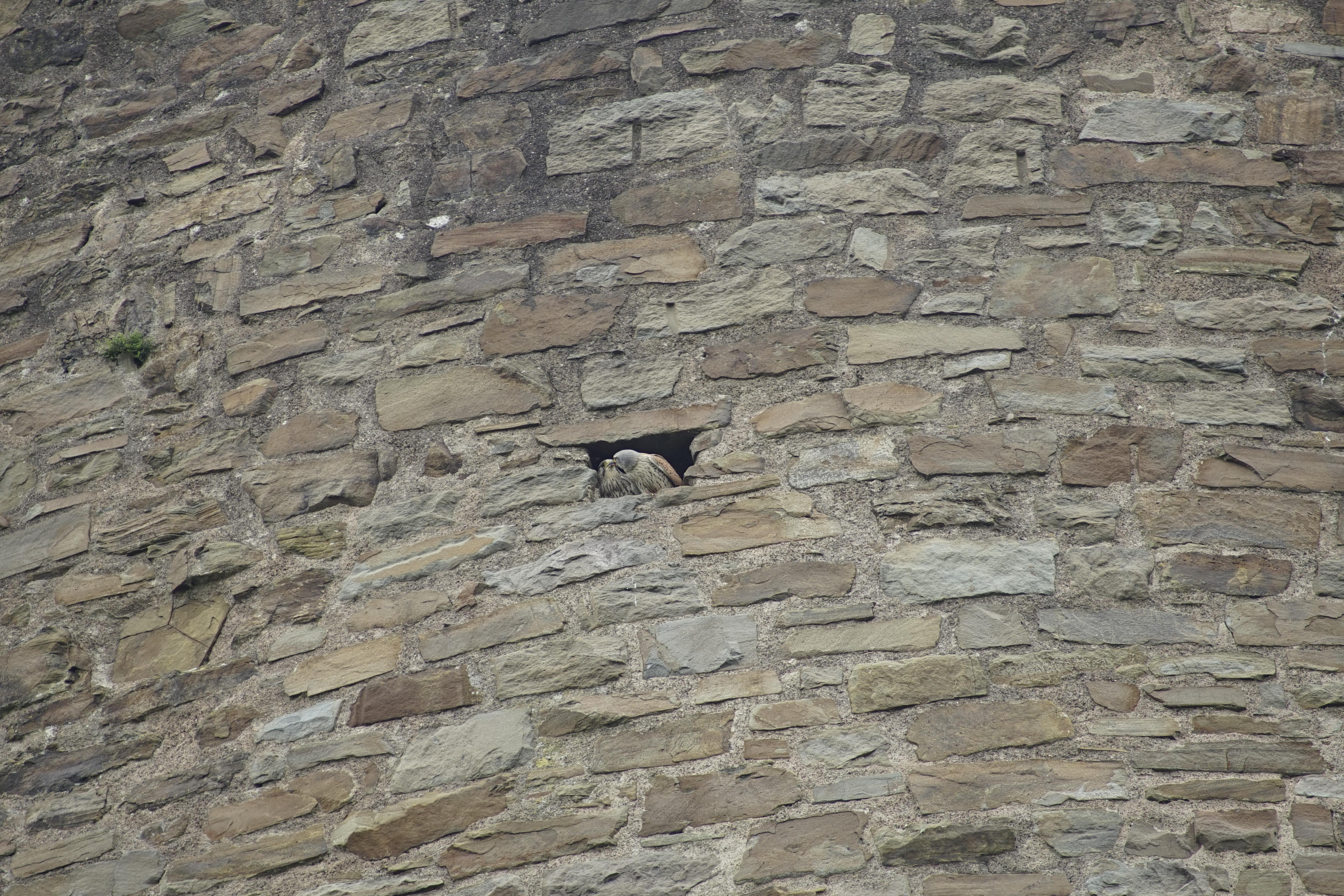Jedenfalls sind wir dann recht zügig wieder von Dannen geschlichen, obwohl uns noch das Pärchen Turmfalken zugeschaut hat. Natürlich hatte ich auch nicht das lange Tele dabei, warum sollte ich auch, kann ja keiner damit rechnen. Deswegen nur die turtelnden Turmfalken bei 200mm und dann gecroppt. Niedlich sind sie trotzdem.