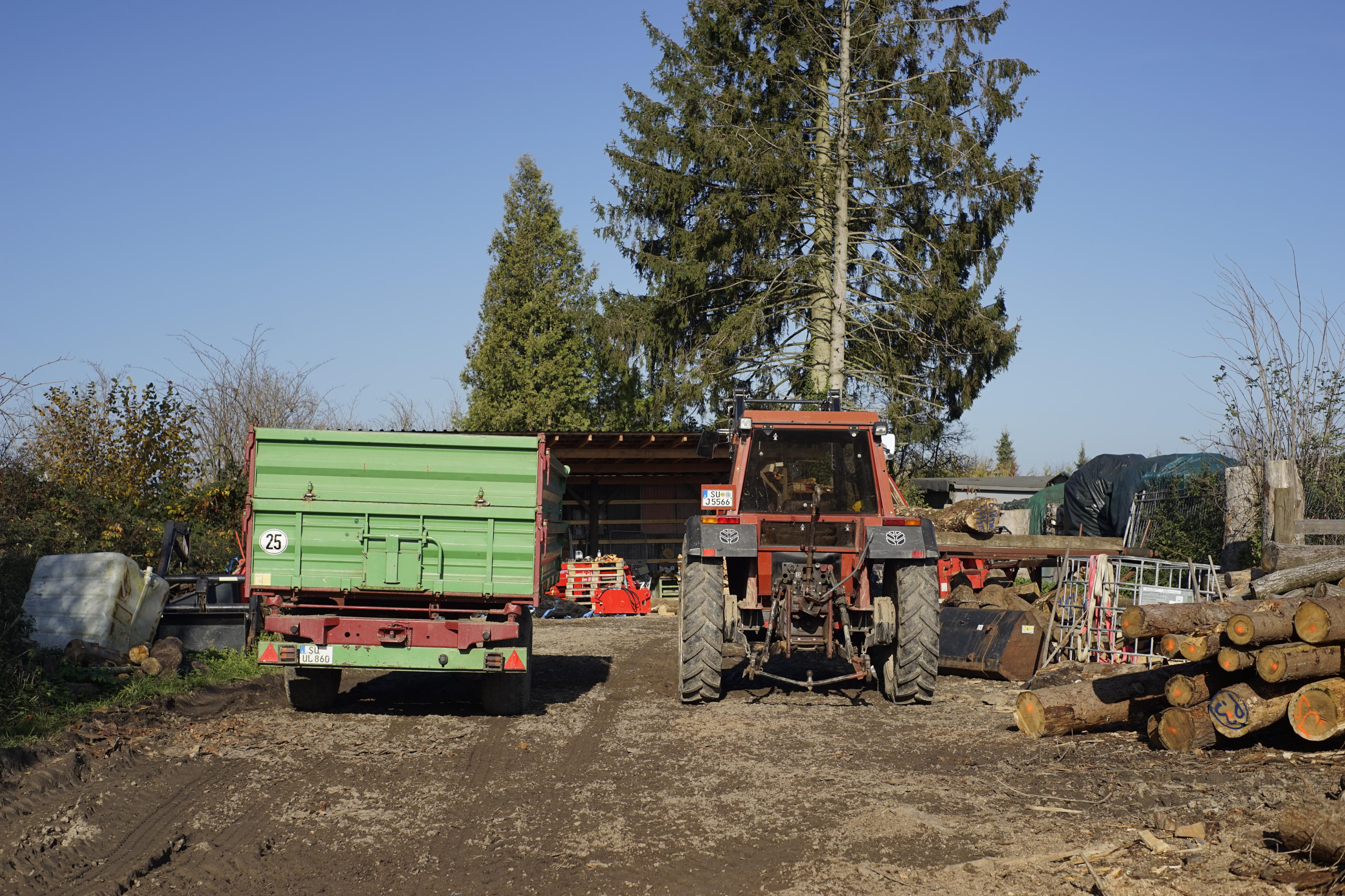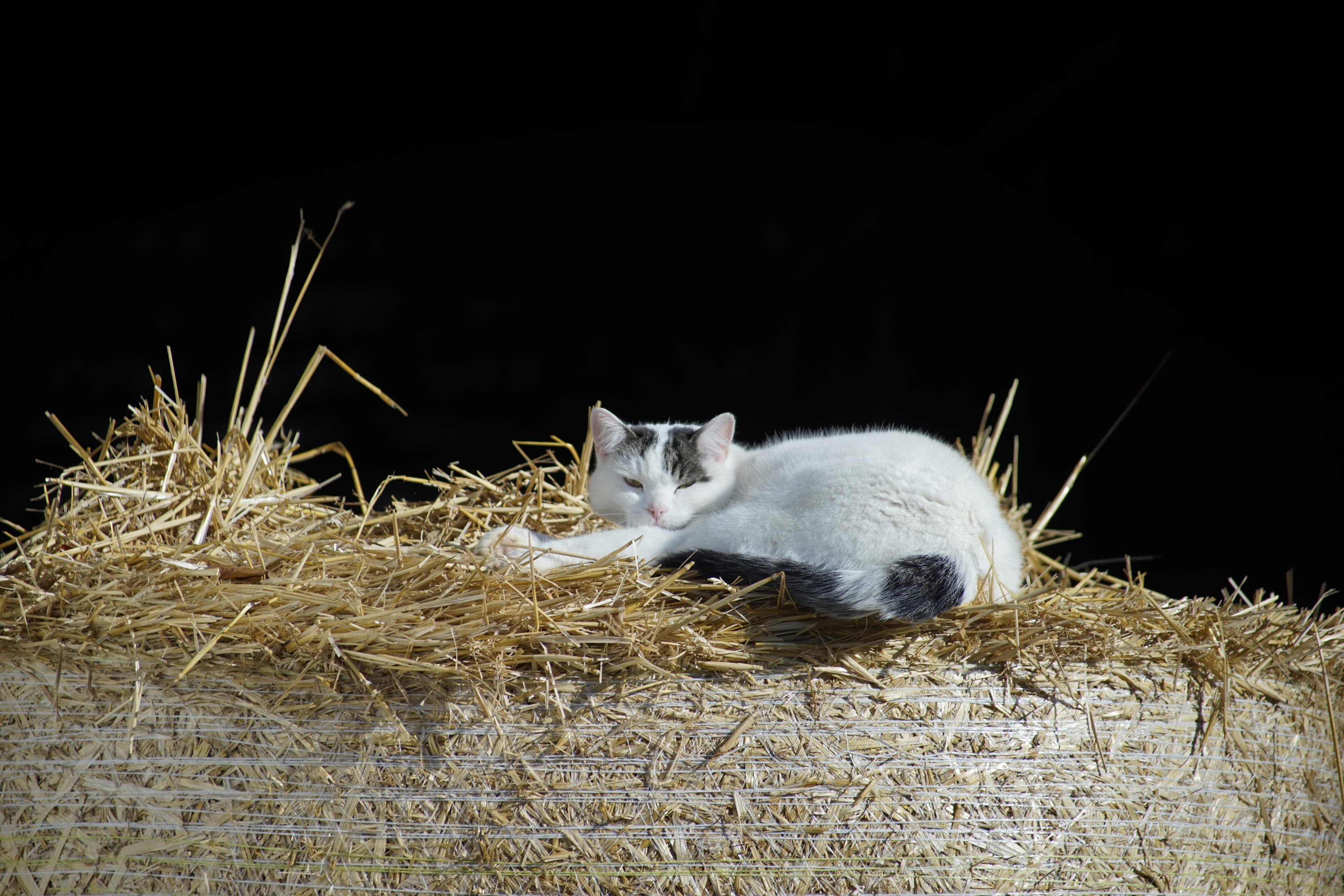 In Hofen selber saß die Mieze im Stroh und in der Sonne und beäugte mich misstrauisch. Das ist da ja die Stallkatze (ich glaube, die Pferdestrieglerin hat mir mal erzählt, dass es eigentlich ein Stallkater ist, aber so genau hält es dann auch wieder nicht), die ich regelmäßig da oben bei den Pferden treffe. Die, also die Pferde, hatten an dem Tag irgendwie keine Böcke, sich richtig in Positur zu werfen, wie sie das sonst machen. Die Hälfte war auch gar nicht zu Hause. Oder vielleicht doch, standen evtl. auch im Stall, da kann man ja vom Weg aus schlecht rein gucken.