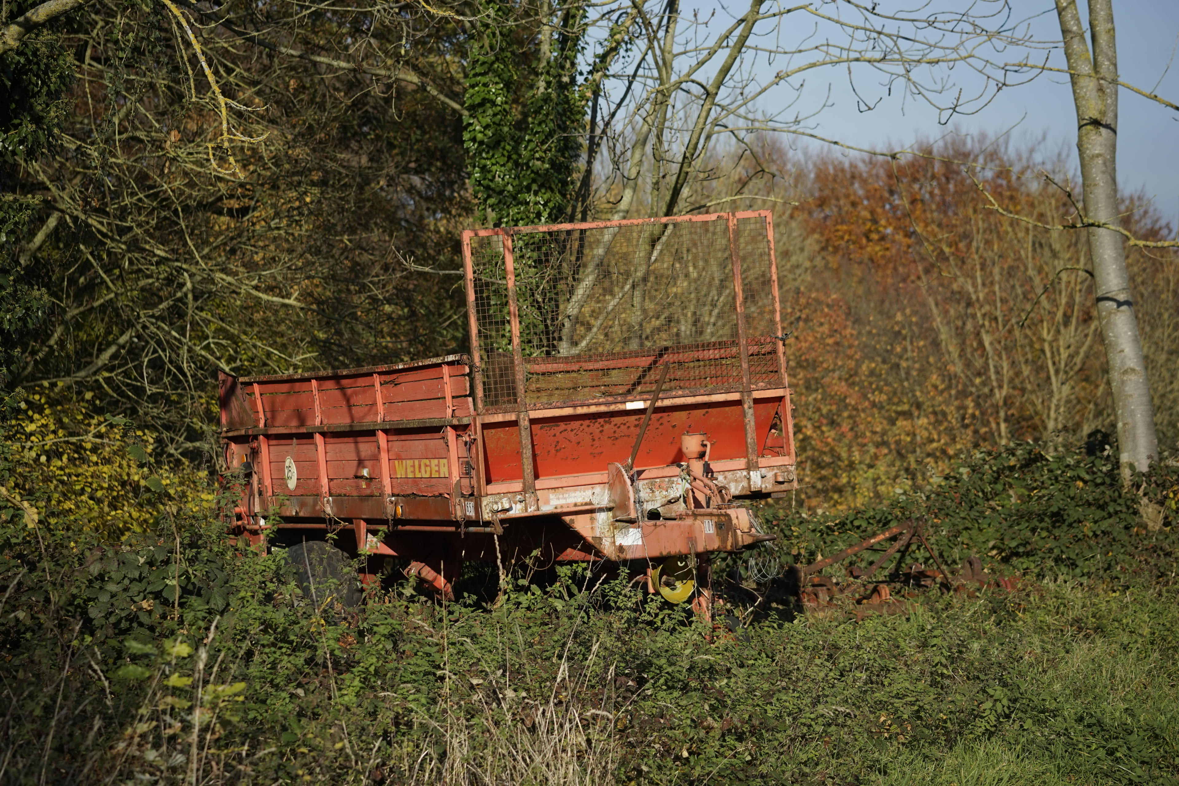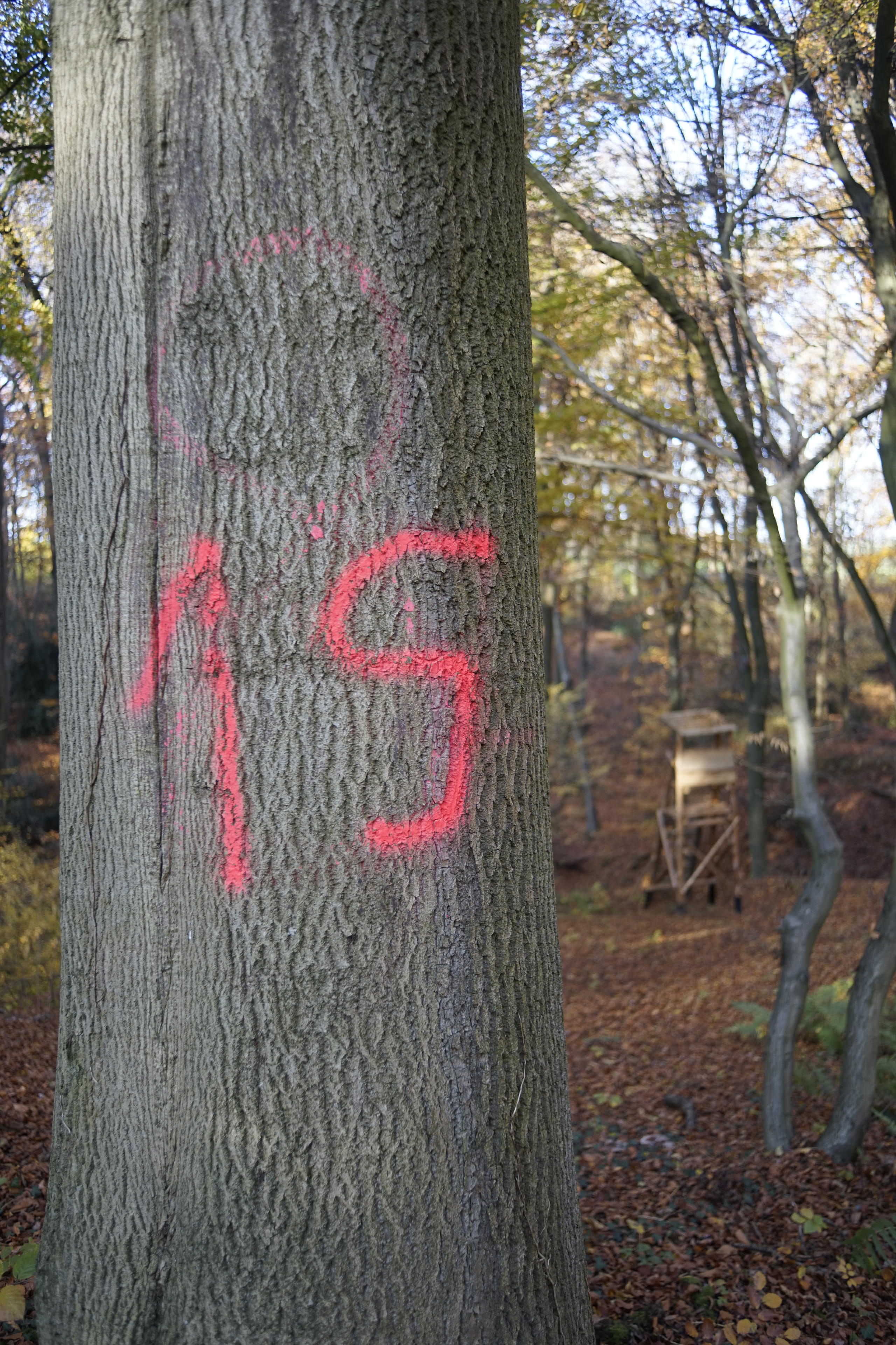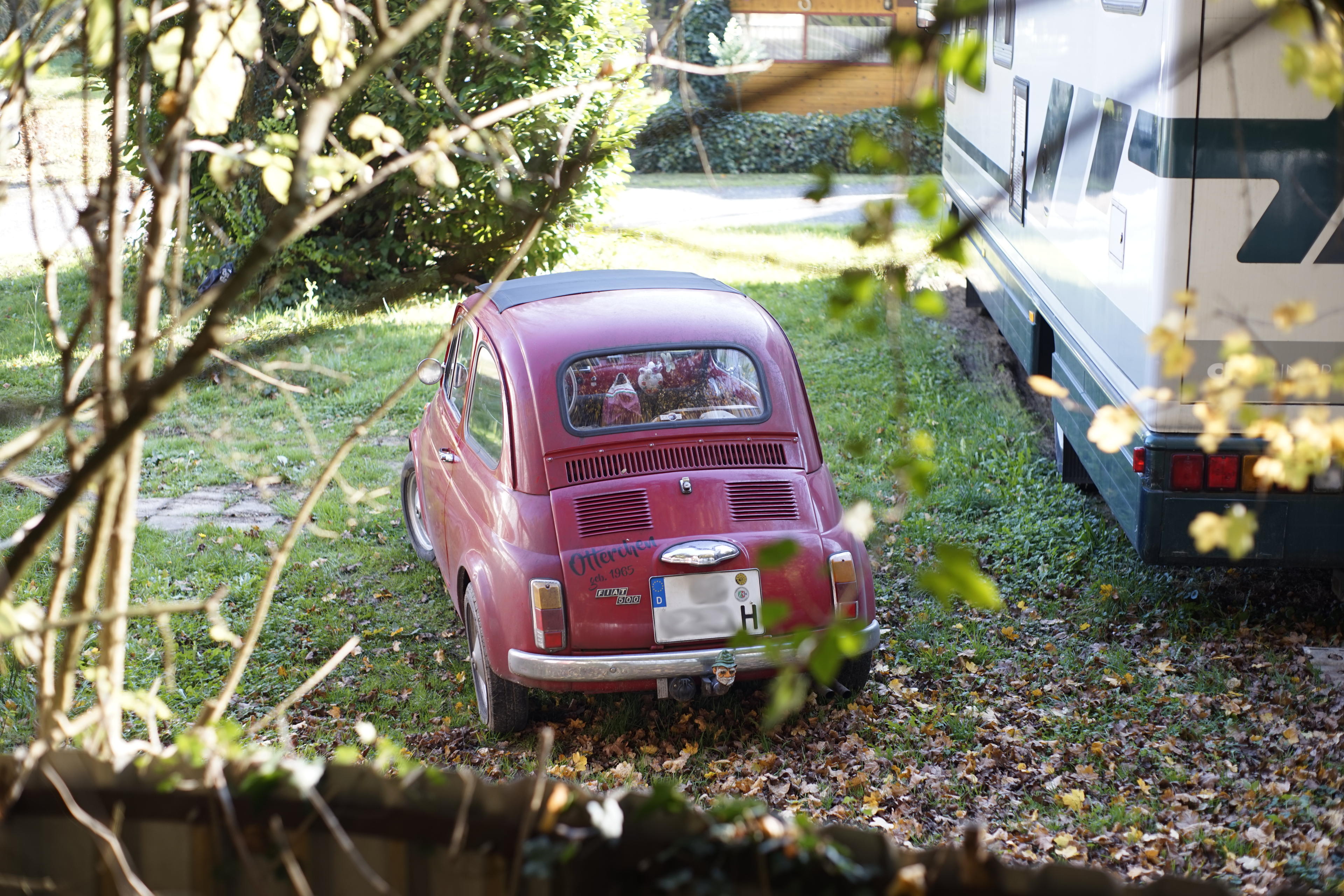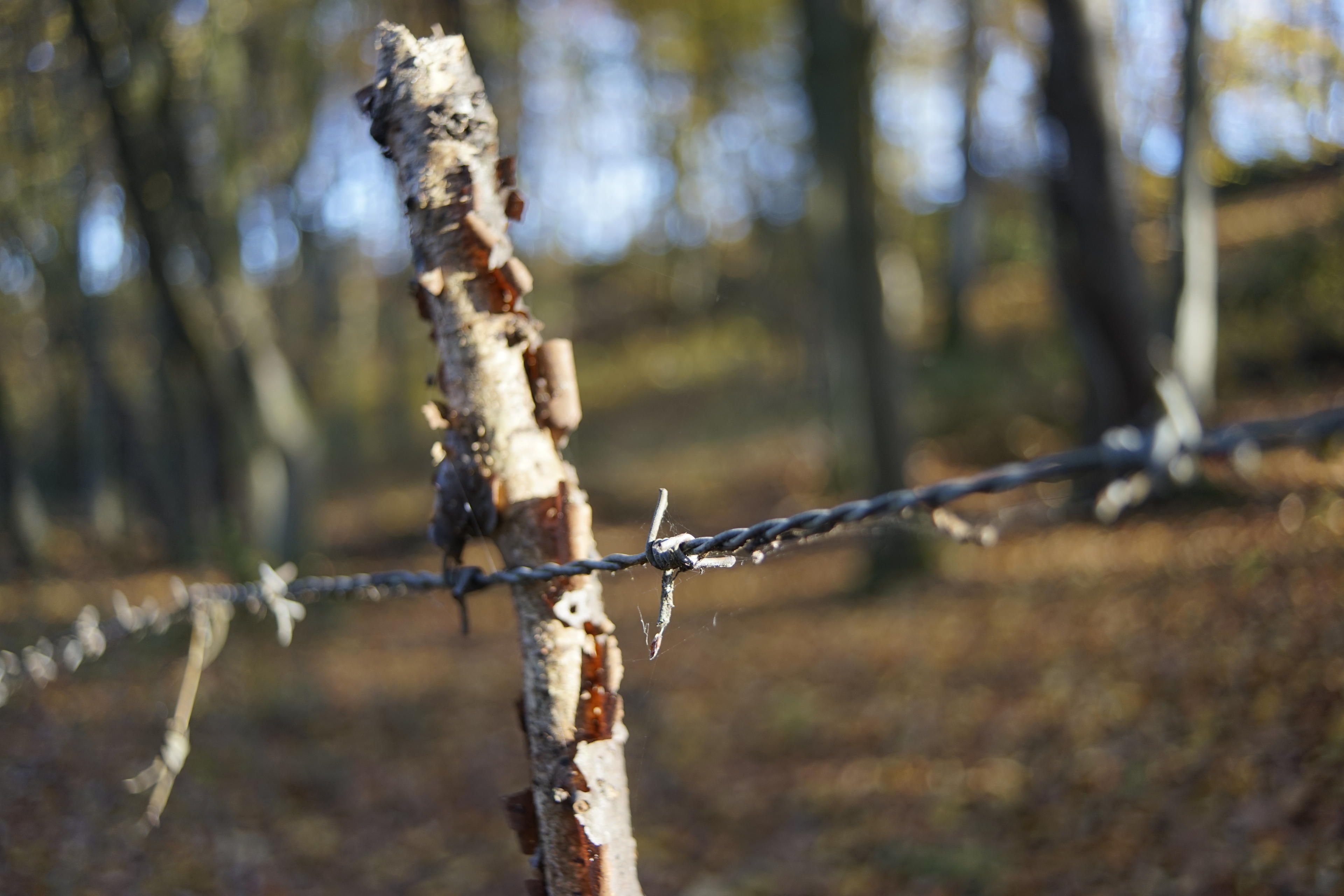 Beim waldigen Abstieg habe ich mich dann erst mal auf die Bank gesetzt, die da ist, denn das Zwielicht der schillernden Herbstfarben genießen hat auch was. Habe die Gelegenheit genutzt, mal die AF-Justage des 50er und des 28er anzupassen. Die stehen jetzt beide auf +15. Ich muss mal eine andere Methode finden, den Adapter fest auf der Kamera zu montieren, statt da diese drei Flecken dickes Tesa-Paketband drauf zu pappen. Eigentlich müssten die auf die Flügelchen des Bajonetts. Aber da hab ich Angst, dass die sich ablösen und irgendwann auf dem Sensor landen.