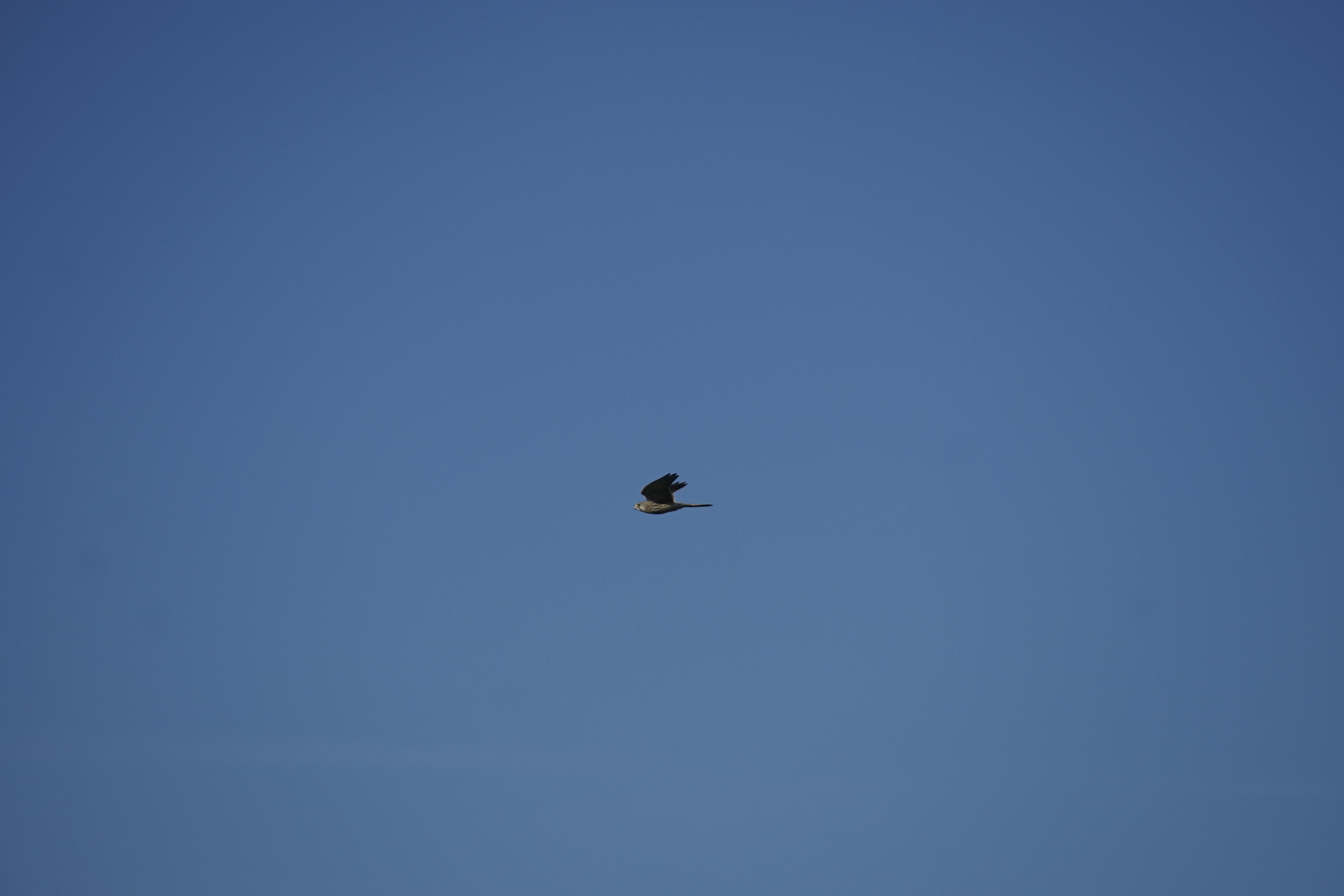 Wie gesagt, statt in Söven den Berg wieder runter zu kraxeln, habe ich mich dazu entschieden, der Straße da oben auf dem Bergrücken zu folgen und dann die nächste Möglichkeit nach Richtung Hofen abzubiegen. Das Wetter war so schön sonnig, blauer Himmel, da waren das willkommene Meter, die ich an der Frischen Luft verbringen konnte. Da oben standen diese sehr stabilen Rindviecher rum. Dachte zuerst, das wären Bullen. Bei genauerer Betrachtung (durch das 100-200mm) konnte ich dann jedoch einen Ansatz von Euter erkennen. Also, jetzt in der Perspektive gerade nicht, aber grundsätzlich, vertraut mir einfach. Muh, jedenfalls. Mit Sendemast in Birk im Hintergrund. Und da ich das Tele gerade auf Maximum aufgedreht hatte, konnte ich auch schnell noch diesen Falken mitnehmen. Allerdings ist der selbst gecroppt noch etwas weit weg. Wie gesagt, ich müsste mal Js Tamron mit ins Feld nehmen, nachdem das Sigma vom F ja noch immer ein bisschen justiert werden muss. Wie war das mit "man kommt ja zu nichts?"