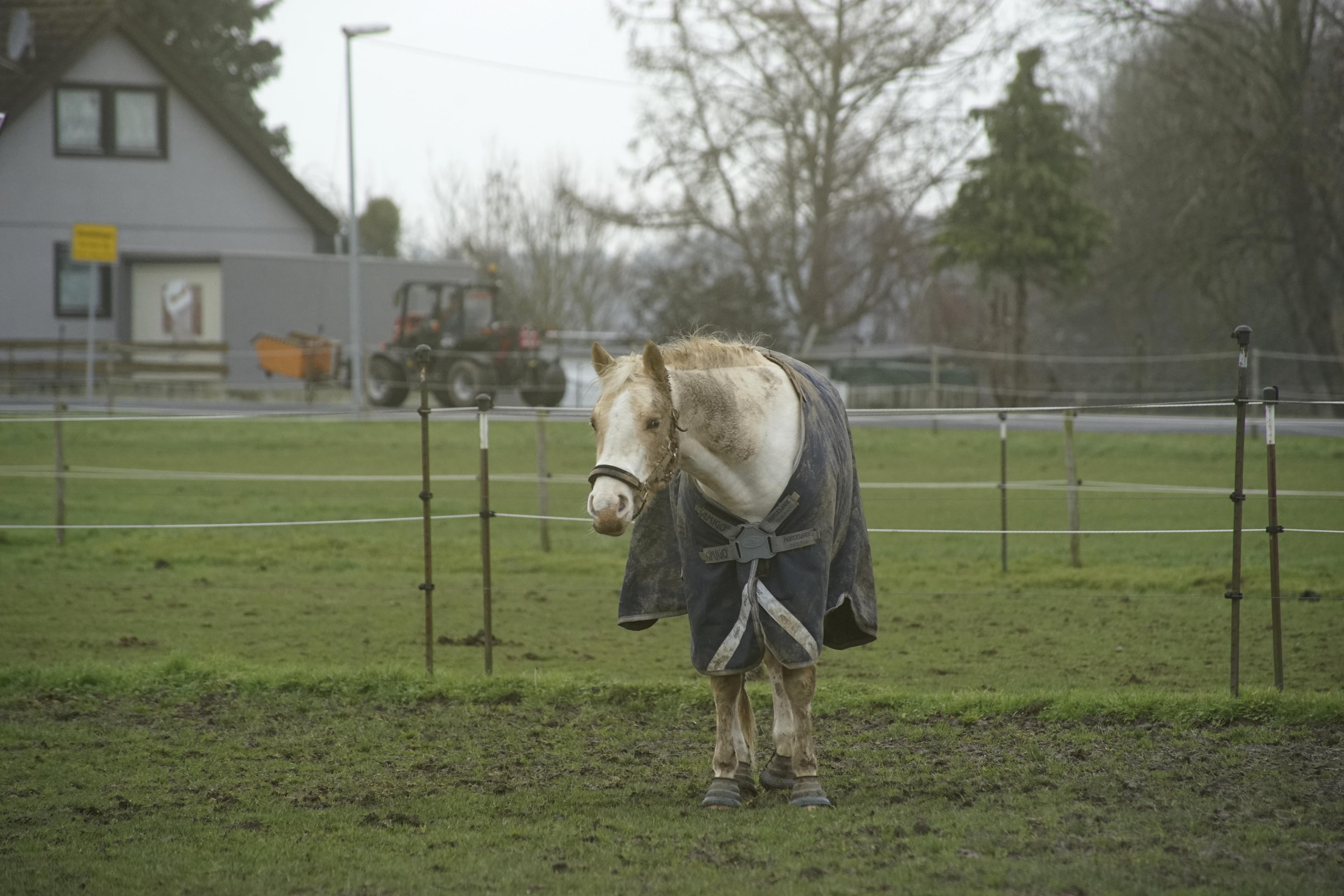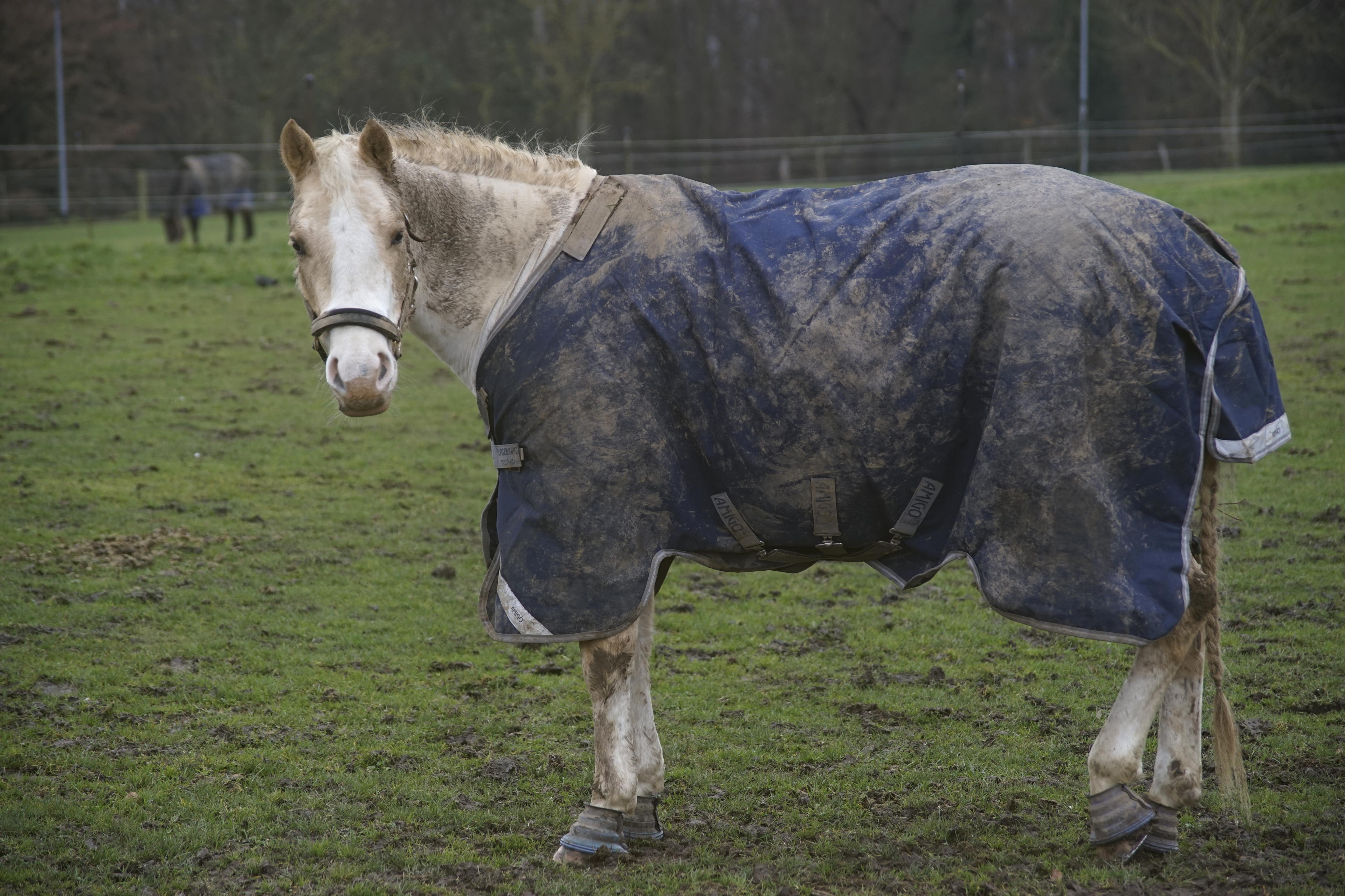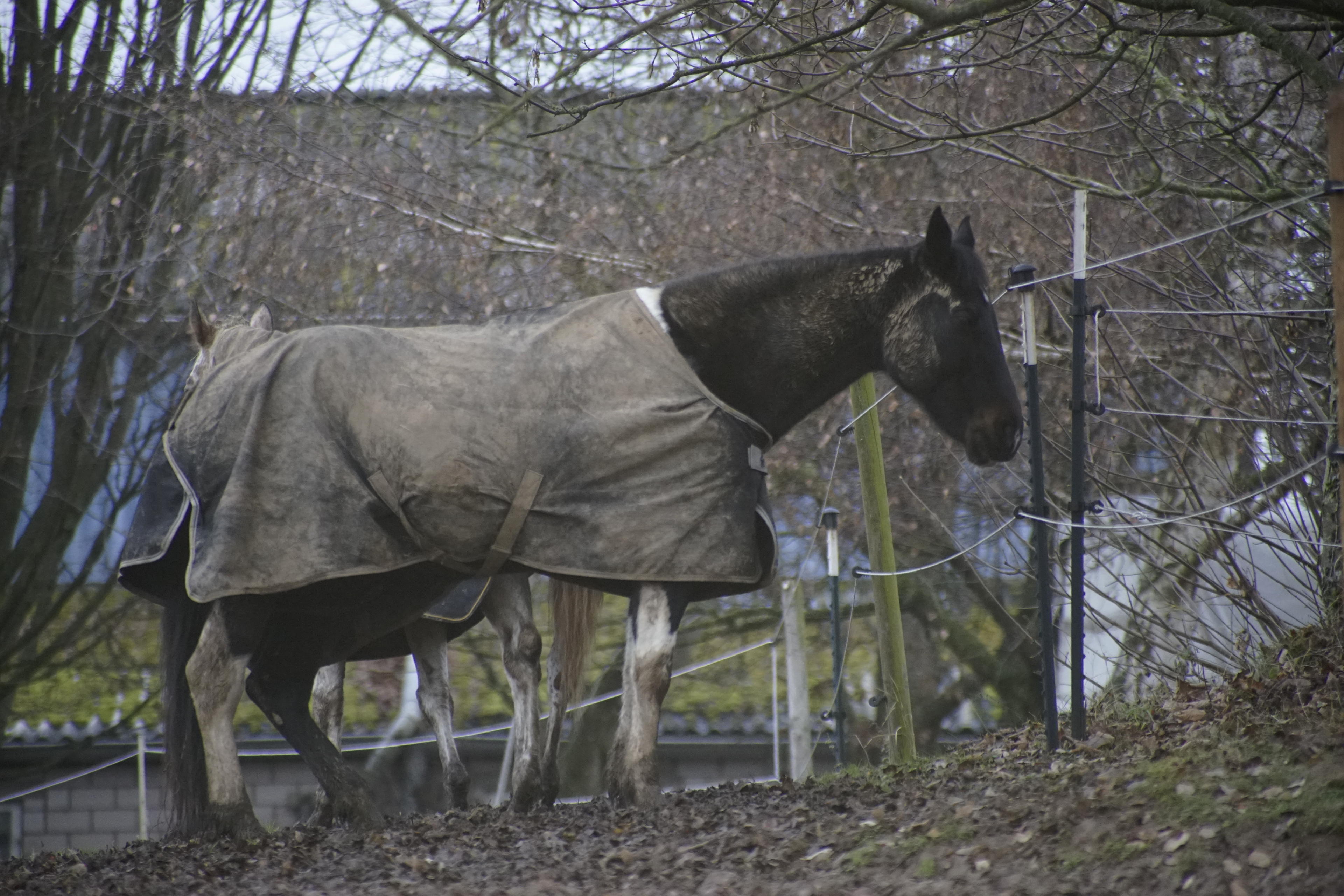 Dann steht man aber endlich zwischen all den Pferden, die hier oben zu dem Reiterhof gehören. Wie man sieht, war es eher nass-matschig die letzten Tage und das haben die Damen und Herren auch direkt mal ausgenutzt, um sich im Schlamm zu wälzen. Da hilft auch kein Jäckchen, die sind einfach schmuddelig! Gut, so eine schöne dicke Schlammschicht hält warm und zugleich die Viecher fern. Wobei, jetzt im Winter sind ja eher weniger Bremsen, Fliegen und sonstige Beißinsekten unterwegs.