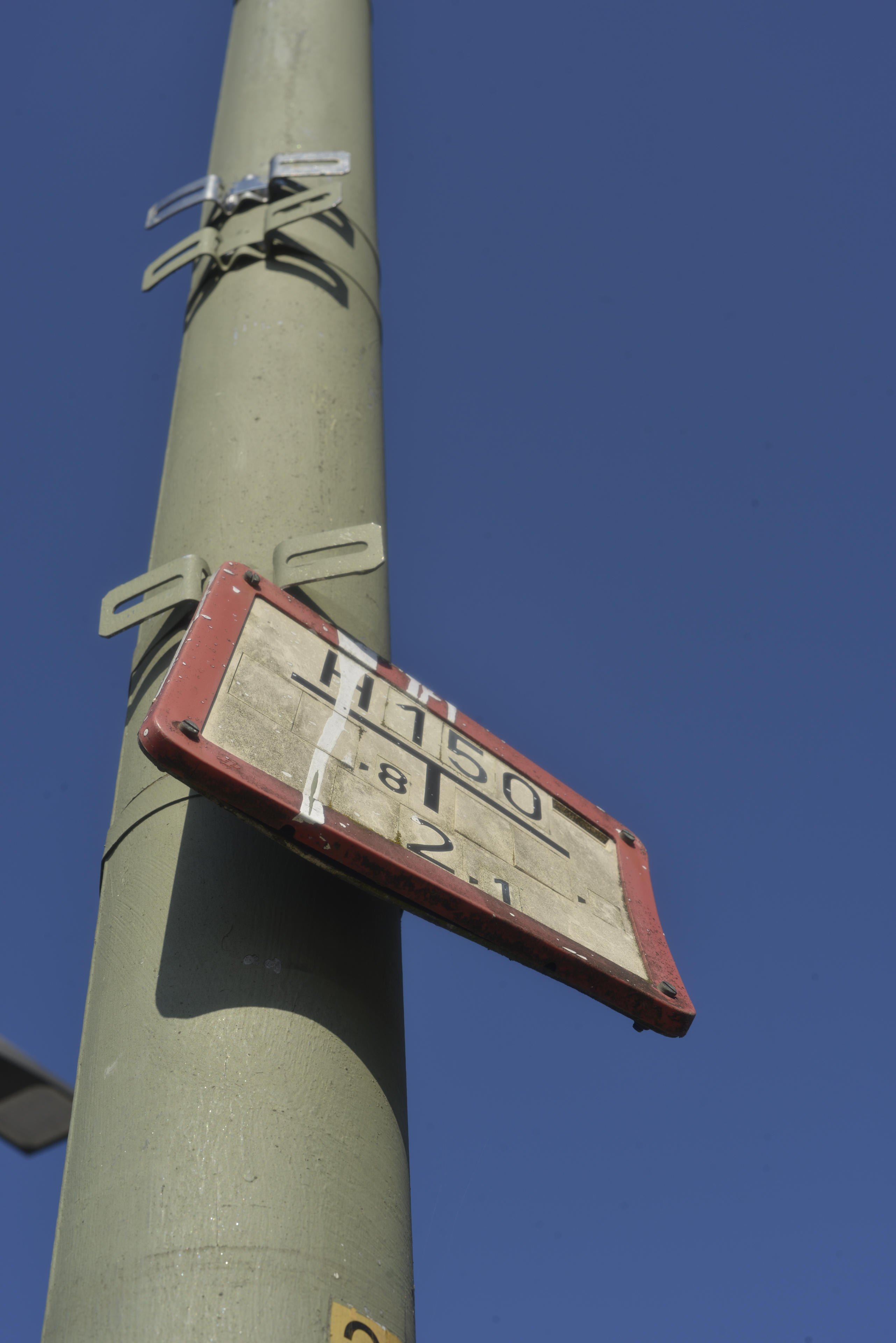 Ich habe echt erstaunlich viele Bilder geschossen, die ich sonst nie gemacht hätte. Da ist der Vorteil von neuem Glas (oder auch hin und wieder mal einer neuen Kamera): Man sieht alt bekannte Stellen in ganz neuem Licht. Und wenn dieses Licht, wie an jenem Tag, auch noch so strahlend hell ist, dass bei f/2 Schluss ist, dann ist das halt so! Umgekehrt hat es den Vorteil, dass man die Blende auch schön weit schließen kann, ohne direkt am anderen Ende der Machbarkeitsskala anzukommen: Selbst f/8 oder f/11 ist hier mit Geschwindigkeiten weit oberhalb der Verwacklungsgrenze möglich gewesen. Das rot umrandete Abwasserrohrschild hat zum Beispiel f/11 und das ist schon erstaunlich, wie knackig das dadurch geworden ist! Das sind ja Blenden, die ich im Allgemeinen vermeide, aber manchmal, da muss es einfach sein. (Außerdem kann ich so hin und wieder überprüfen, wie schmutzig der Sensor ist. (Geht. Ja, da sind Pollen, die mal weg geplasen werden müssten, aber im Allgemeinen hatte ich schon Schlimmeres auf dem CCD kleben!)