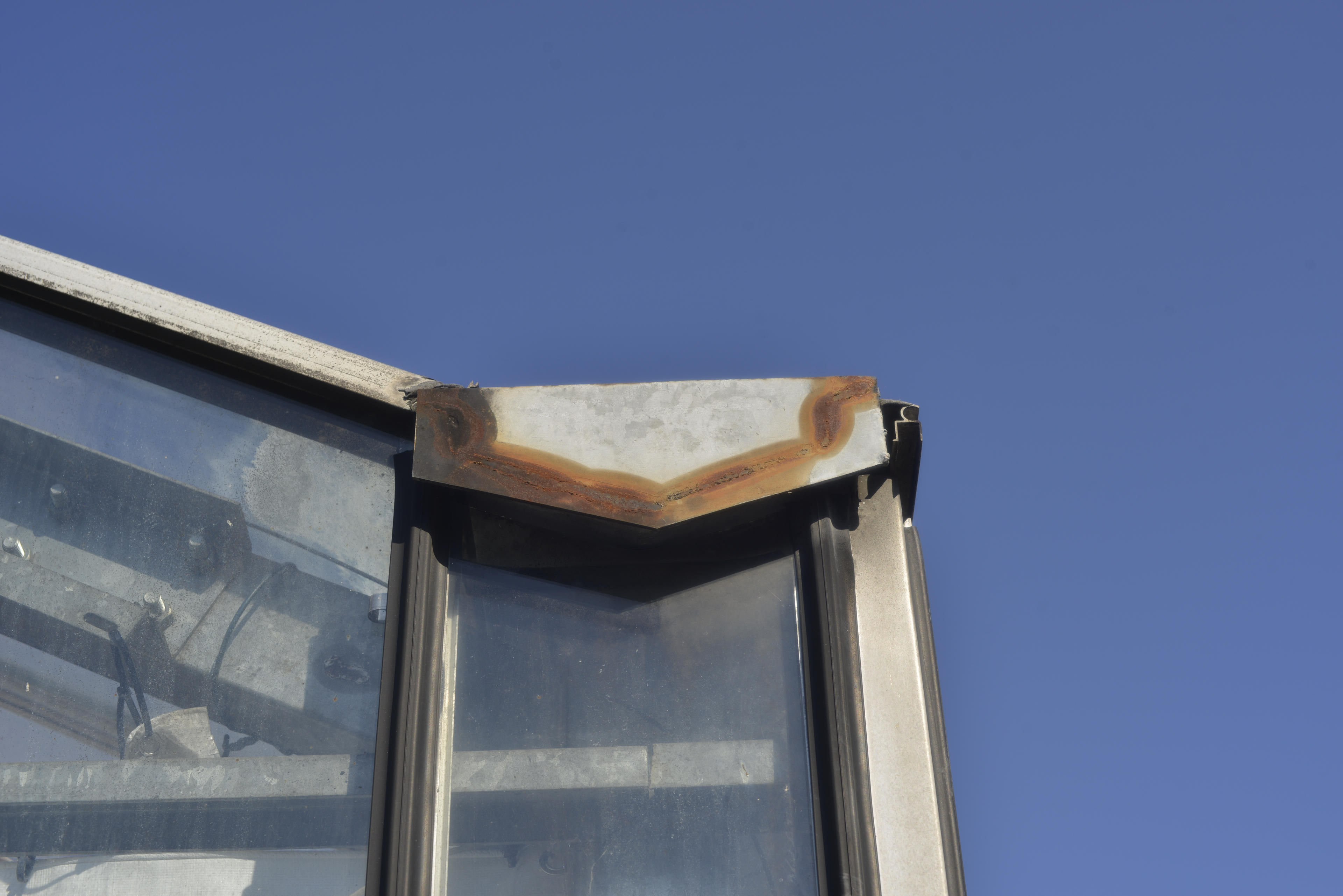 Nach der Bohrung dann wieder zurück, sodass ich das Dorf auch noch aus der anderen Richtung ablichten konnte. Habe mich aber zurück gehalten und erst an der Baustelle an der Kreuzung noch mal zum Auslöser gegriffen. Dieses Mal nicht den Kran mit genommen, sondern die Baustellenlampen. Dann rechts rum auf die Höh' abgebogen und am ehemaligen Blumenladen das leer stehende Gewächshaus unter die Lupe genommen. Schade eigentlich, dass es den Laden nicht mehr gibt. Die hatten immer hübsches Gemüse. Ich weiß gar nicht, warum die dicht gemacht haben, ob die Frau Jagla in Pension gegangen ist oder ob da was Schlimmeres passiert ist. Jupp, eine kurze Google-Suche: Die ist wohl schon vor vier Jahren verstorben. Mist. Nicht mitgekriegt.
