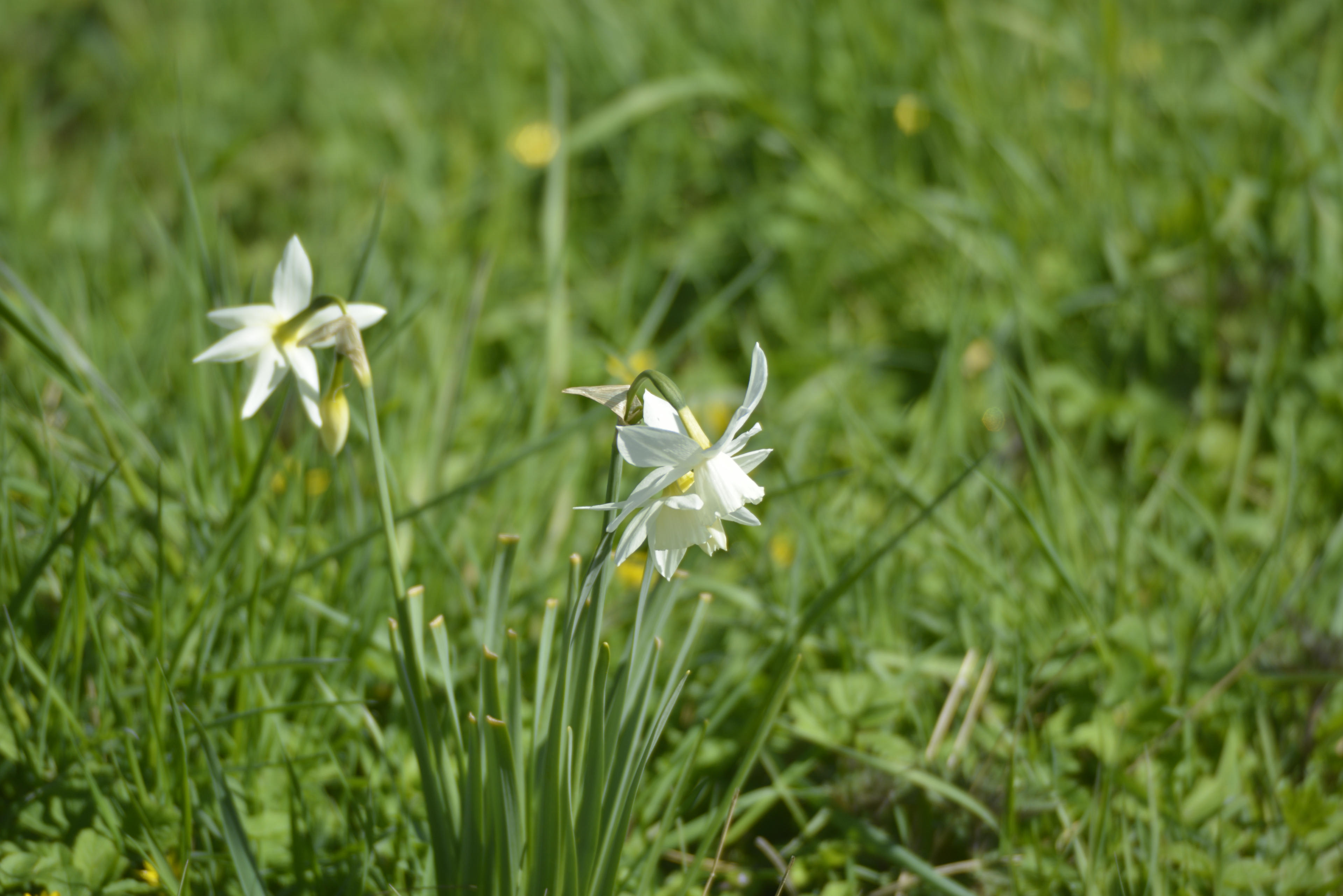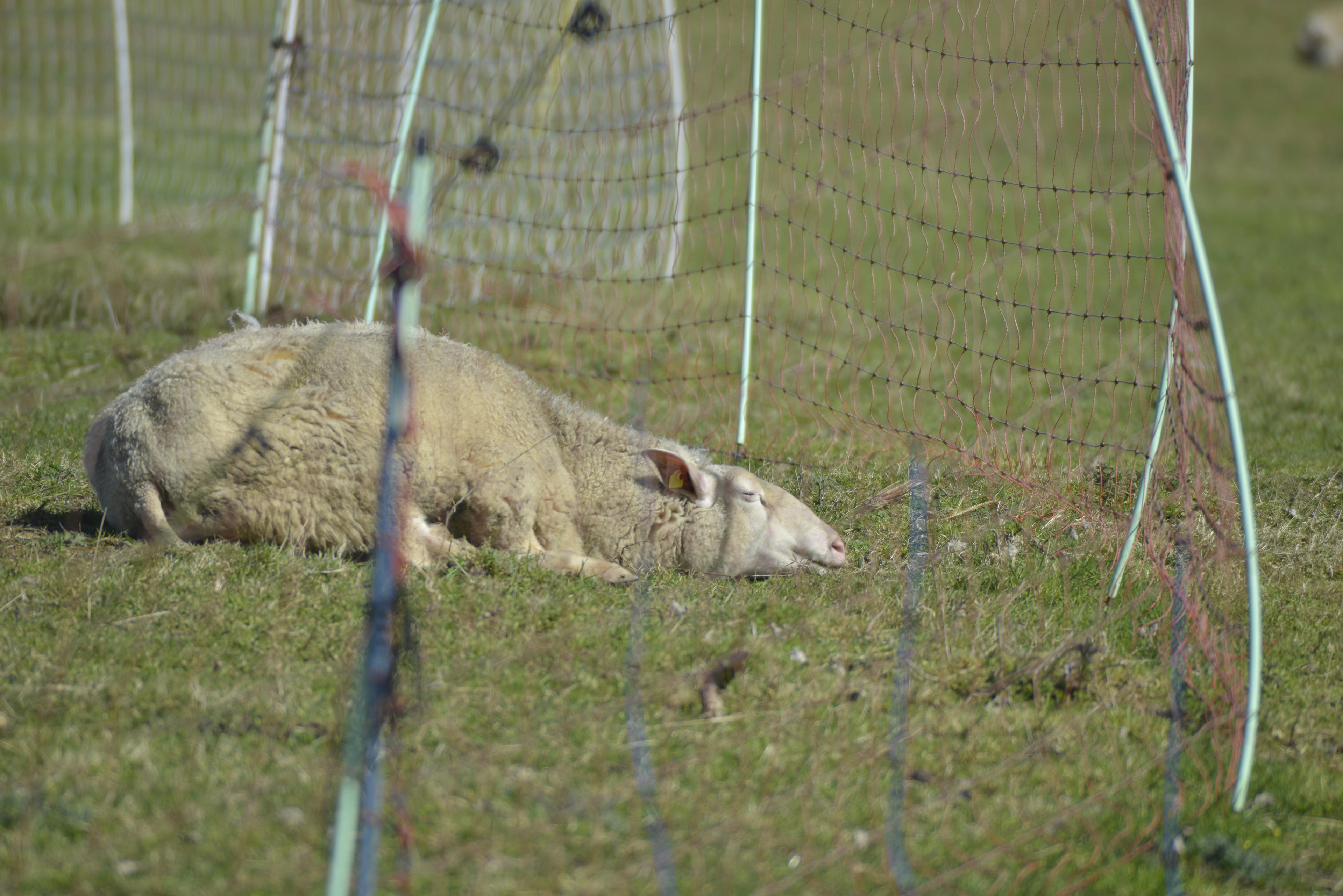 Dann lieber Fotos von weißen Narzissen. Die kann man mit nach Hause nehmen, ohne in Konflikt mit den weltlichen und göttlichen Gesetzten zu geraten. Hübsche Blümchen. Warte ich ja jedes Jahr drauf, dass die blühgen, und dann ist es immer so schnell wieder vorbei. (Wie die Magnolien, die schon an den Bäumen welken, siehe unten.) Dann lieber noch ein paar Schafe. Dieses hier schläft so ein bisschen wie eine Wurst.
