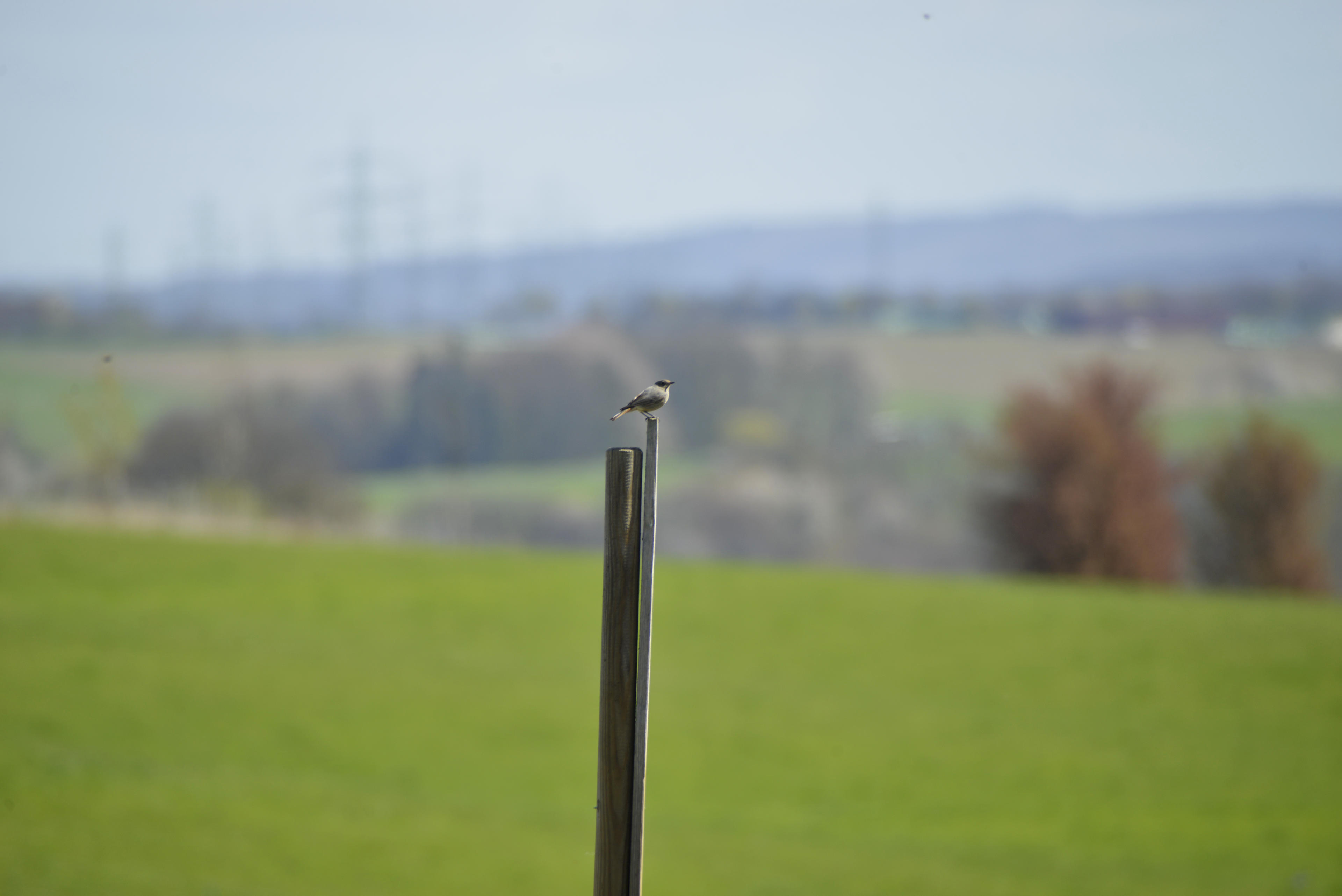 Ein paar Meter weiter saß dann ein Rotschwänzchen auf einem der Pfähle und beobachtete ganz genau, was unter ihm abging. Immer wieder zwischendurch sprang es da runter und pickte was aus dem Gras auf. Und dann wieder rauf auf den Pinn. Hat es bestimmt so drei bis fünf mal gemacht. Niedlich! (Jaja! Ich weiß! Sehr männlich! Scheiß auf die Männlichkeit, wenn die von mir verlangt, dass ich mir keine Vögel angucken darf! Mann ey!
