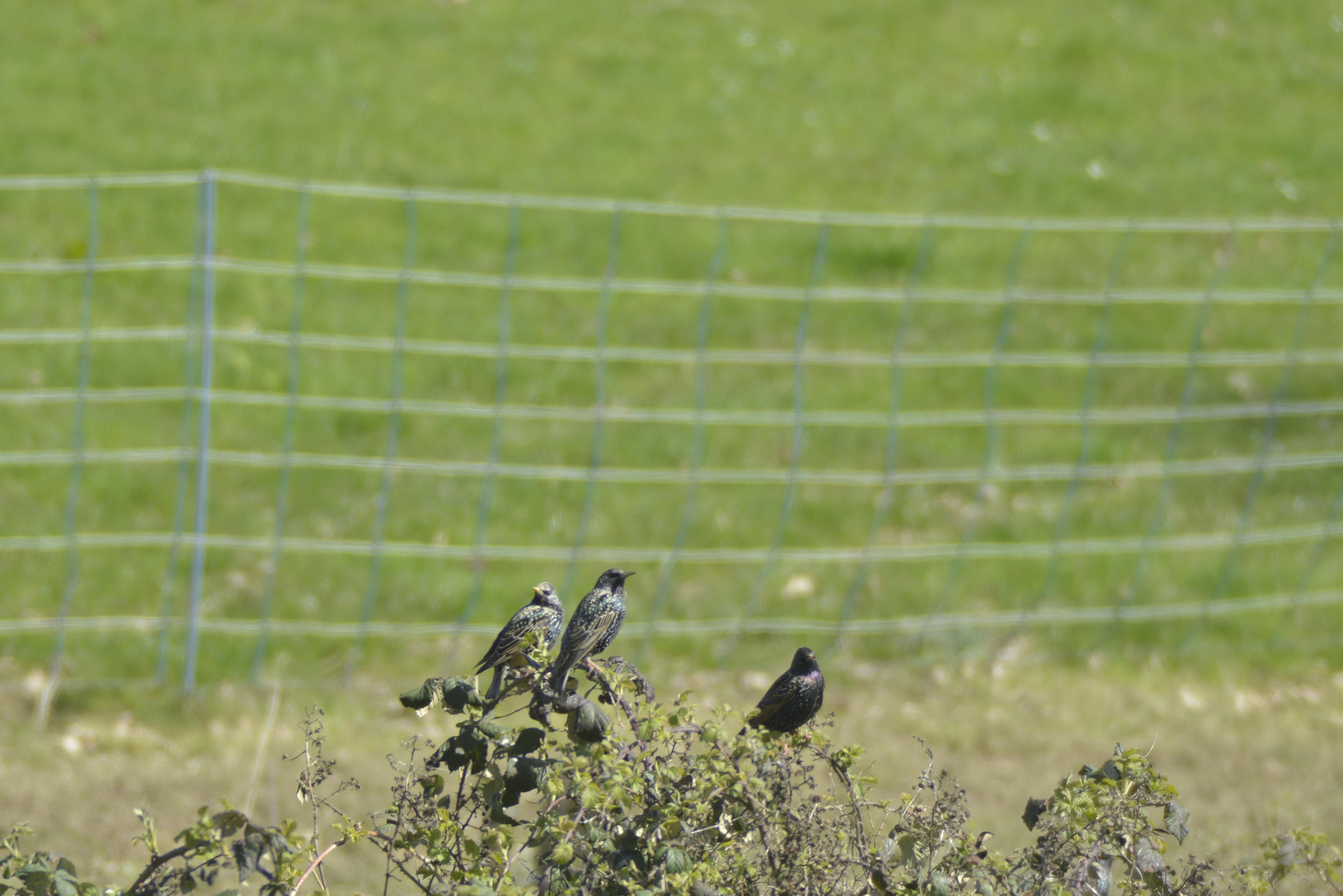 Nebenan saßen dann noch ein paar Stare in den Brombeeren. Die sitzten da häufiger. Auch wenn gar keine Brombeeren da sind, so wie jetzt. Keine Ahnung, wo nisten Stare? Eigentlich doch in (Baum-)Höhlen, oder habe ich da was falsch in Erinnerung? So viel zu der Theorie. Ja, keine Ahnung, was die da treiben, vielleicht suchen die noch die restlichen Beeren vom letzten Jahr ab, die sind jetzt so richtig vergoren und alkoholisch oder wie oder was, aber ich weiß es nicht. Stare finden viele Leute ja auch nicht so spannend, dem Bauern fressen sie ja angeblich ganze Felder leer. Aber ich mag auch Stare. Die schillern so hübsch.
