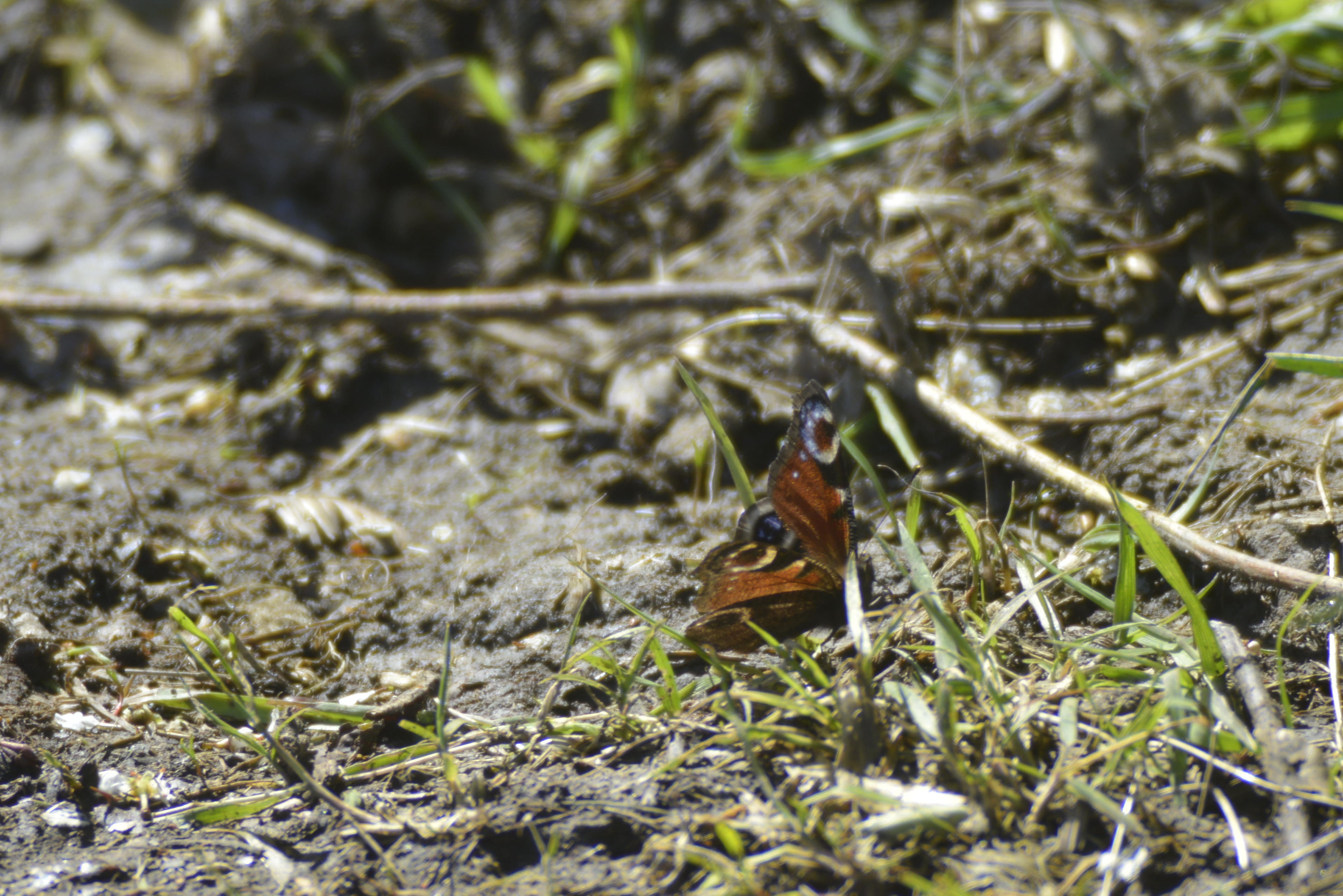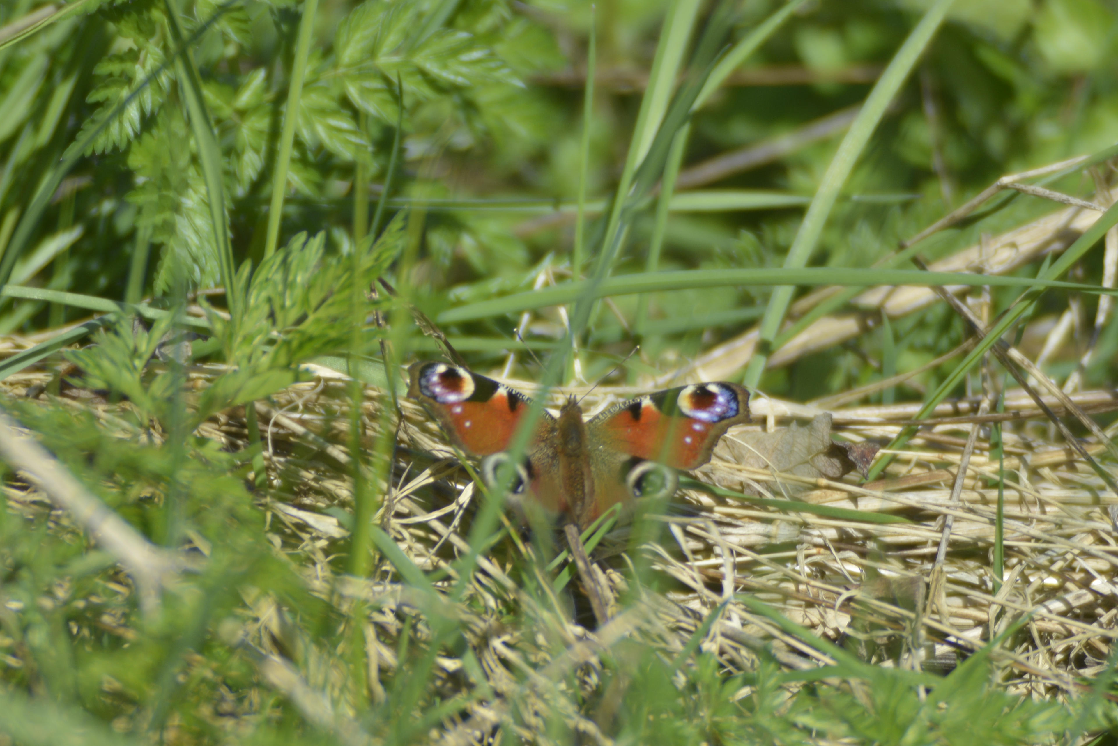 Nebenan saß ein Pfauenauge im Gras und das war nicht einfach zu fotografieren. Die Minimaldistanz bei dem Objektiv ist 4 Meter. Macht Sinn, ich glaube, noch näher und die Schärfeebene wird so dünn, dass man nichts mehr erkennen kann. Aber irgendwie habe ich es trotzdem hin bekommen. Auch bei Schmetterlingen bin ich ja immer ganz hin und weg. Kaum zu glauben, dass so filigrane Lebewesen existieren. Und dann auch noch fliegen können.