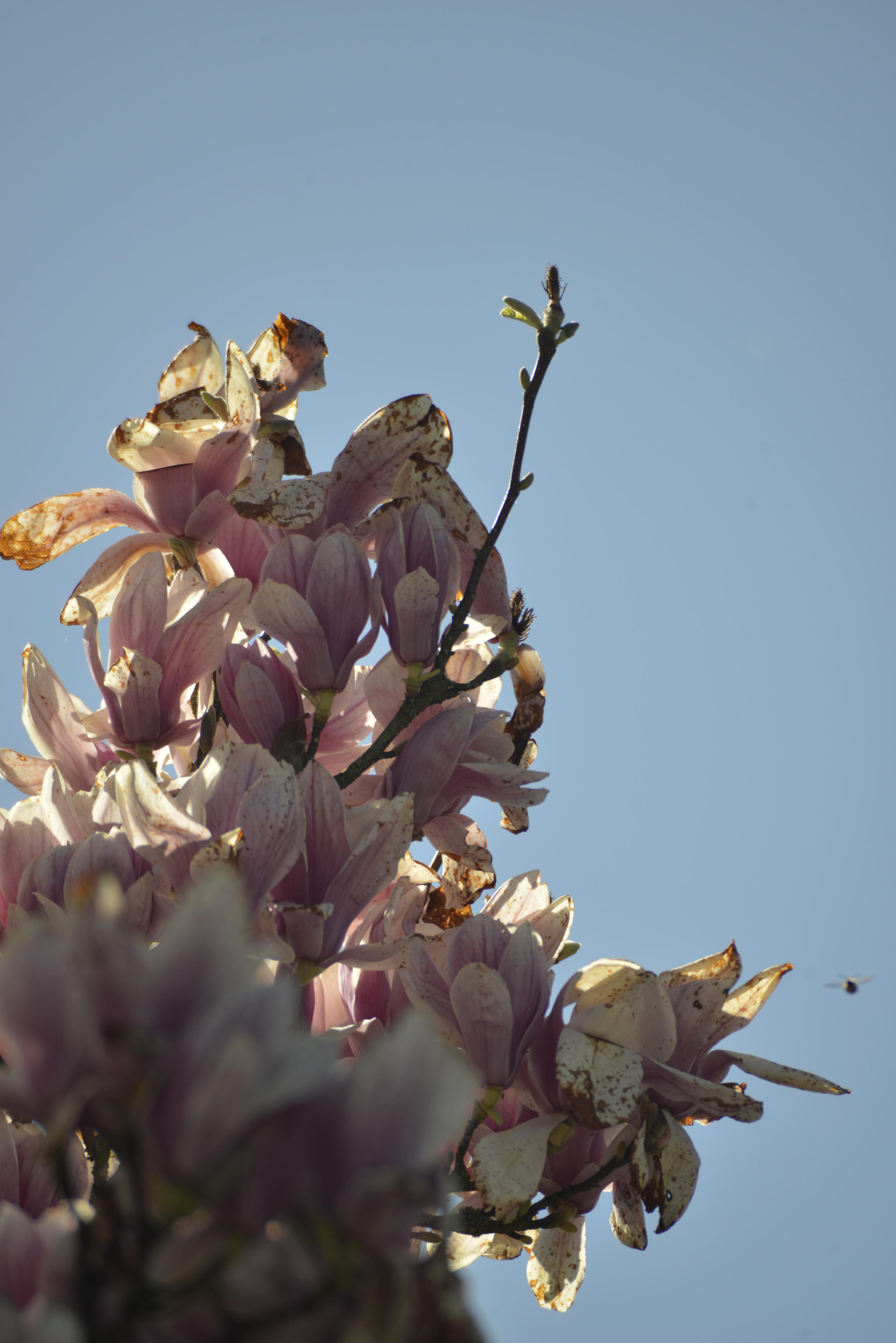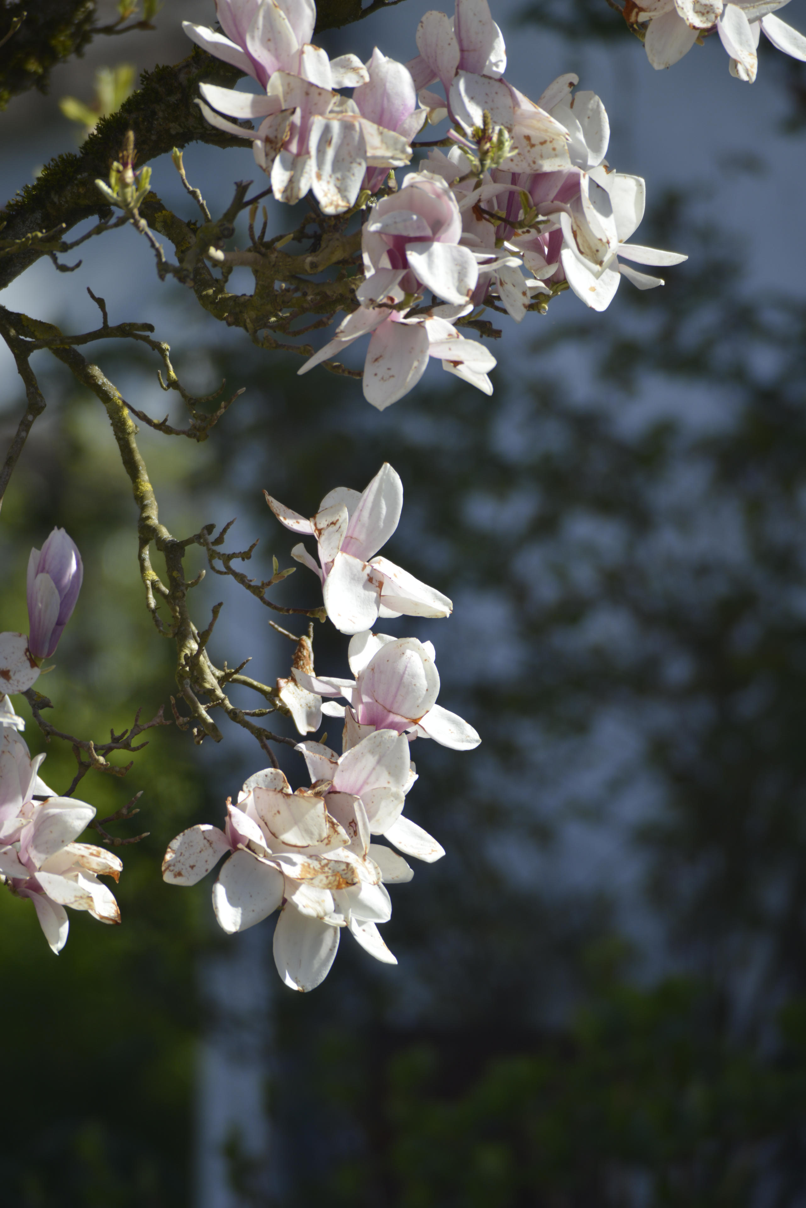 Statt dann aber durchs ganze Dorf zurück zu schlappen, sind wir den Berg wieder hoch und oben über die Höhenstraße zurück. Dadurch kamen wir noch mal an Narzissen (oder Osterglocken) (gibt es auch Westerglocken?) vorbei. Und an den oben schon erwähnten Rest-Magnolien. Die sehen zum Teil schon sehr mitgenommen aus, was aber auch an den Nachtfrösten der letzten tage liegen könnte. War schon sehr kühl. Und morgens immer Reif und Eis auf der Scheibe.