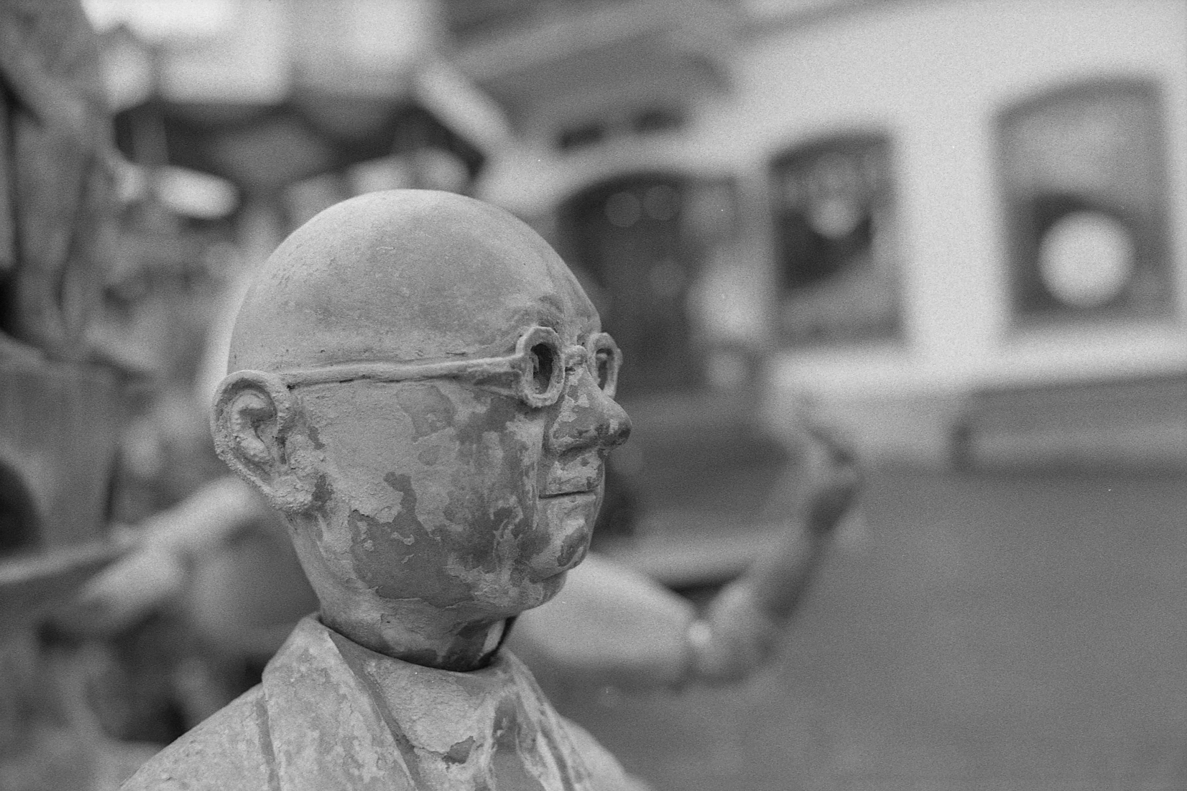 Der Typ am Brunnen erinnert mich ein bisschen an Gandhi, aber das ist glaube ich reiner Zufall. (Wer ist eigentlich dieser Rainer, von dem immer alle reden?) (1/250s, f/4.) Da stehen noch mehr von seinen Kollegen rum, aber die habe ich mal links liegen lassen. Schönes Portrait-Bild.