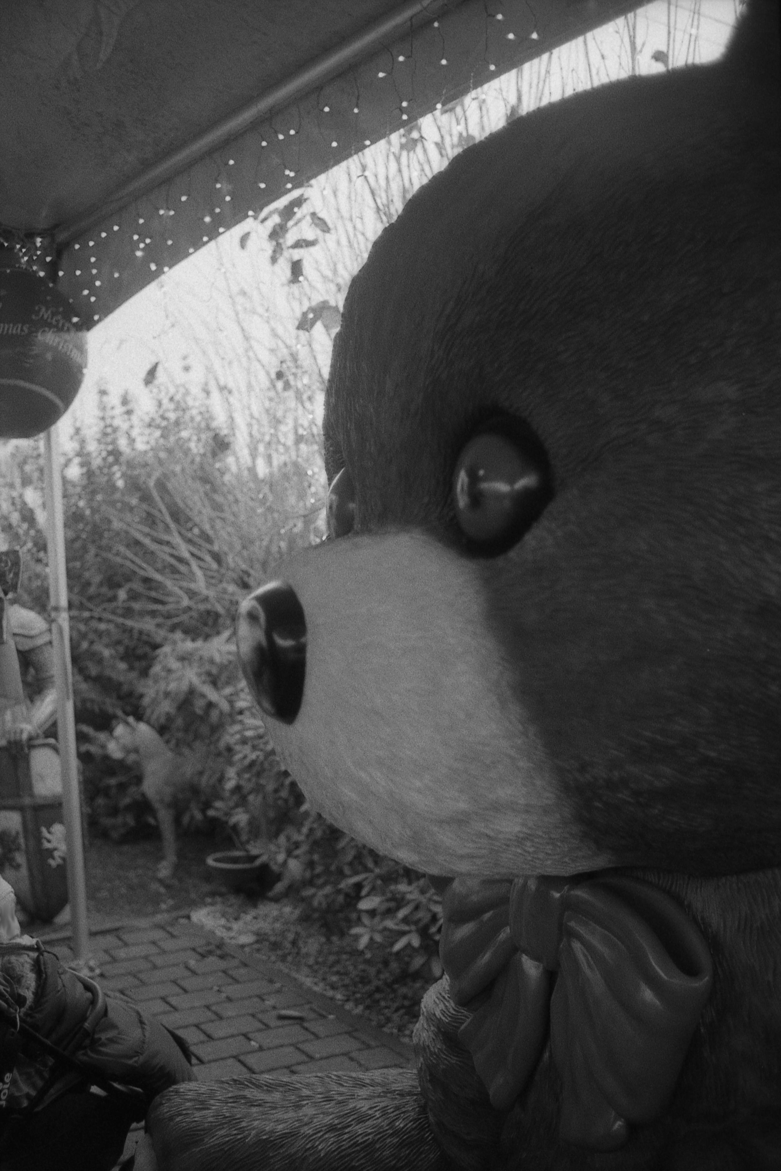 Den gigantischen Bär fand ich allerdings dann schon ein bisschen creepy. (1/125s, f/2.) Also, vielleicht auch ein bisschen mehr. Vielleicht habe ich zu viele Horrorstories im Kopf, in denen sich diese harmlosen Gefährten in blutrünstige Monster verwandeln oder was, aber irgendwie läuft mir bei diesem leicht unscharfen Bild ein Schauder den Rücken runter. Oder vielleicht liegt es auch daran, dass es draußen so warm ist und die Heizung meinte, dass sie über Nacht schon mal in den Sommermodus schalten könnte, weshalb mir ein bisschen frostelig ist.