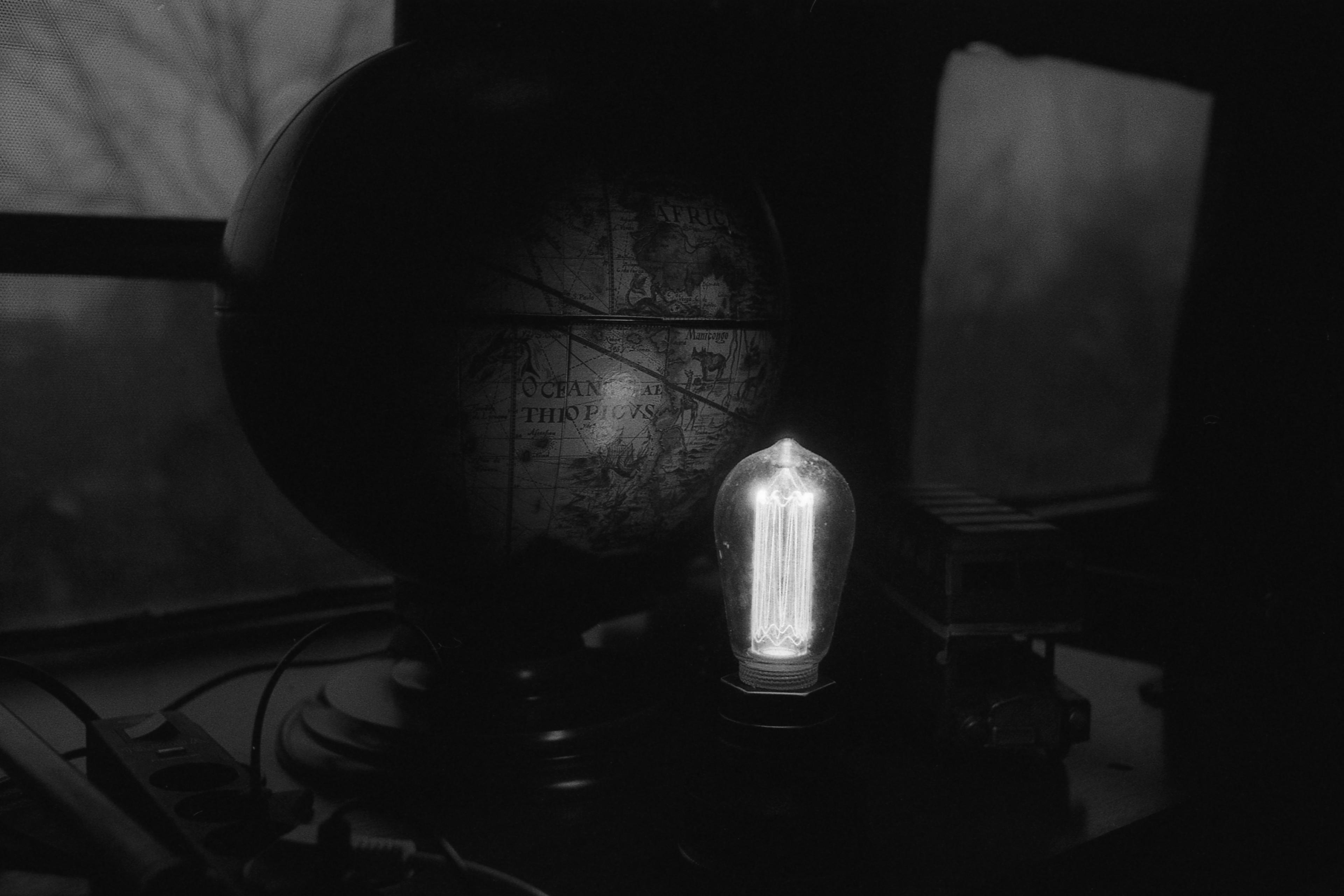 Die Taube hatte ich auf dem Weg zum Stand mit den Fish & Chips erwischt, danach haben wir uns ja in das Doppeldecker-Dings verzogen, wo dieser "alte" (auf alt getrimmte) Globus rum stand, beleuchtet von einer dieser neumodischen LED-Faden-Lampe. (1/250s, f/4.) Hätte ruhig eine Blende langsamer belichten können, obwohl die Spiegelung im Südatlantik schon was her macht, auch bei diesen Werten!