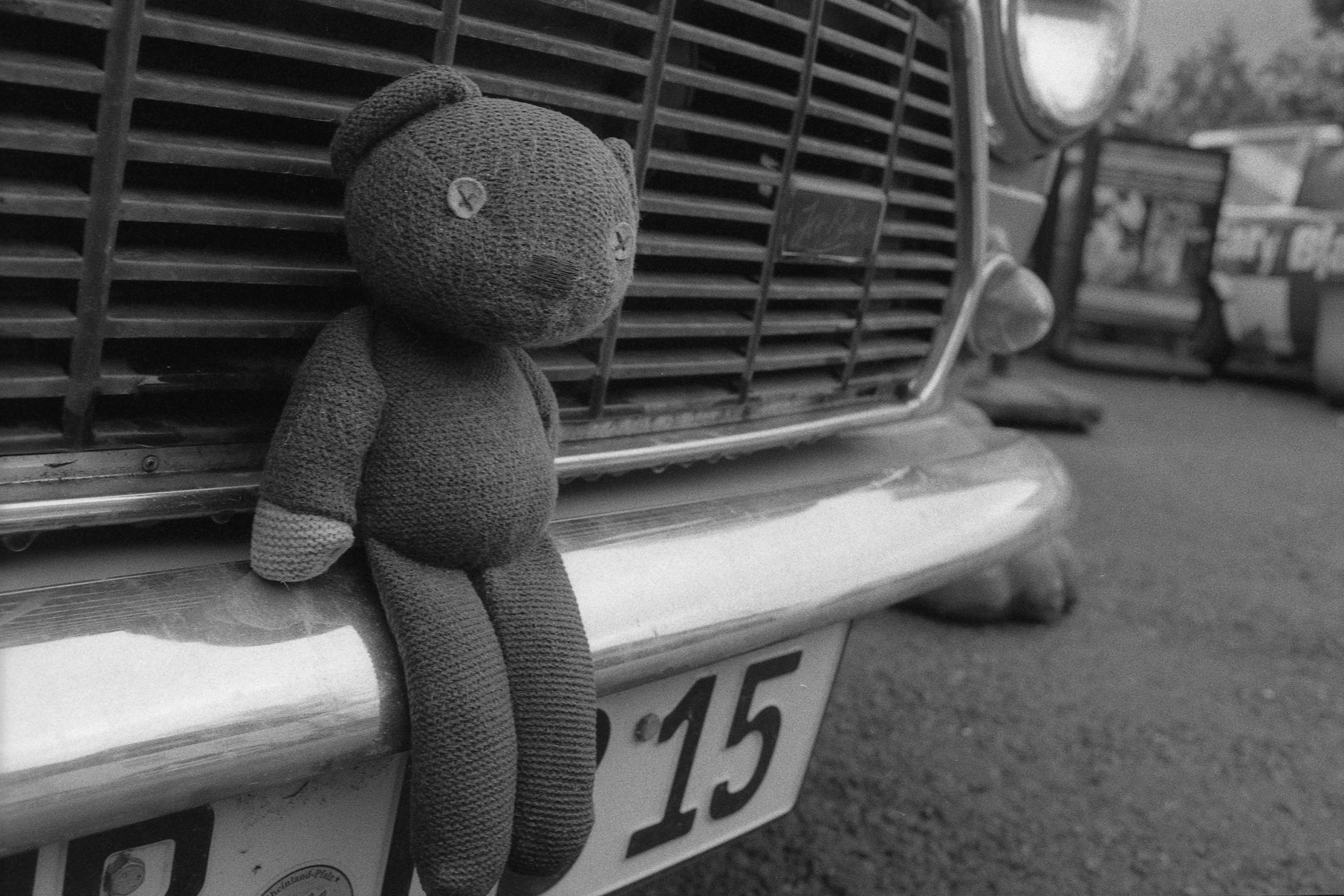 Der Teddybär auf der Stoßstange, ist das so eine Anspielung auf Mr. Bean? (1/60s, f/11.) Wahrscheinlich. f/11 ist bei mir ja eine eher selten anzutreffende Blende, aber ich fand, hier wäre ein bisschen mehr Tiefe angemessen. Außerdem, wie man daran sieht, dass das alles etwas schief ist, habe ich dieses Bild eher aus der Hüfte geschossen, da ist jeder Zentimeter mehr an Schärfe hilfreich, wenn man ein manuelles Objektiv auf der Kamera hat!
