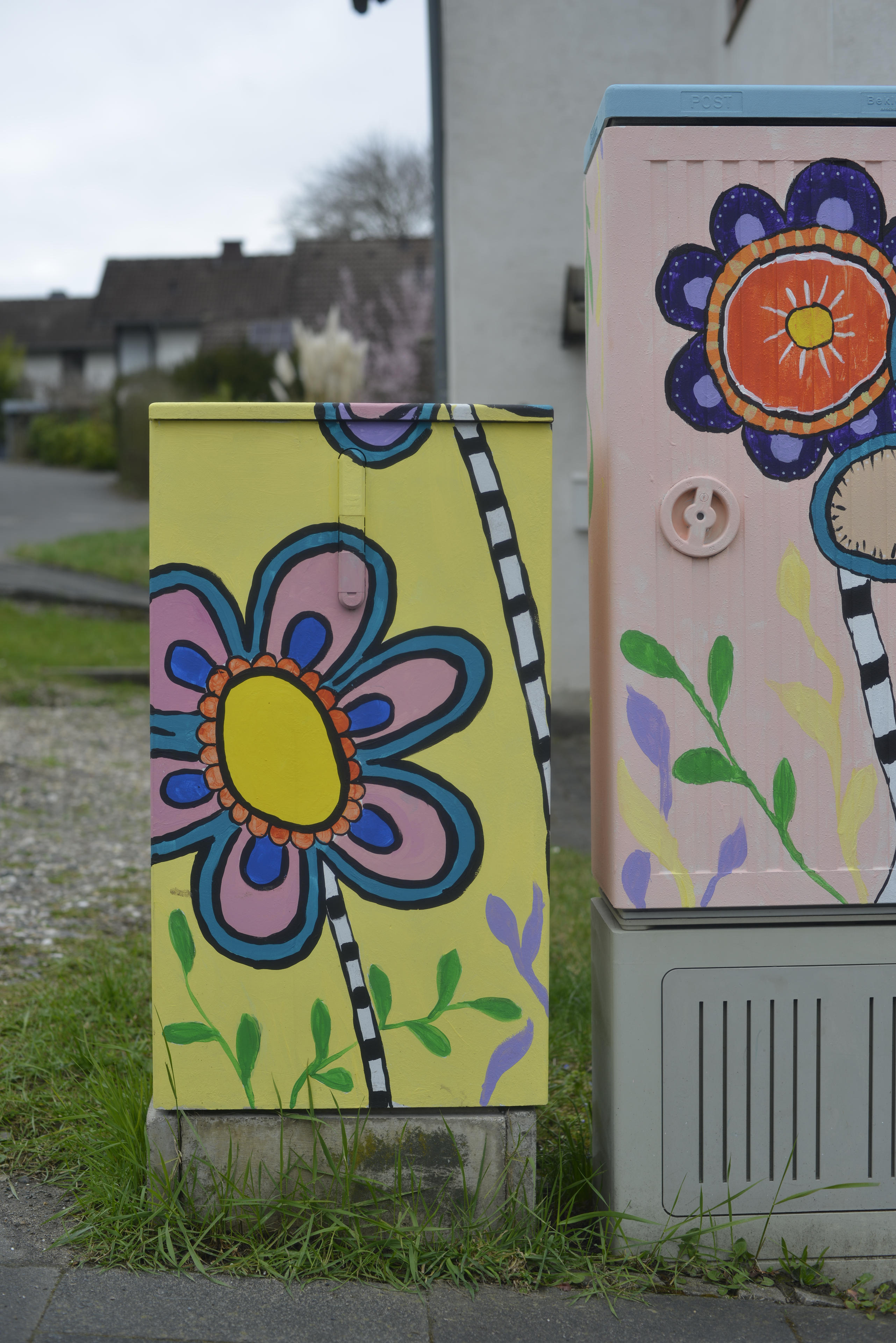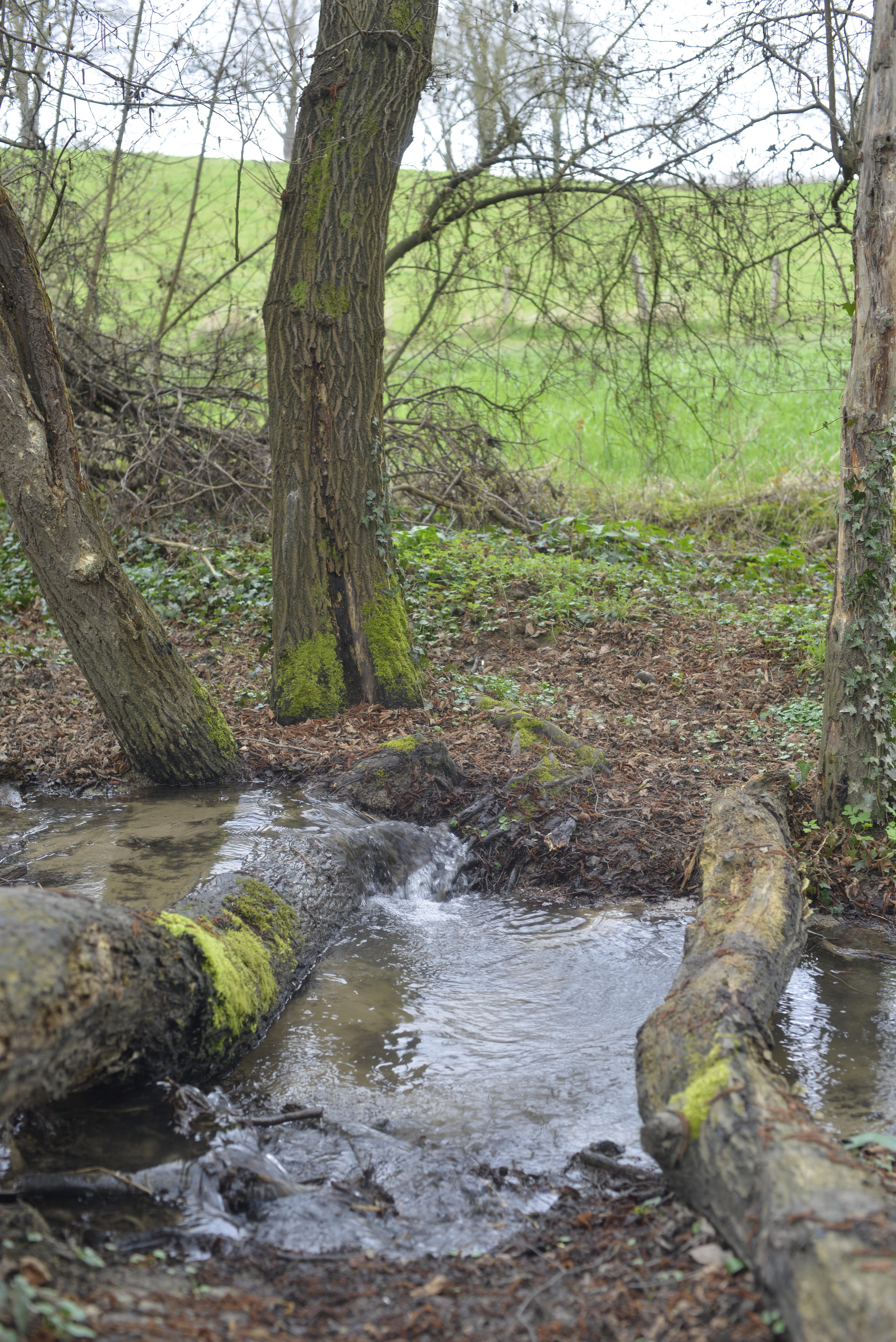 Von hier aus bin ich dann so langsam Richtung Heimat abgebogen, also links rum. Vorbei am Wegekreuz mit den Stiefmütterchen, vorbei an den Forsithyen-Sträuchern, am Schaltkasten rechts und dann den Berg hoch. Weil, ich hatte mir gedacht, nimm die Scenic Route über den Hausberg. Kannste noch n paar Bilde mehr machen. Hat der Bach da eigentlich einen Namen? Bestimmt. Ahja, bei Google Maps heißt der "Lüppigsbach". Was ist ein Lüppig? Da gibt es in Söven eine Straße, die so heißt... Jedenfalls haben die den vor ein paar Jahren mal ein bisschen renaturiert, wahrscheinlich weil die Stadt Angst hatte, dass da auch irgendwann so ein "Starkregenereignis" alles wegspült, was Stromabwärts liegt, wie das hier im Rosental ja damals passiert ist.