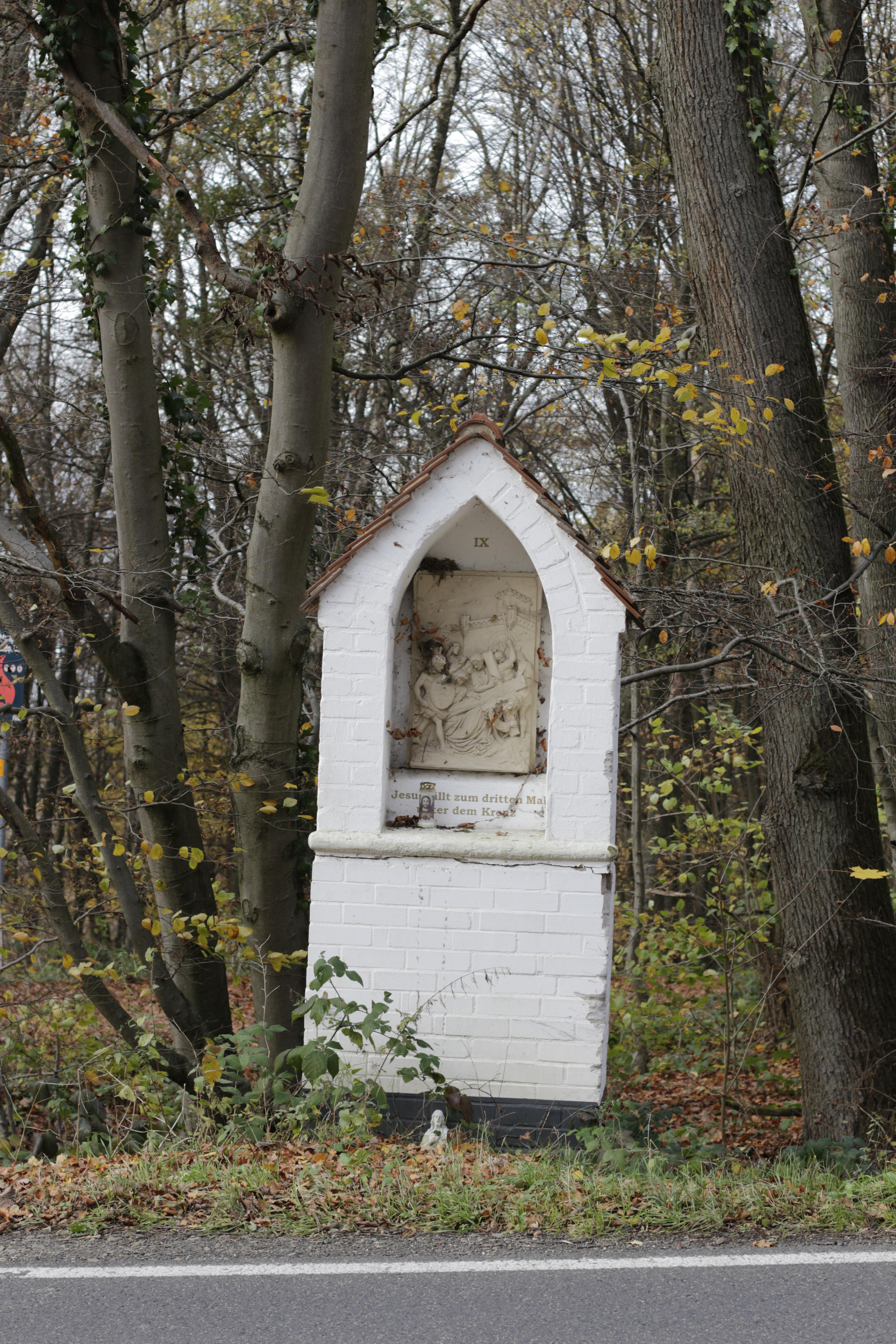 12.11.: Vor dem Einkauf wollte ich mich bewegen. Deswegen nicht nach Hennef, sondern hoch nach Uckerath und da dann noch ein paar Meter weiter in den Wald. Weil, da ist es auch ganz nett und man kann die Füße lüften. Wie so oft am Waldweg geparkt und erst mal die Kamera kalibriert, indem ich ein Foto vom Auto gemacht habe. Ich finde ja noch immer, dass der alte Civic was her macht, solange man nicht zu genau hinschaut und die abblätternde Farbe sieht! ;-) Auch Jesus stimmt mir scheinbar zu: "Kommt her, die ihr müde und beladen seid!" Wenn das nicht auf mein altes Auto zutrifft, dann weiß ich auch nicht.