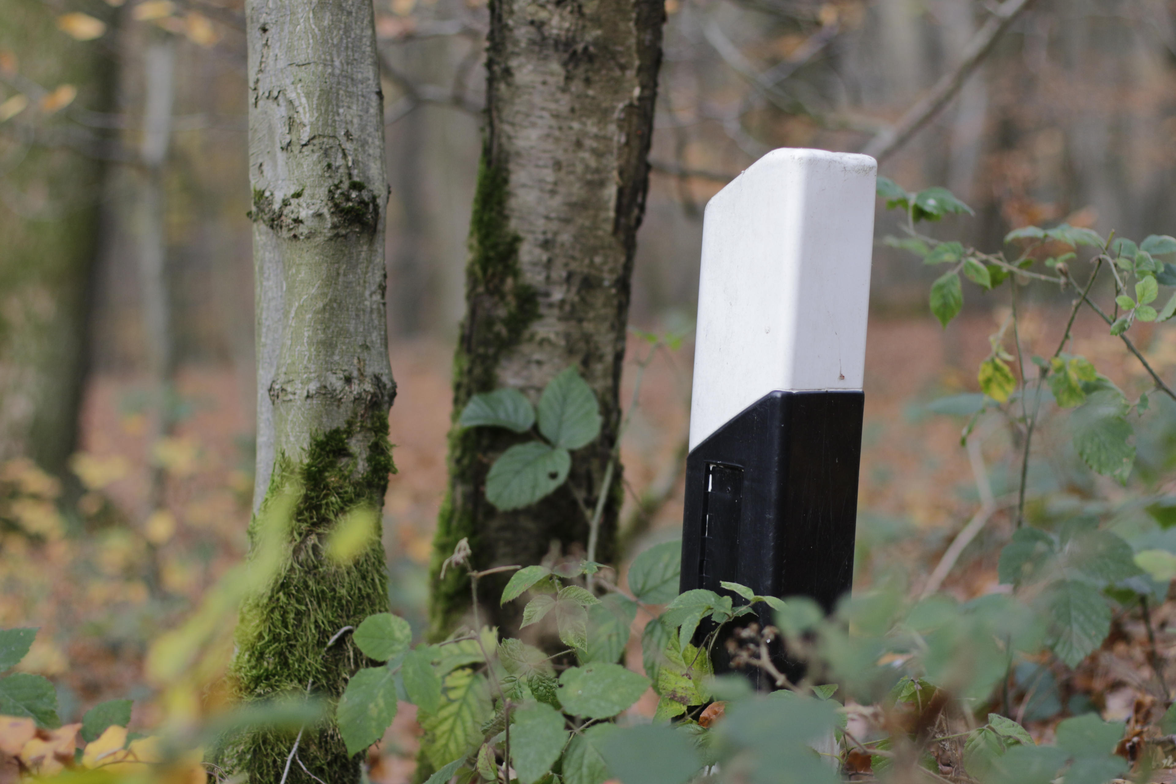 Bleibt die Frage, warum da mitten im Wald diese Seitenstreifenpfosten stehen, nur ohne Reflektoren. Waren die irgendwo übrige? Markieren die die einzelnen "Felder", wem hier welche Bäume gehören? Oder sind die einfach nur da, weil. Man weiß es nicht, ich mache aber immer, wenn ich hier durch komme, Fotos davon. Ist ja auch wichtig.