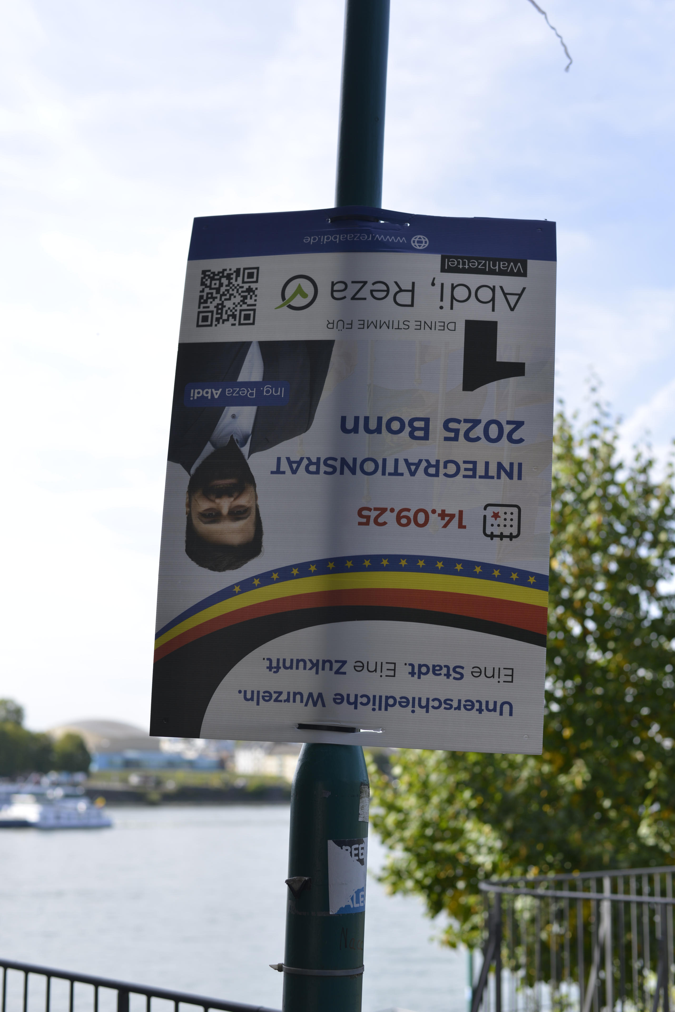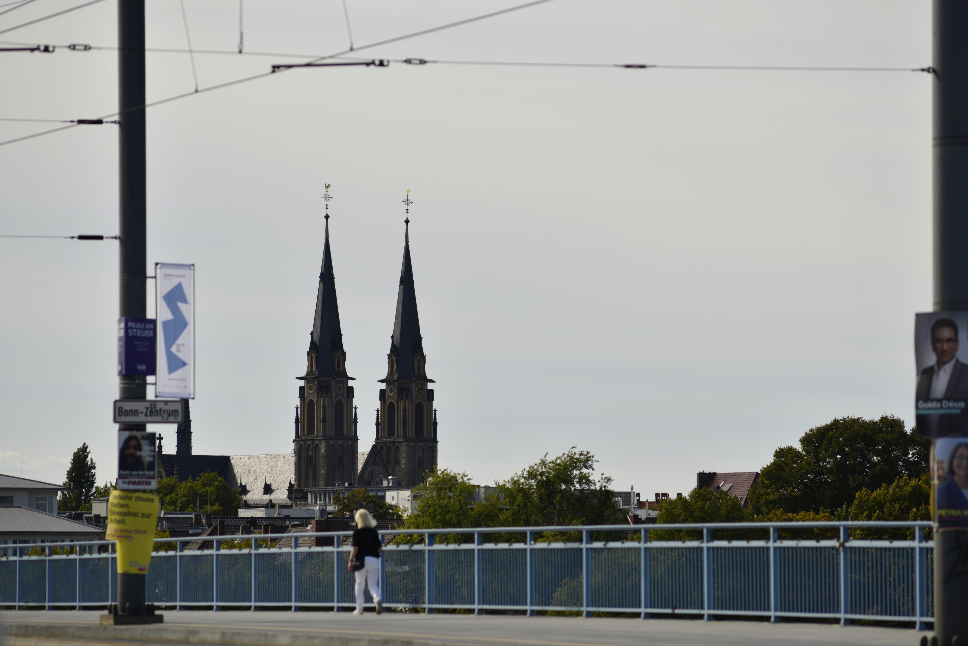 Nicht, dass ich groß andere Motiva als sonst in Bonn fotografiert hätte. Wobei, das Luftschiff, dass seine Ausflugsfahrten von Hangelar aus macht, hat einen neuen Sponsor. Wobei ich schon vergessen habe, was da früher drauf klebte. Ach ja, und es war ja noch Wahlkampf, weshalb die Plakate auf dem Kopf aufgehängt werden. Ganz wichtig! Man muss die Leute verwirren, sonst liest den Scheiß doch eh keiner, der da drauf steht! (Integrationsrat haben wir bei uns auf dem Dorf eh nicht. Wobei der vielleicht sinnvoll wäre, nachdem selbst hier die blauen Semifaschisten viel zu viele Prozente bekommen haben. Da wünscht man sich, man wäre ein Kormoran, könnte auf den Pinnen sitzen, die an der Brücke seitlich raus gucken, und man hätte nix damit zu tun. Haben die auch Integrationsprobleme mit den Kanada- und Nilgänsen? Ich bezweifle es...