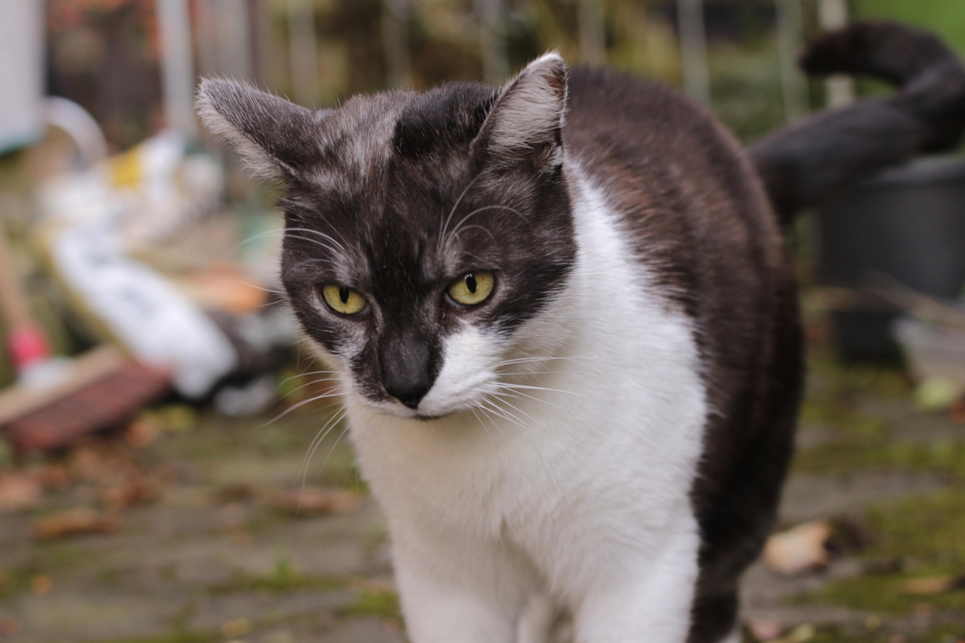 11.11.: Abends mal eben vor die Tür, und wenn es nur einmal kurz durchs Dorf ist. Bevor die Sonne schon wieder untergeht. Schlimm. Der Herbst ist immer deprimierend: Kaum, dass es endlich mal hell draußen ist, verschwindet das große, runde, leuchtende Ding schon wieder hinter dem blöden Hausberg. Deswegen: Raus, solange noch etwas Helligkeit vorhanden ist. Hat sich der Kater auch gesagt!