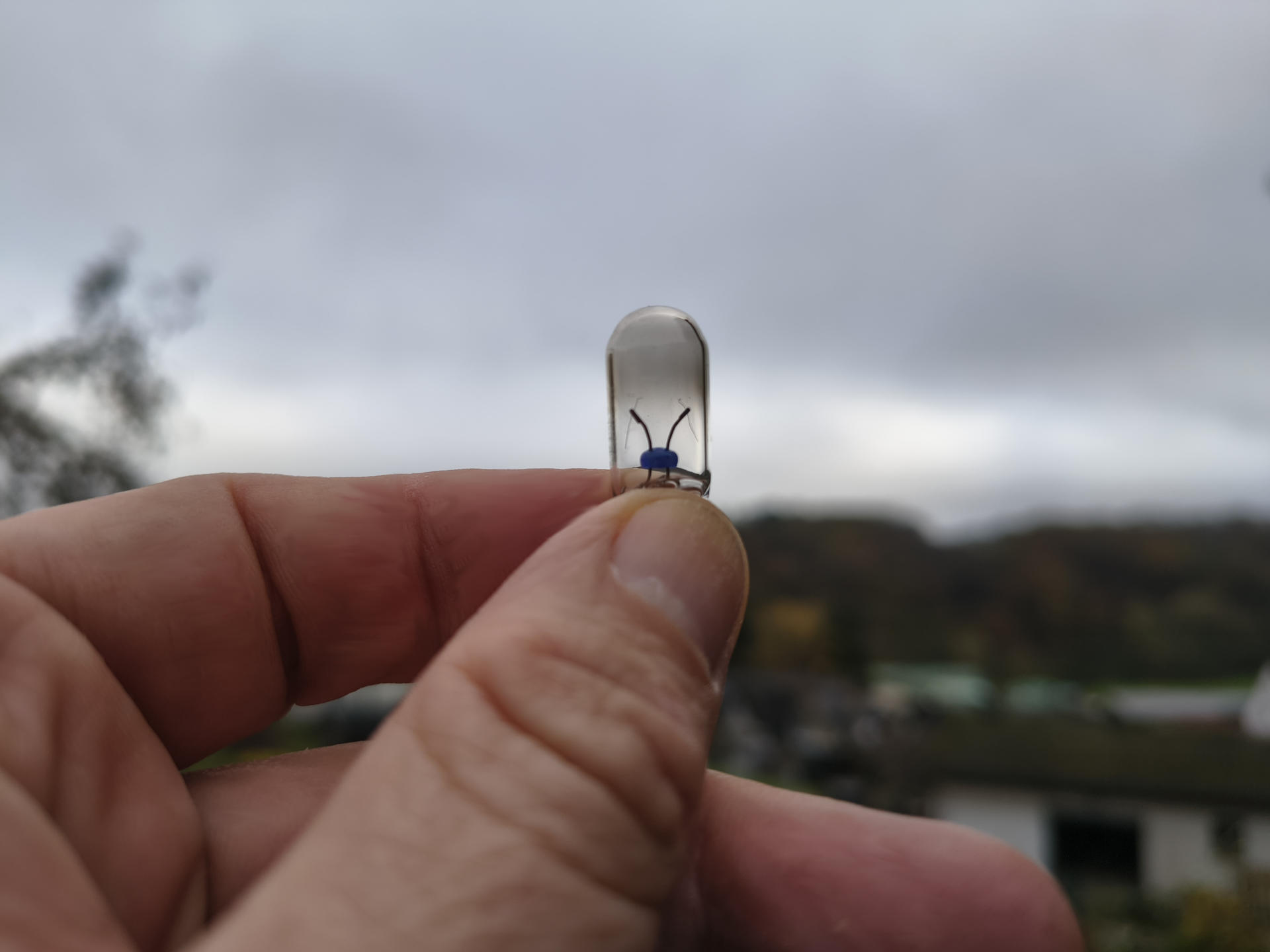 ...heißt im im Beamtendeutsch ja eigentlich gar nicht so, sondern "Parklicht" oder "Positionsleuchten" oder sowas, ich hab ja keine Ahnung. Jedenfalls: Auch nach 20 Jahren gibt es noch Dinge, die ich noch nie gemacht habe an diesem Fahrzeug. Was wohl auf die Langlebigkeit dieser 5 Watt Glühbirnen hindeutet. Ich glaube nicht, dass die bisher jemals getauscht worden wären. Im Gegensatz zum H1-Abblendlicht, das ich ja letztens erst zwei Mal nacheinander innerhalb von zwei Monaten (links) tauschen durfte, weil mir die letzte Birne explodiert ist, die hatte wohl Luft gezogen, lag wohl schon ein paar Jahre im Handschuhfach. (Ist übrigens wieder aufgetaucht. Ich hatte die ja fallen lassen und nicht wieder gefunden, aber jetzt lag sie ganz offensichtlich auf dem Scheinwerfer. Weiß ich auch, was da die letzten Tage so geklappert hat.) Dabei war das eine von den guten Osrams. Jetzt fahr ich wieder mit so 'nem billigen Schrott von der Tanke rum.