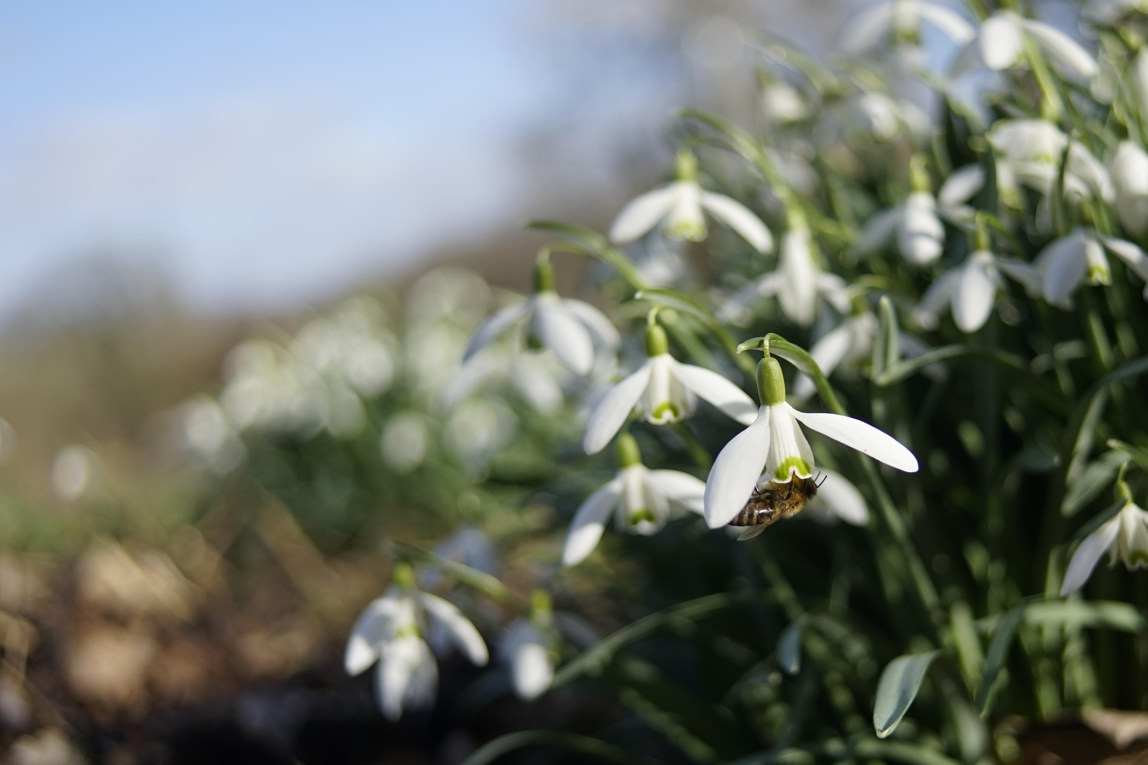 Ansonsten: Die Frühlingsblumen sind förmlich explodiert. Man frag sich ja echt, wo die sich die ganze Zeit versteckt gehalten hatten. Und die passenden Bienchen auch. Alles summt und brummt. Die Schneeglöckchen sehen ja immer in bisschen albern aus, wenn die dicken Insekten da wie ein Klöppel drin rum brummeln. Ich muss aber echt mal die Nahlinsen mit nehmen. Hab ich überhaupt einen passenden Step Up für die Minolta-Objektive?