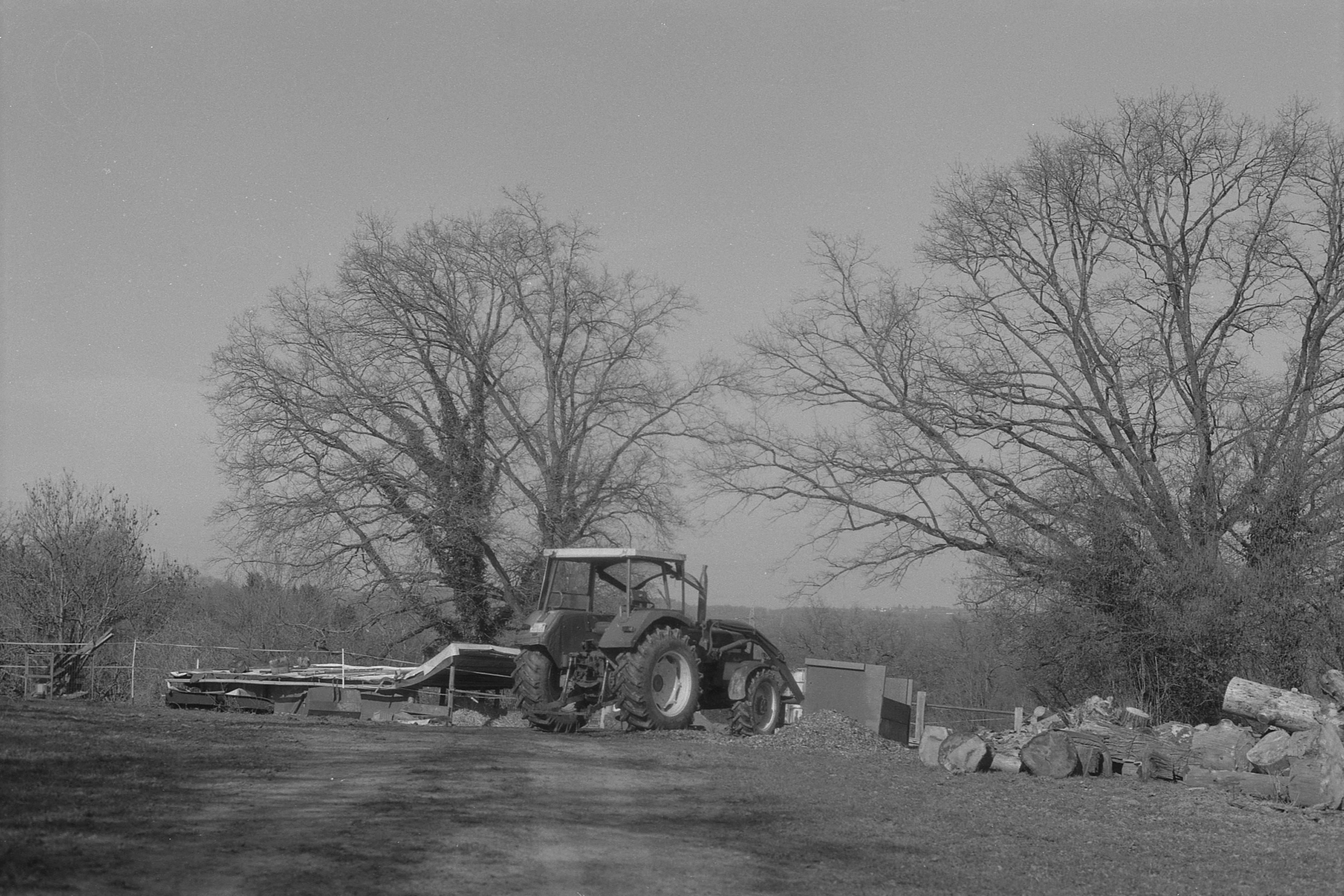 Angefangen hat alles wie immer mit dem Trecker, der auf der Wiese direkt am Ende unserer Sackgasse steht. (1/1000s, f/5,6.) Wie man an den Werten sehen kann, es war hell! Also, so Sunny Sixteen hell! Die Sonne kann schon was um diese Jahreszeit! Und das Objektiv macht so weit abgeblendet auch richtig gute Schärfe und steht dem modernen AF nicht nach. (Ich hatte ja eh schon spekuliert, ob das nicht eh der gleiche Aufbau nur mit modernerer Beschichtung ist.)