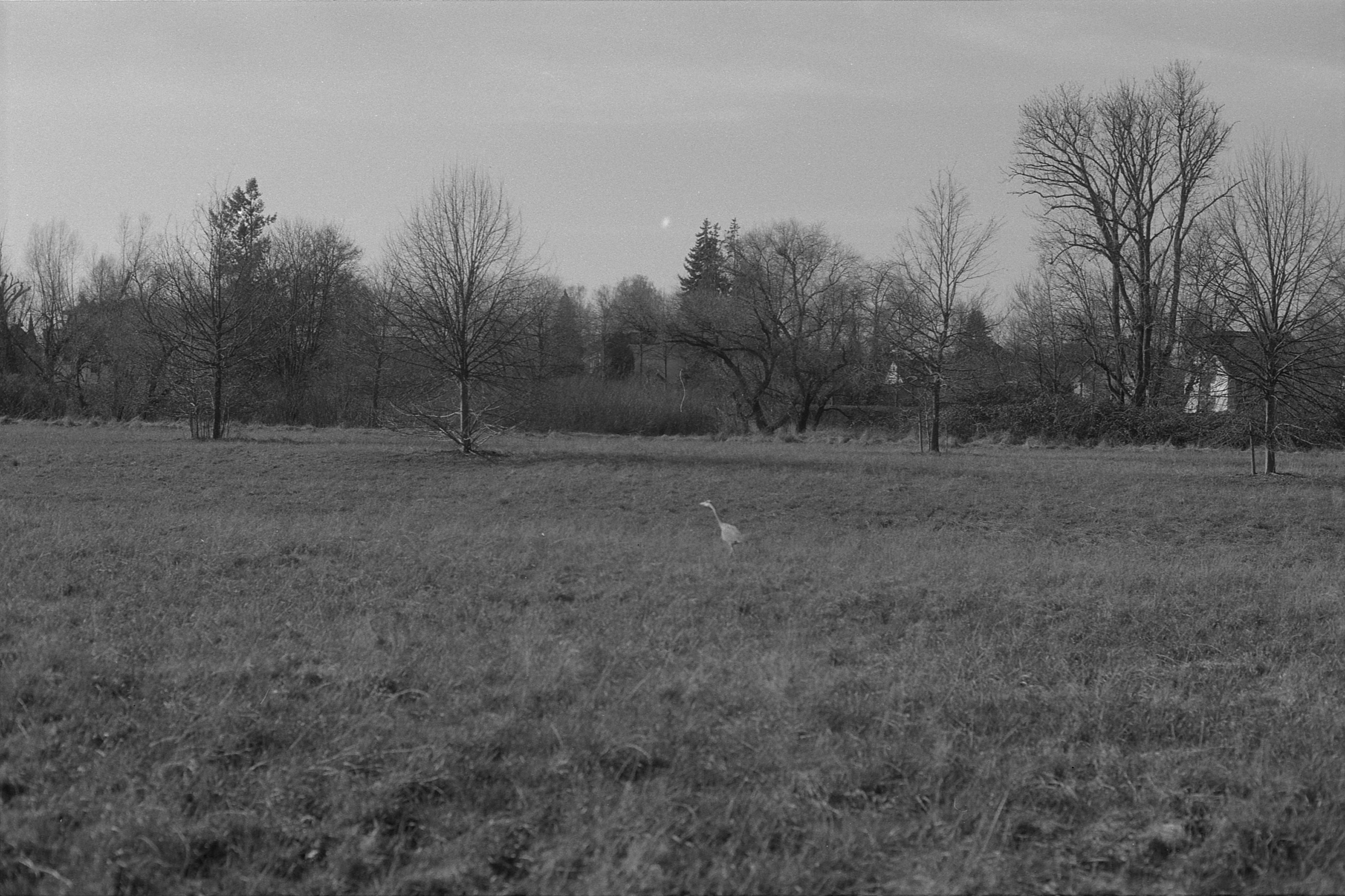 Der Reiher war definitiv zu weit weg. (1/1000s, f/4.) Trotzdem wollte ich den nicht links (oder in diesem Fall rechts) liegen lassen. Und er ist ja auch trotzdem erstaunlich scharf geworden und wenn der Film höher auflösen würde und mein Scanner nicht so unscharf wäre, könnte man da glatt noch was raus vergrößern. Muss mal mit dem Vergrößerer einen Abzug mit Ausschnittvergrößerung versuchen. Wie hoch kann ich den eigentlich drehen? Hm...