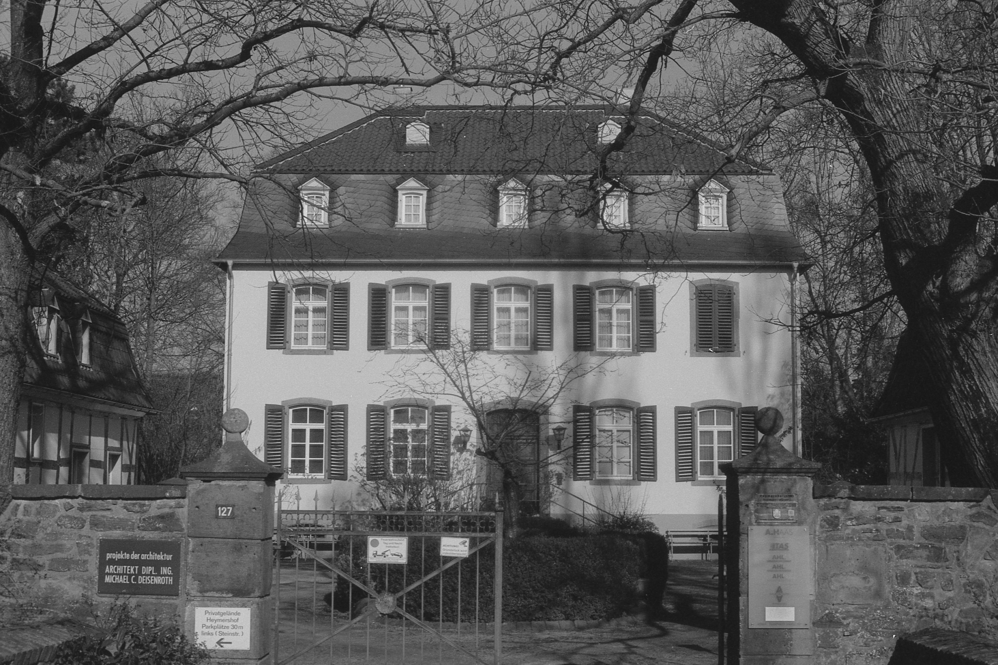 Dann das alte Herrenhaus. (1/500s, f/8.) Immer ein Motiv wert. Und wie man sieht, ballerte hier die Sonne so, dass wieder Sunny 16 angesagt war. Also, umgerechnet auf f/8. Bei dem Wetter braucht man eigentlich keinen Belichtungsmesser. Das 50er ist jedenfalls auch architekturgeeignet. Geile kleines Objektiv, sagte ich das schon?