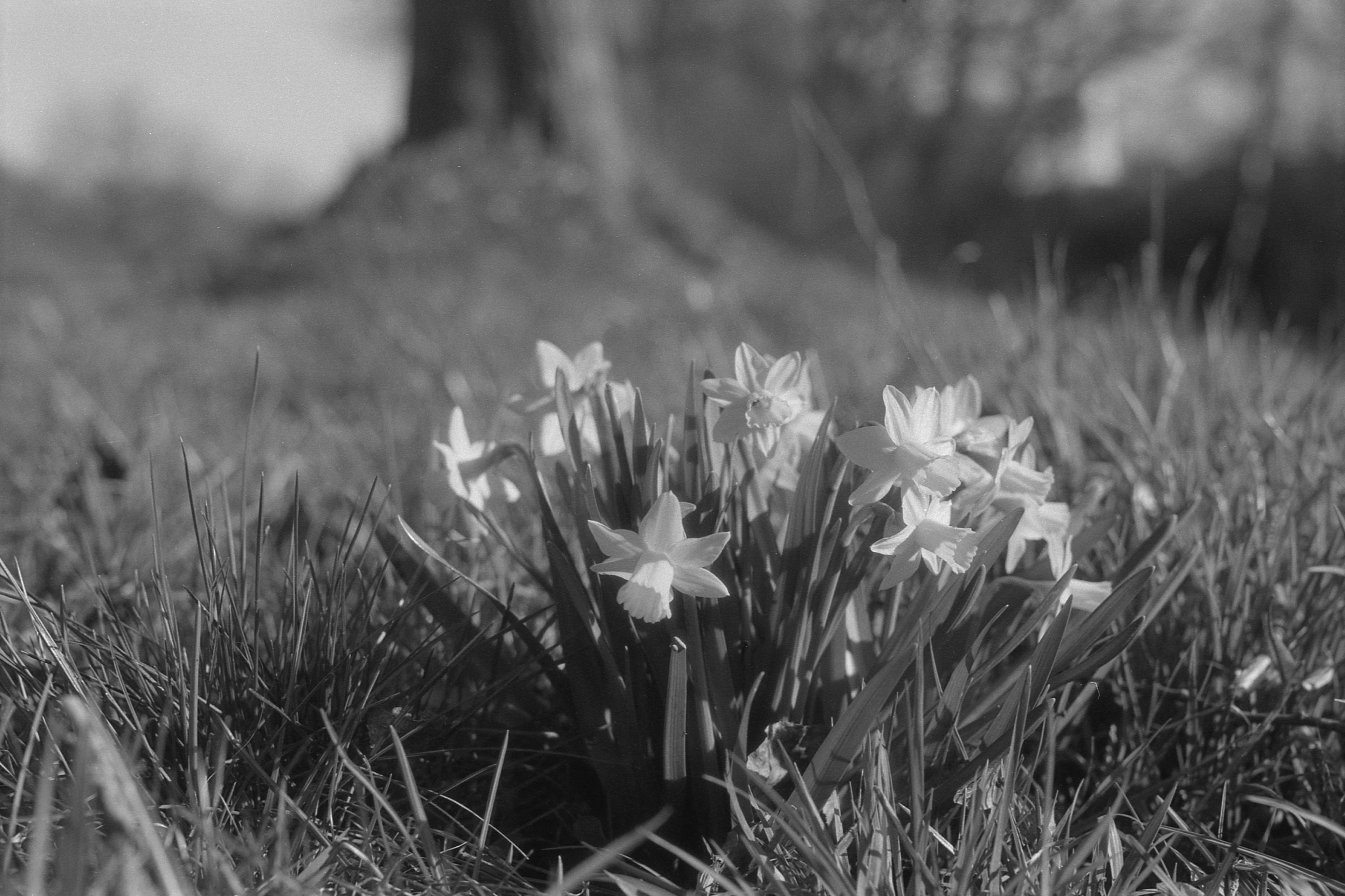 Vor der Kirche dann noch ein paar narzissige Osterglocken eingesammelt, oder sind es osterglockige Narzissen? Man weiß es nicht. (1/250s, f/5,6.) Zum Blumemfotografieren ist glaube ich f/5,6 meine neueste Lieblingsblende. Hinterlässt eigentlich immer einen ganz guten Eindruck und macht den Hintergrund bei dieser Entfernung auch nicht zu scharf. Im Gegenteil gefallen mir die Blendenabbilder immer ganz gut. Nur den Schmutz weg reouchieren ist immer so schwierig in den Farbverläufen.