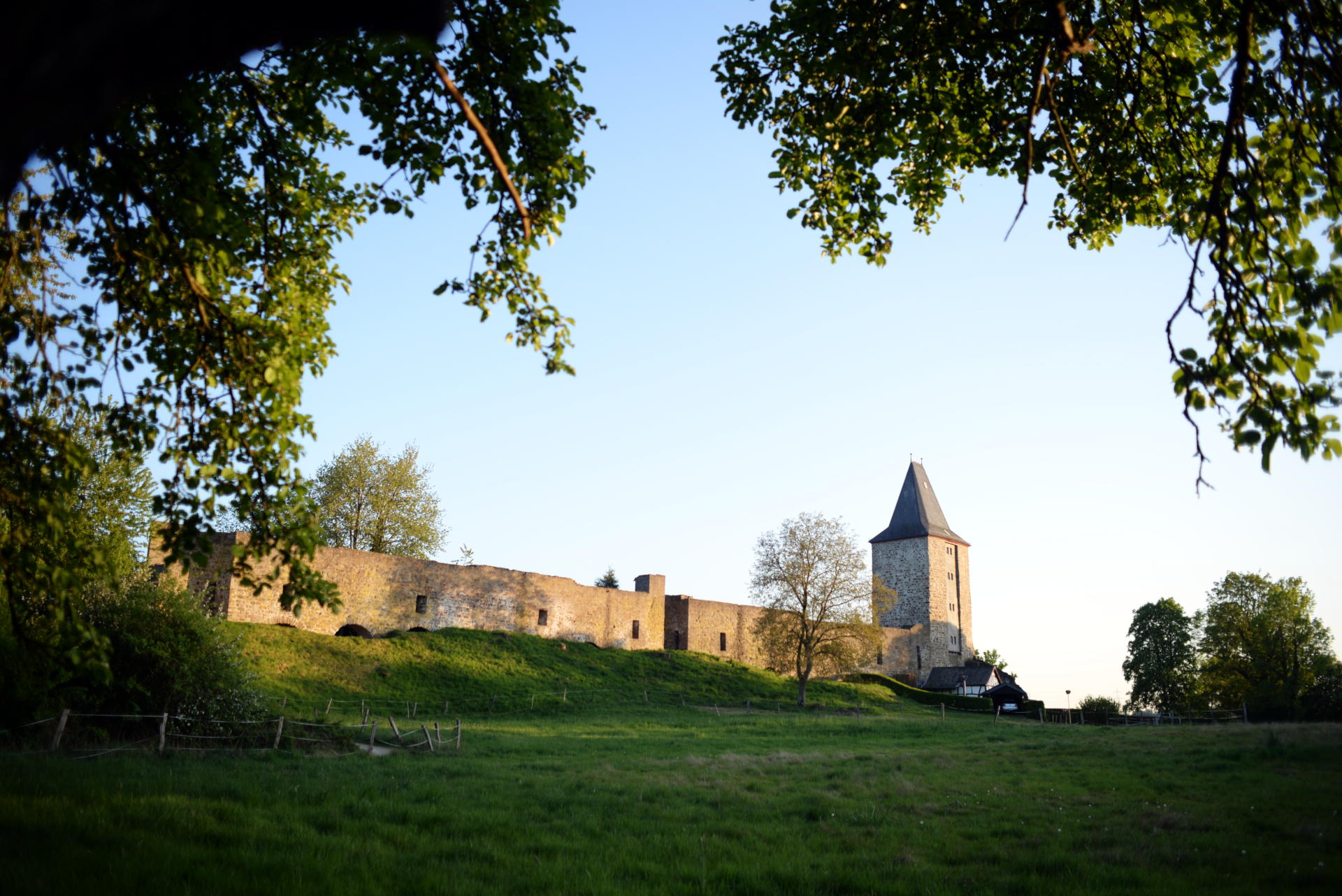 So, und dann sind wir noch rund um die und unter der Stadtmauer durch, um von der anderen Seite die untergehende Sonne zu genießen. Und wo die Blende gerade (fast) ganz offen war, was soll's, halt ich doch auch noch aufs Efeu drauf: