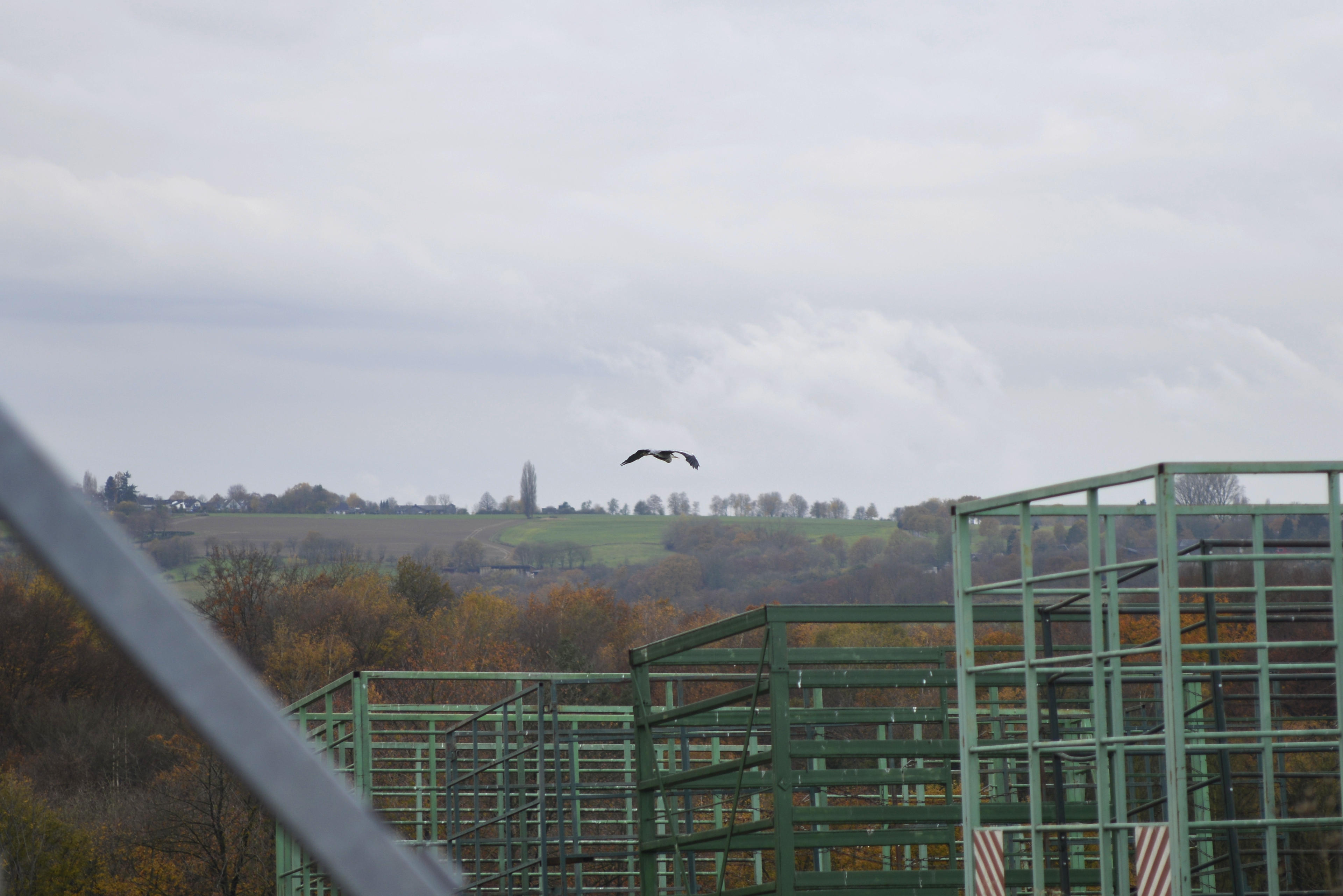 Dann weiter Richtung Lichtenberg und dort schon von weitem die Schafe gesehen. Nachdem ich den Tränkewagen und den anderen Kram am Weg ausgiebig bearbeitet hatte, wobei mir auch dieser Reiher vor die (völlig falsche und zudem falsch eingestellte) Linse gesegelt kam. Das Bild ist allerdings auch mit dem "kurzen" Nikkor und der Offenblende ausreichend gut gewesen, dass ich es einfach mal maximal gecroppt habe. Selbst in 1:1 sieht es OK aus.