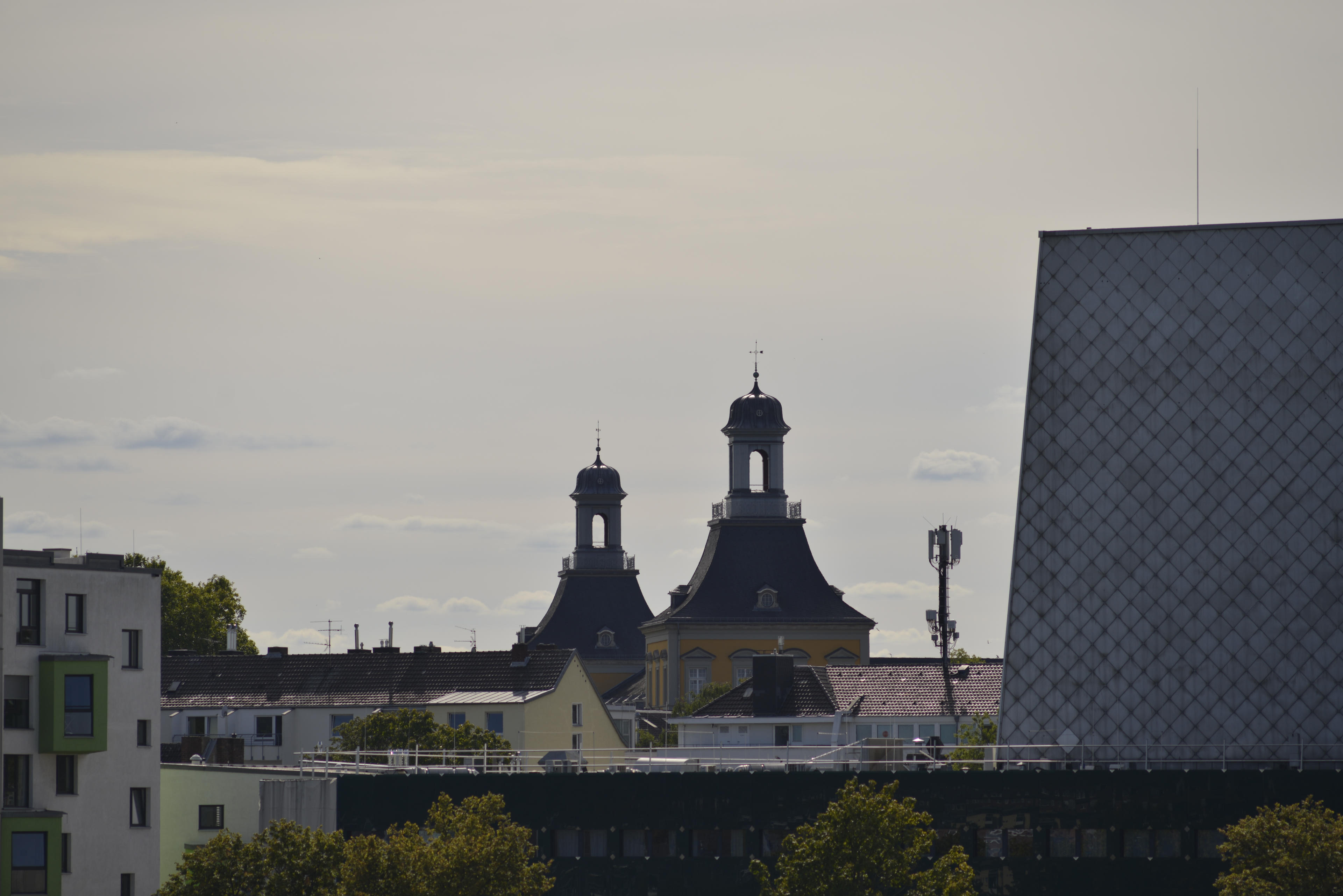 Neben Luft- gab es auch normalen Schiffsverkehr auf dem Rhein, den ich wie immer ebenfalls dokumentiert habe. Und die üblichen Kirchen auf der Bonner und der Beueler Seite des Flusses. Bei der Linie 66 kann man gut sehen, wie die LED-Anzeige flimmert und wie viel sich so eine Straßenbahn innerhalb einer zwehundertfünfzigstel Sekunde bewegt, selbst wenn die auf der Brücke nur 50 oder so fährt. Erstaunlich, dass man das an der Bahn selber gar nicht sehen kann.