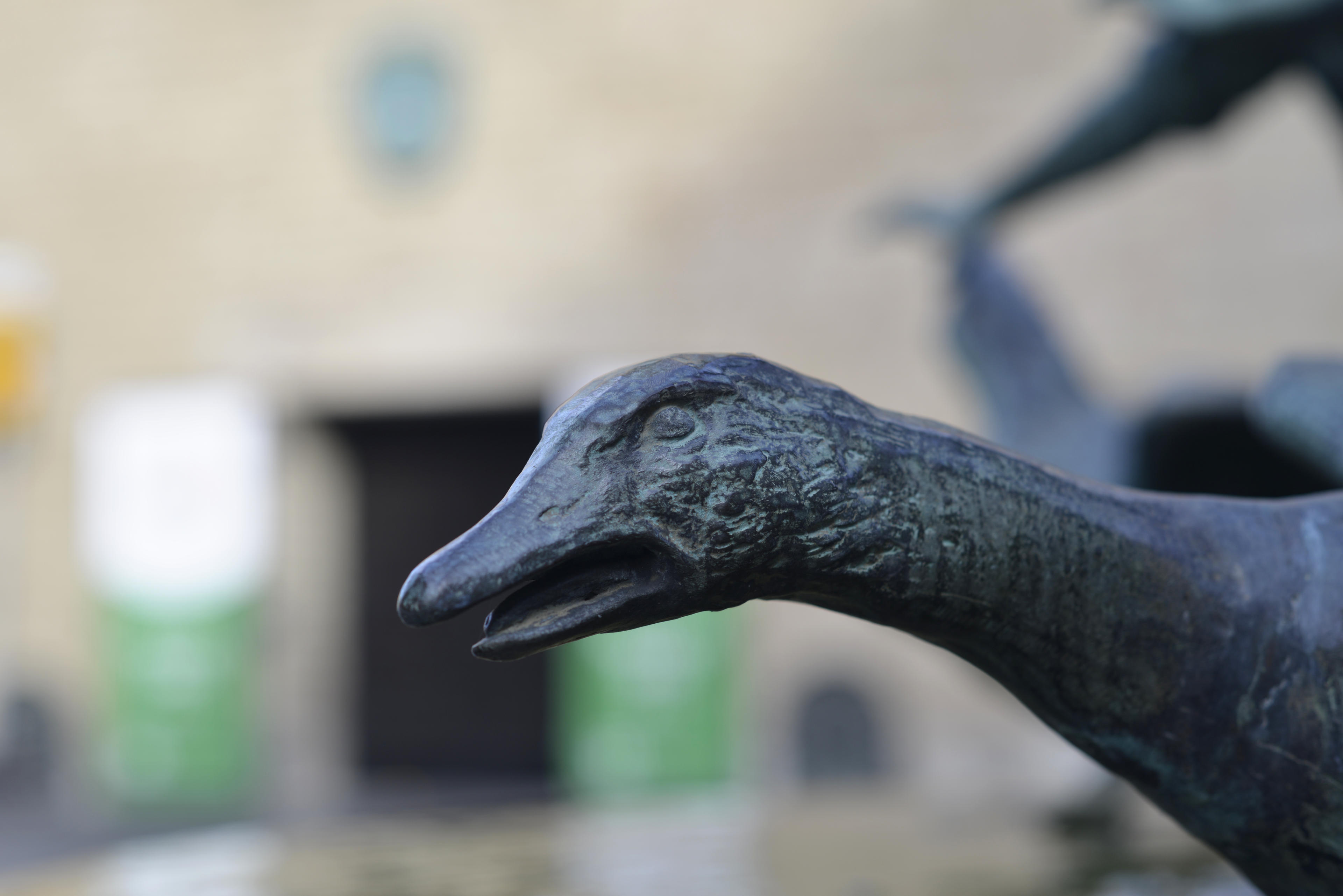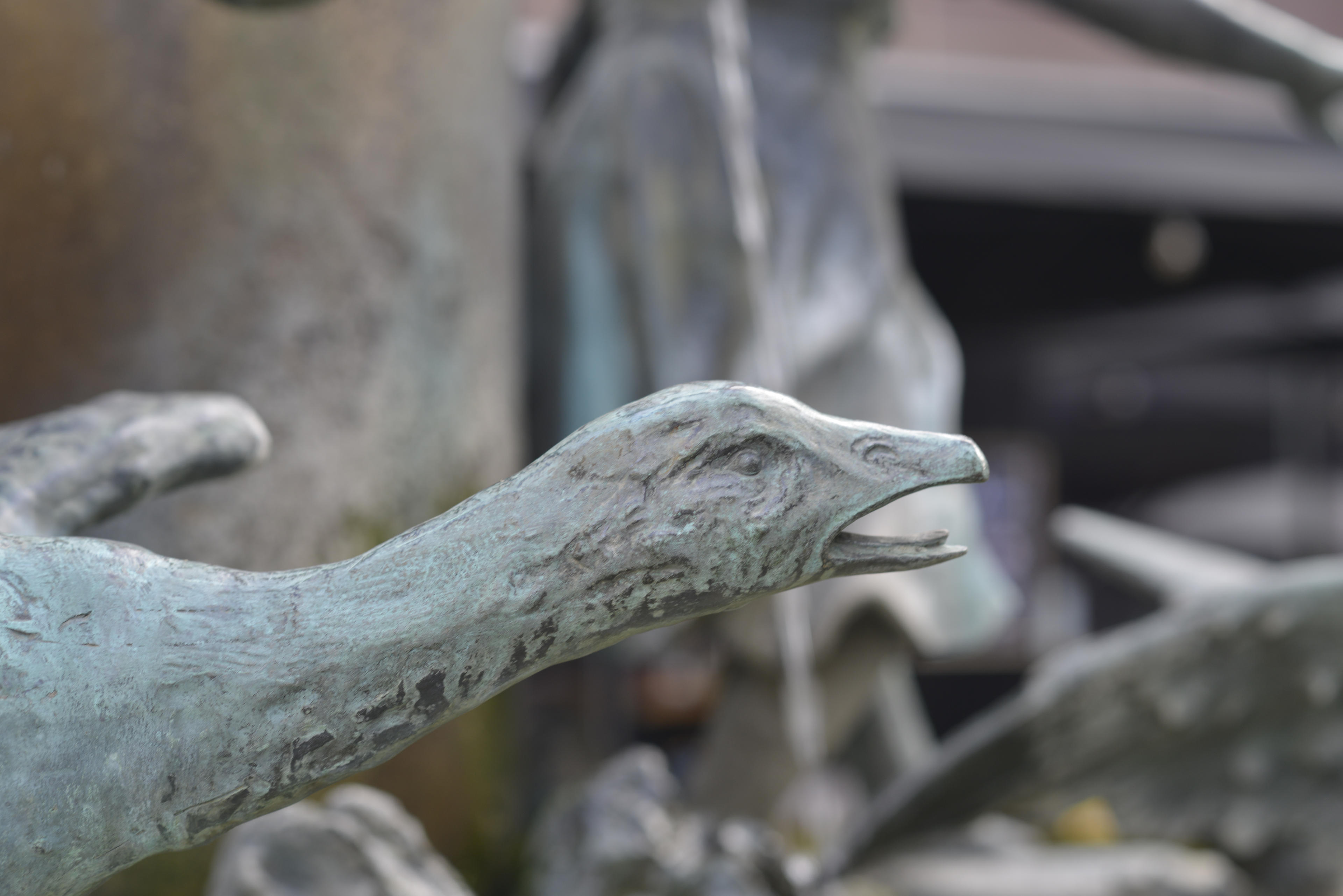 Ansonsten: Beethovens! Von links, von rechts, von hier, von da. Der dominiert den Platz ja doch irgendwie, trotz des Postamts dahinter und des riesigen Münsters vor ihm. Trotzdem ist der Herr Komponist immer das erste, was mir hier ins Auge fällt. Außer wenn er mal wieder von irgendwas verdeckt ist, so wie heute von den Buden und der Bühne. Wir haben uns auch nicht allzu lange hier aufgehalten, denn wir mussten ja tum Italiener um die Ecke, wo wir das TD geplant hatten. Und da kommt man am Gänsebrunnen vorbei. Auch eine ganz schwierige Stelle für mich, weil ich da zu viele Fotos machen kann!