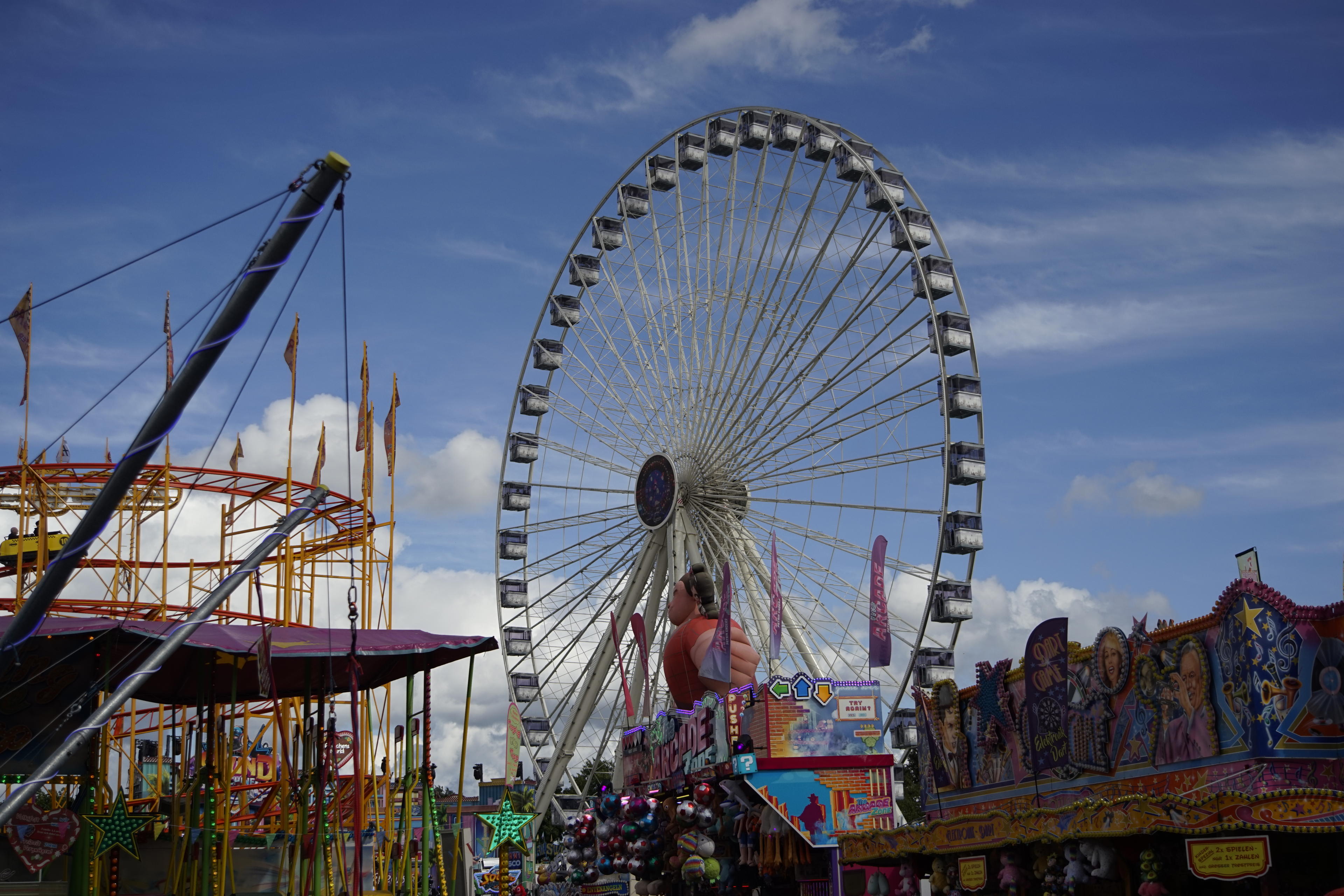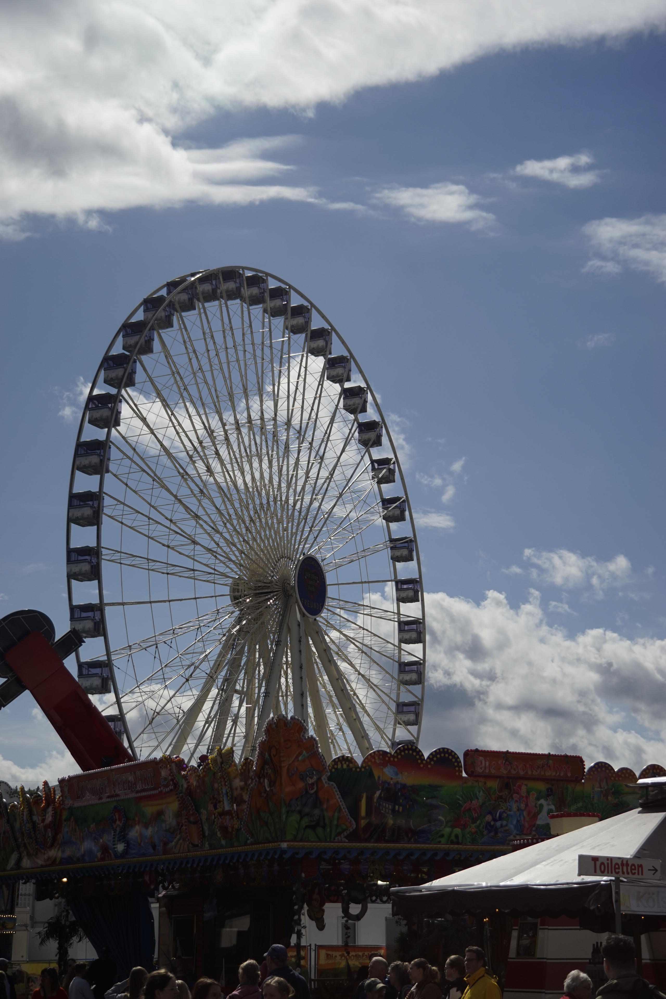 ) Stattdessen reifte bereits an dieser Stelle die Erkenntnis in uns, dass es endlich mal an der Zeit wäre, das Riesenrad zu benutzen. Schließlich schleiche ich da schon seit Jahren drumherum und bevor die nächstes Jahr die Eintrittspreise noch mal erhöhen, lieber sofort machen. 8 Euro sind pro Person ja schon ein kleines Vermögen!