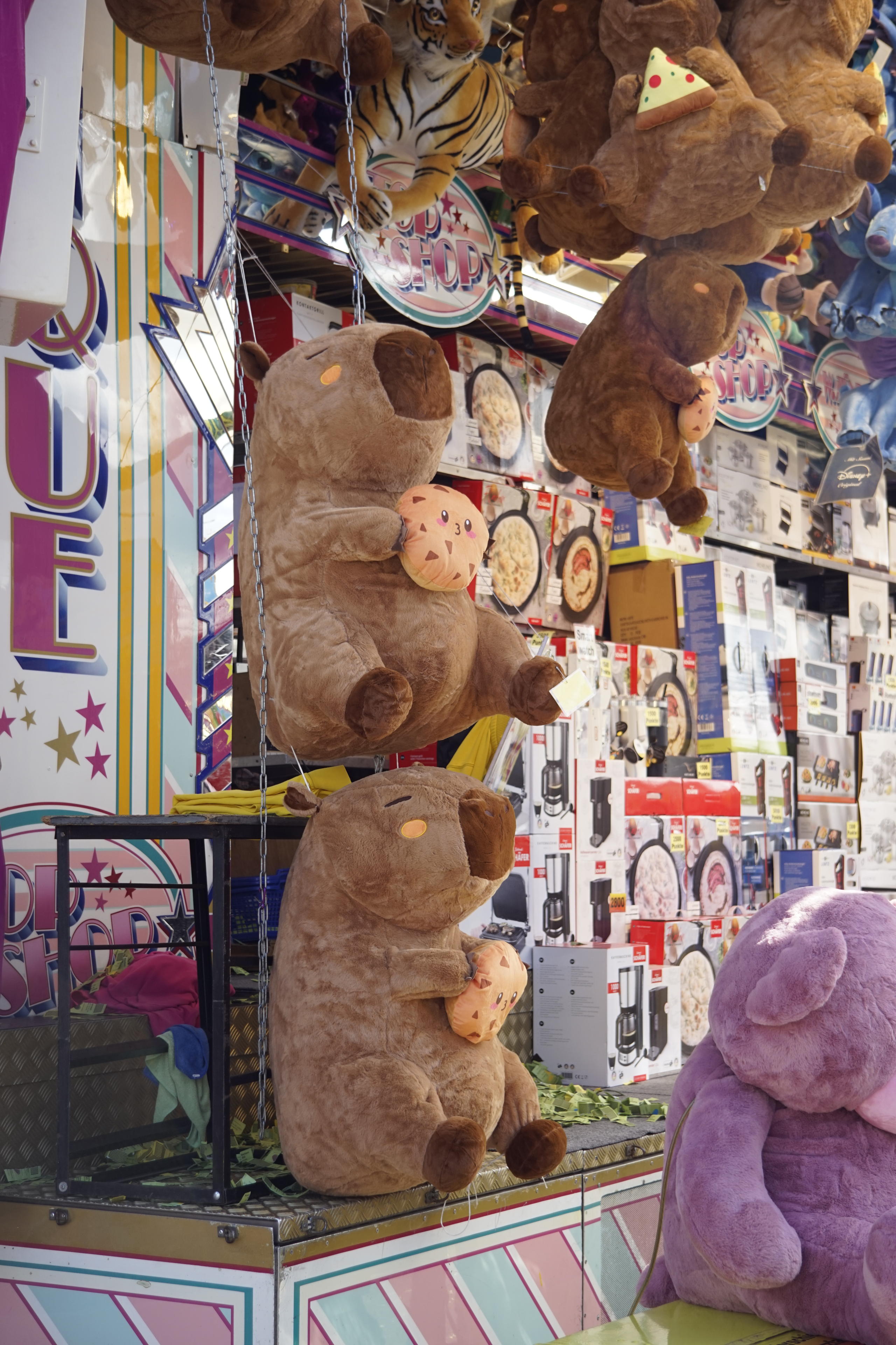 Neben den Drachen/Dinos gab es auch viele dieser Rotfüchse zu gewinnen/kaufen. Auch da frage ich mich: Ist da einfach ein riesiger chinesischer Container an sämtliche Schausteller des Landes verteilt worden, ist das einfach nur Mode oder verpasse ich einen Trend? Ich muss mir wohl doch mal TockTock installieren und die ganzen influenziernenden, KI-generierten Kinder angucken. Bisher weigere ich mich ja standhaft! Bin eh schon viel zu verseucht von Social Media. Stattdessen lieber mal ein gutes Buch lesen!