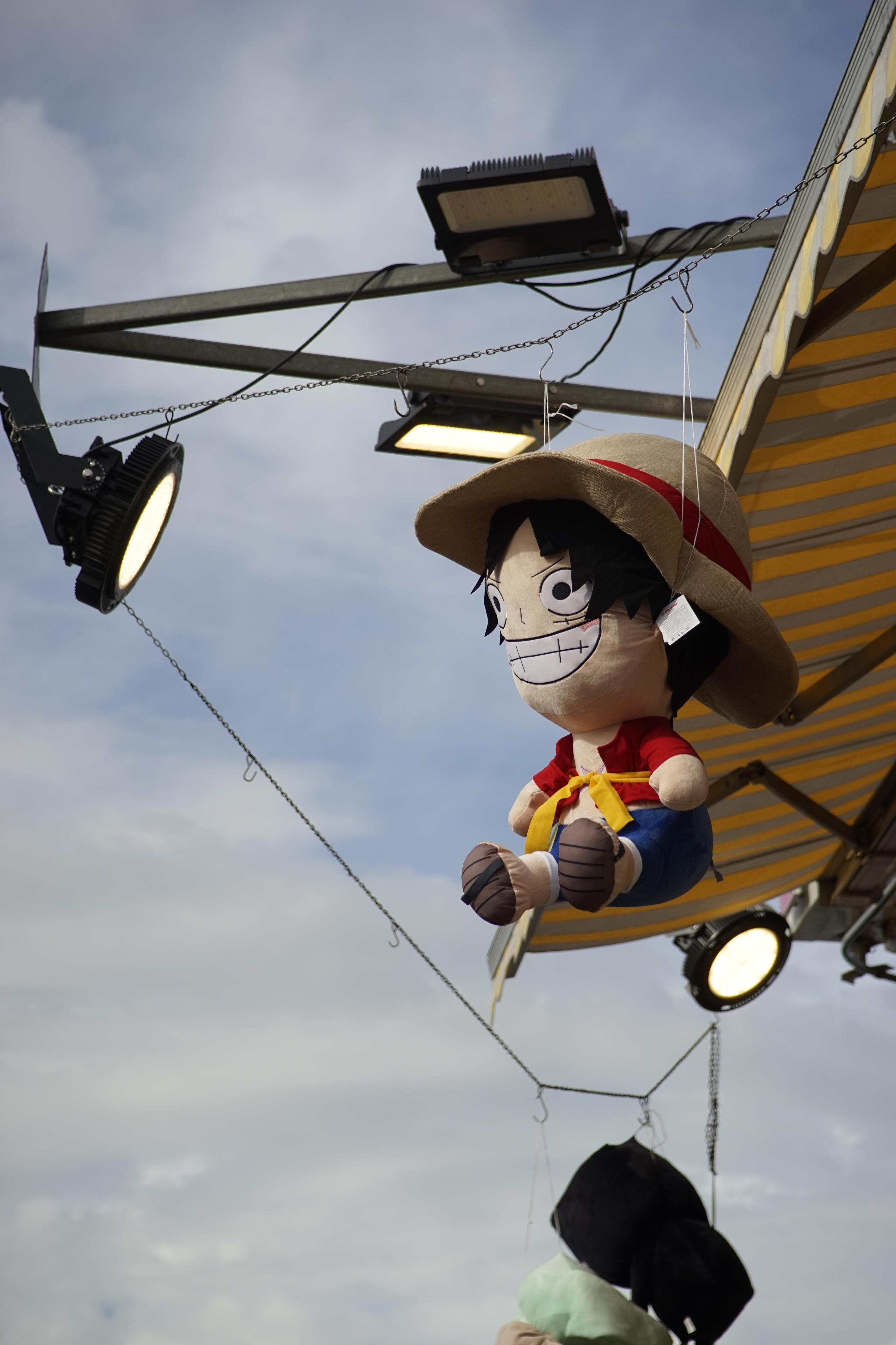 Bevor wir zum Riesenrad sind, sind wir aber erst mal kreuz und quer durch Pützchen gewandert. Und ich habe fleißig die ganzen Preise und Leckereien fotografiert. Neben den Lafufus sind scheinbar auch noch immer die One Piece Charaktere "in", denn die habe ich zu Hauf gesehen. Daneben aber auch der ganz normale Plastikschrott, den es seit Jahren gibt. Witzig dazwischen das eine einzige grüne Wahlplakat, das wohl jemand vergessen hatte. Und die Kotzkrake darf natürlich auch nicht fehlen.
