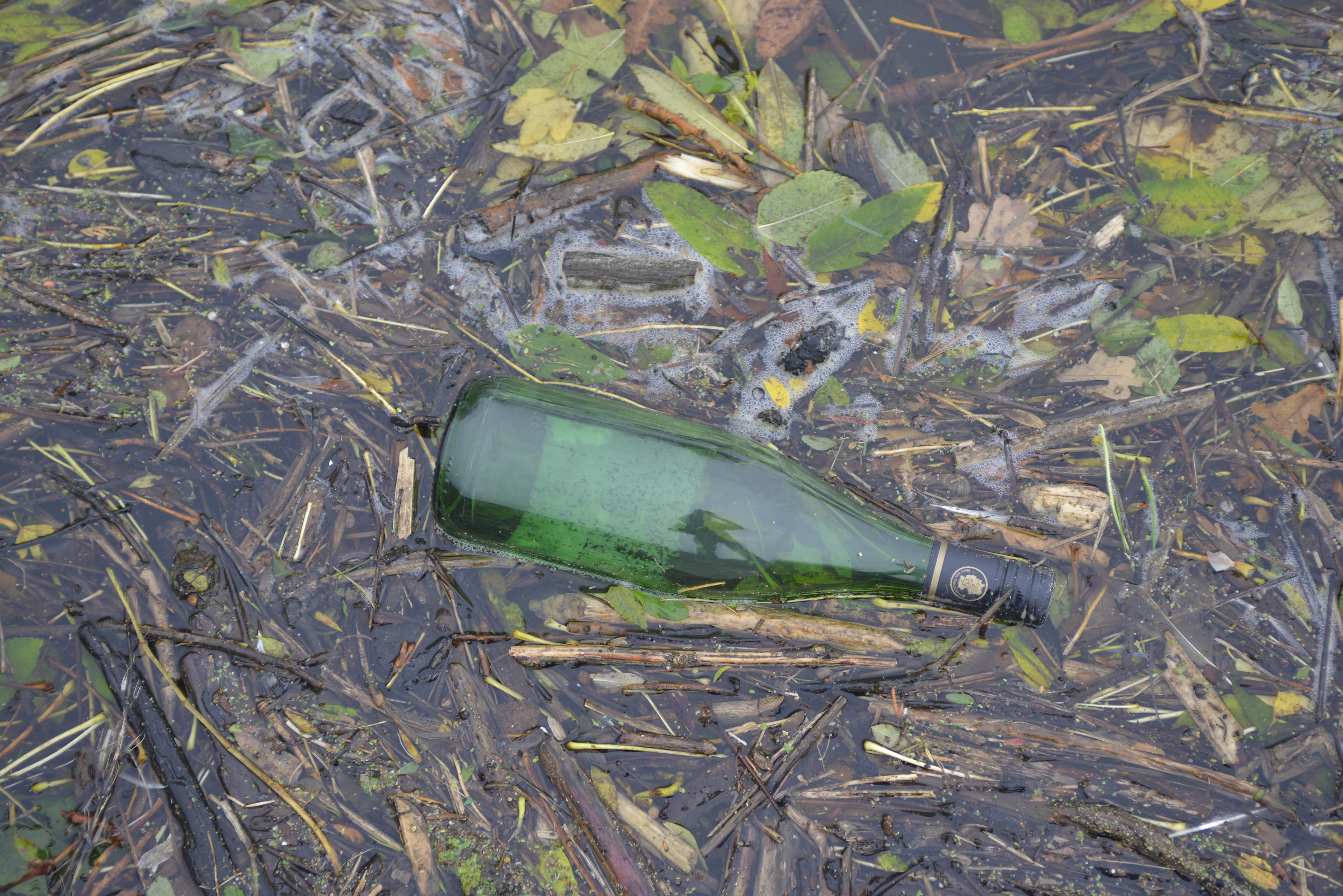 Sturm heißt Treibgut, auch an Binnengewässern. Hier sehen wir als erstes mal ein paar Flaschen, die scheinbar irgendwo abgehauen sind. Und in den Bäumen verfängt sich dann ja auch gerne mal was, in diesem Fall ein paar Luftballons. Wobei ich schwören könnte, dass da immer sowas im Baum hängt. Oder kommt mir das nur so vor? Seltsam...