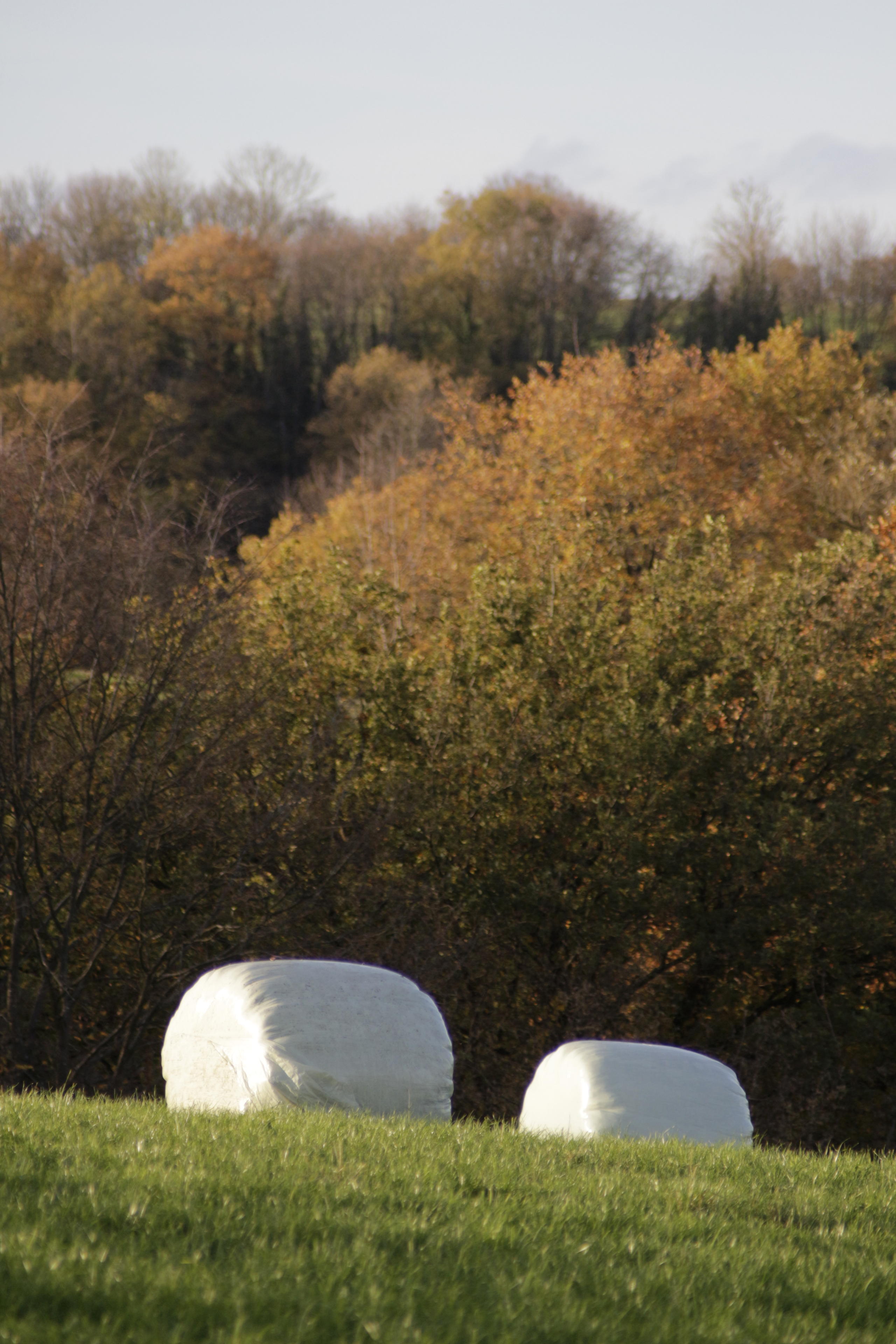 So, dann arbeiten wir die Liste da oben auch direkt mal in dieser Reihenfolge ab: Es ist Herbst und überall liegen noch die Strohballen in ihren Plastikverpackungen rum. Vor allem aber auch die vom letzten Jahr. Wie lange kann man das eigentlich noch benutzen? Ich mein, ja, das sind trockene Halme von Gras, aber schimmelt das in dem Plastik nicht irgendwann? Als Einstreu unter den Kühen wird es wohl noch reichen... Ich hab ja keine Ahnung. Landwirte hier anwesend?