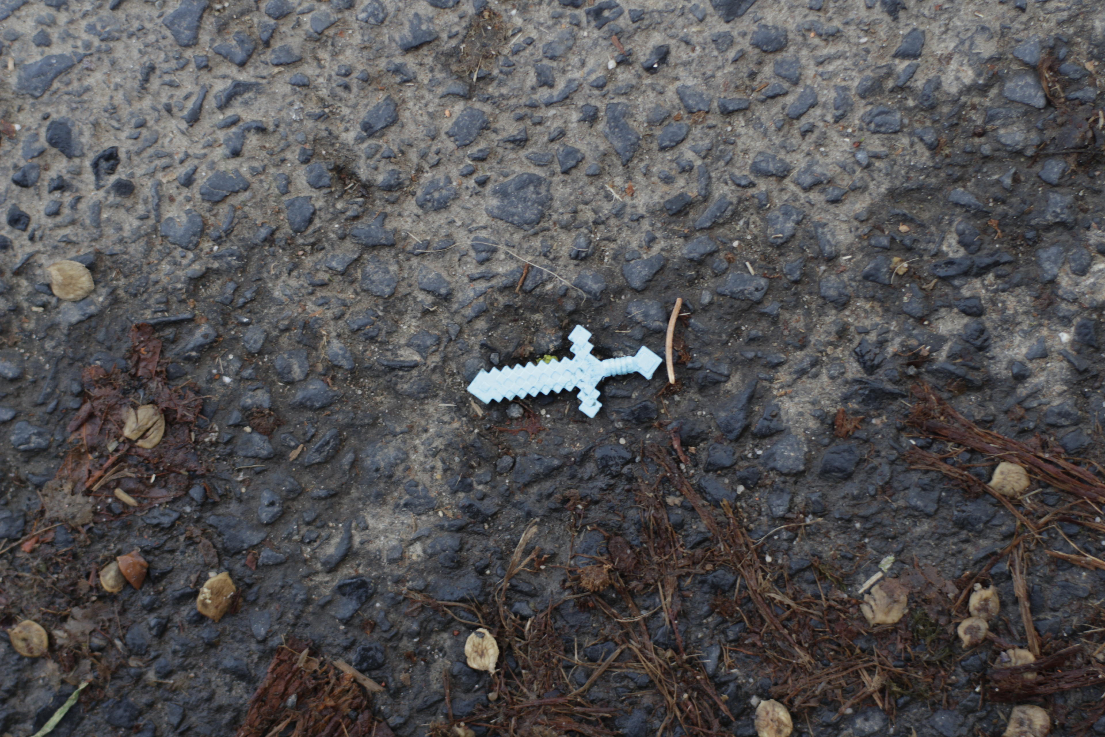 Dann aber auch wieder runter ins dunkle Tal. Weil, es wird um diese Jahreszeit dann doch recht schnell kühl, wenn die Sonne weg ist, und die stand schon bedenklich nah überm Horizont. Deswegen auch ISO 800 da oben bei den Pferden. Hatte in der Hitze des Gefechtes ganz vergessen, das wieder runter zu stellen, nachdem ich in den Schatten hinein mit dem Zoom getelet hatte. Beim Abstieg jedenfalls noch eine Strohrolle eingesammelt, ein an der Verkehrsberuhigung verlorenes Kennzeichen dokumentiert und schließlich noch Excalibur (+10 Strength, -5 Dexterity) gefunden.