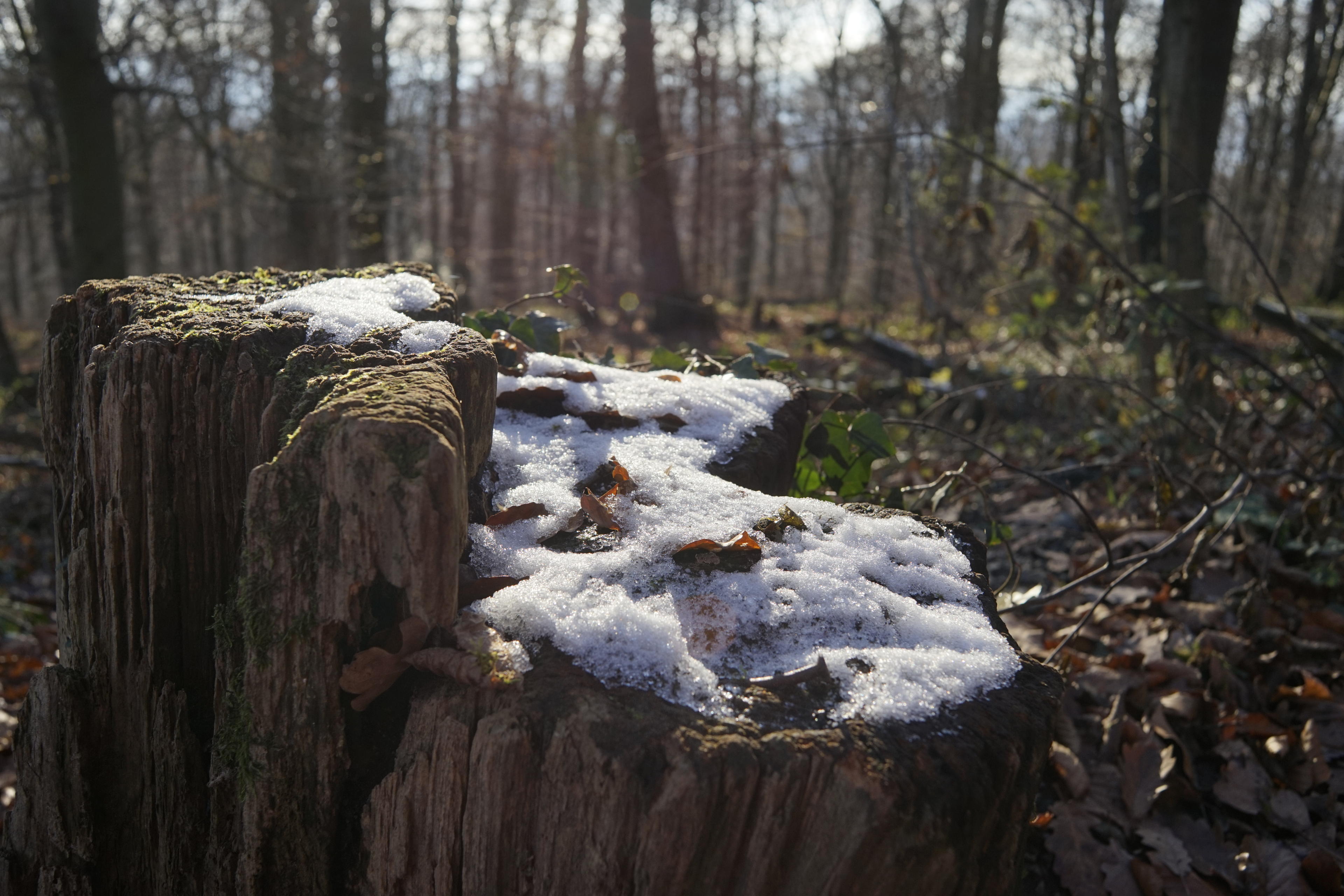 Auf halbem Weg nach oben merkt man dann: Joah, war kalt die letzten Nächte. Da lag noch der gefroren, weiße Mist rum, den ich so leiden kann. Also, nicht. War auch gut windig, selbst hier im Wald. Dafür hat die Sonne allerdings so richtig kräftig geschienen und dementsprechend ein sehr buntes Herbstfarbenspiel veranstaltet: Lange Schatten, viel Kontrast. Und Lensflare, wenn man es drauf anlegt!