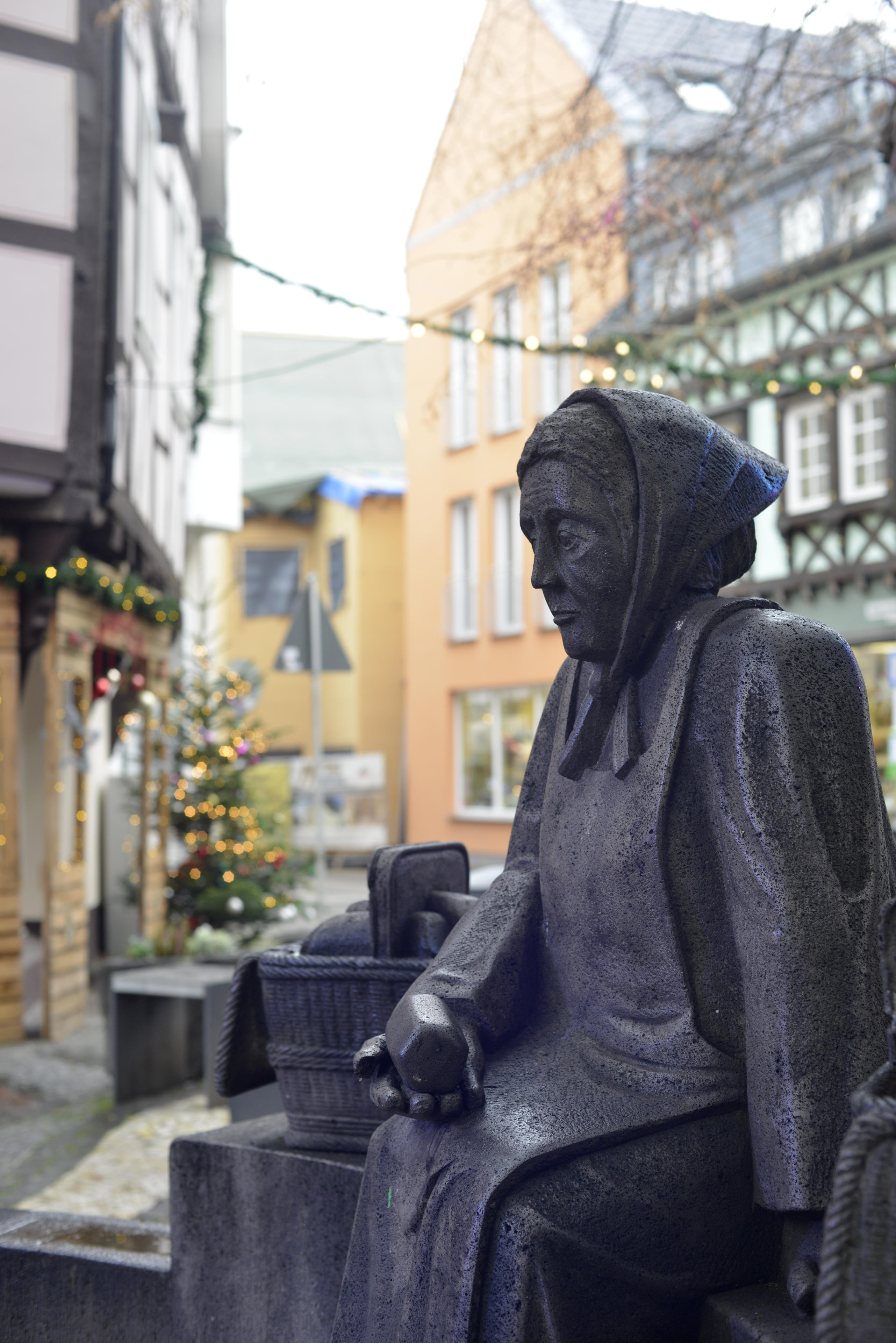 Wie man sehen kann, die Stadt war gut besucht an jenem Samstag. Hatte aber den Eindruck, dass das meiste Wochenendshopper waren, die nicht unbedingt zum Weihnachtsmarkt wollten. Das wiederum machte mir das Fotografieren etwas schwerer. Ich versuche ja immer, möglichst wenig Leute drauf zu haben. Insbesondere, wenn ich nebenbei auch noch s/w-Bilder mit einer Analogen mache. Dieses Mal war meine Wahl auf die F801 gefallen, geladen mit einem Kentmere 400. Muss ja auch was hermachen, wenn man schon mal in eine Gegend kommt, in der man sich normalerweise nicht aufhält. Muss zugeben, habe richtig Bilder verschwendet. Ich habe den Eindruck, das werden am Ende mehr geworden sein, als ich hier heute an digitalen ausstelle.