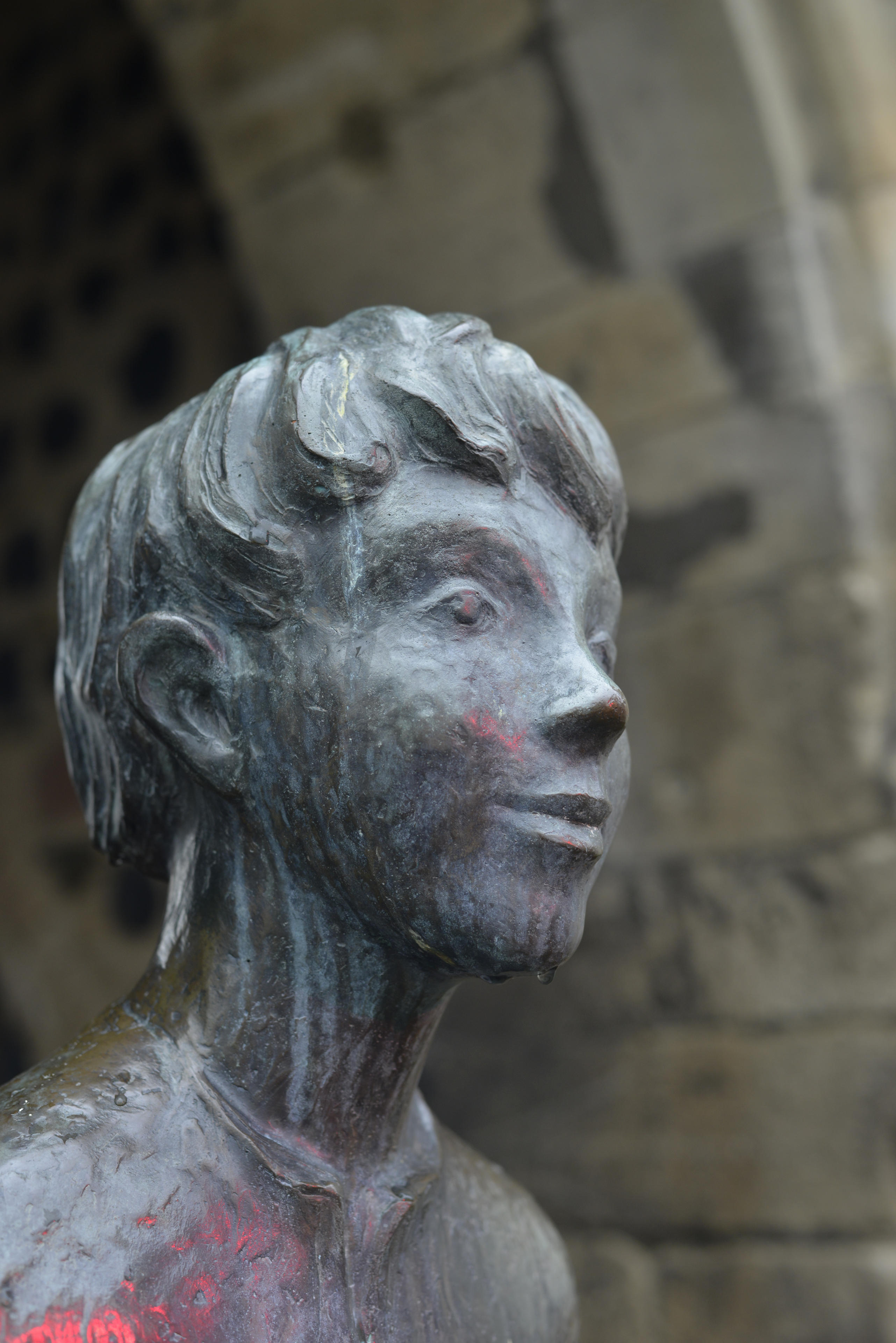 Die Stadt war übrigens mit diversen bunten Lichtern beleuchtet. Wo wir gerade von realistischeren Farben reden. Wenn es trotzdem manchmal etwas seltsam aussieht, was ich da fotografiert habe, wie etwa die steinerne Frau da oben, das liegt am lila Licht!