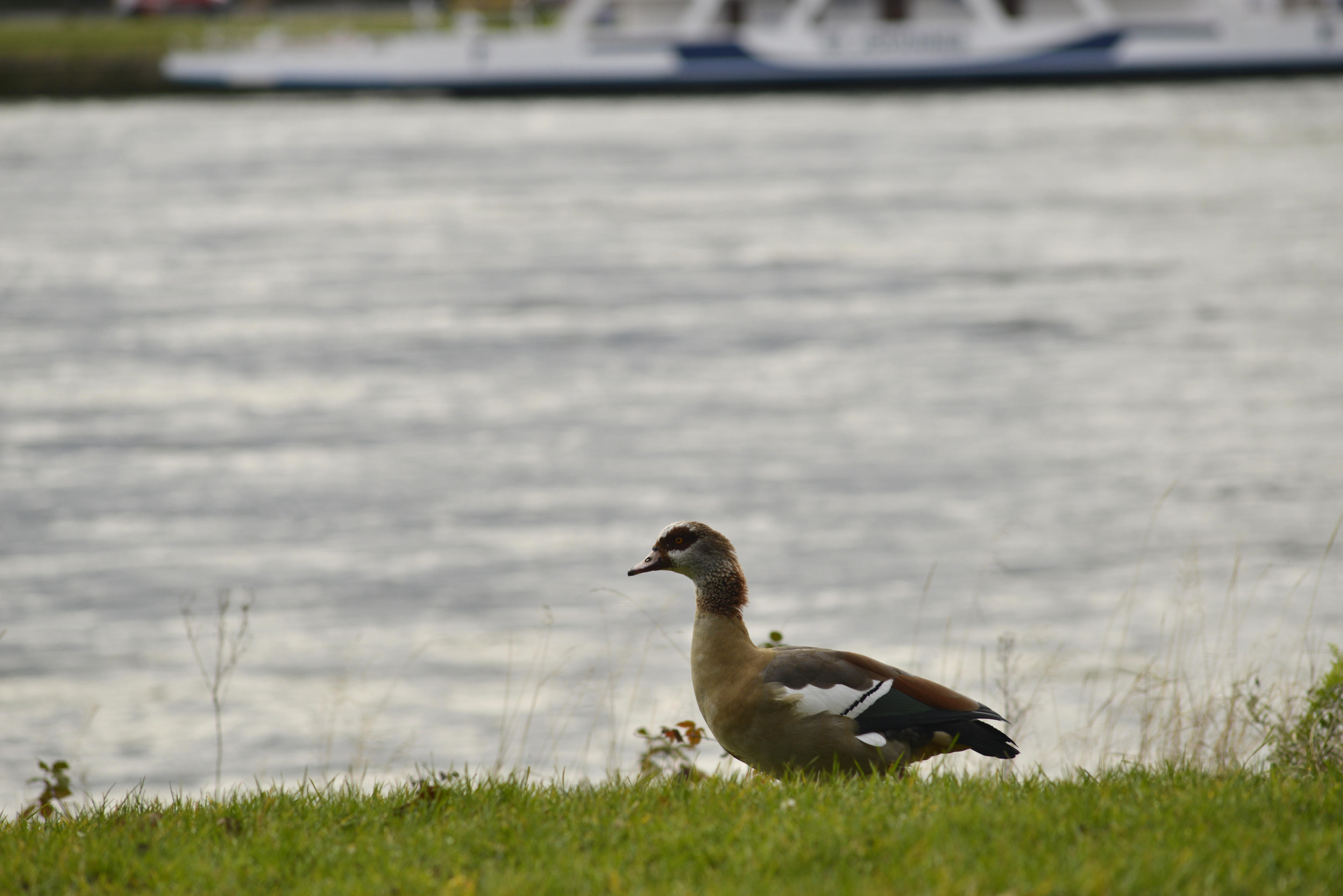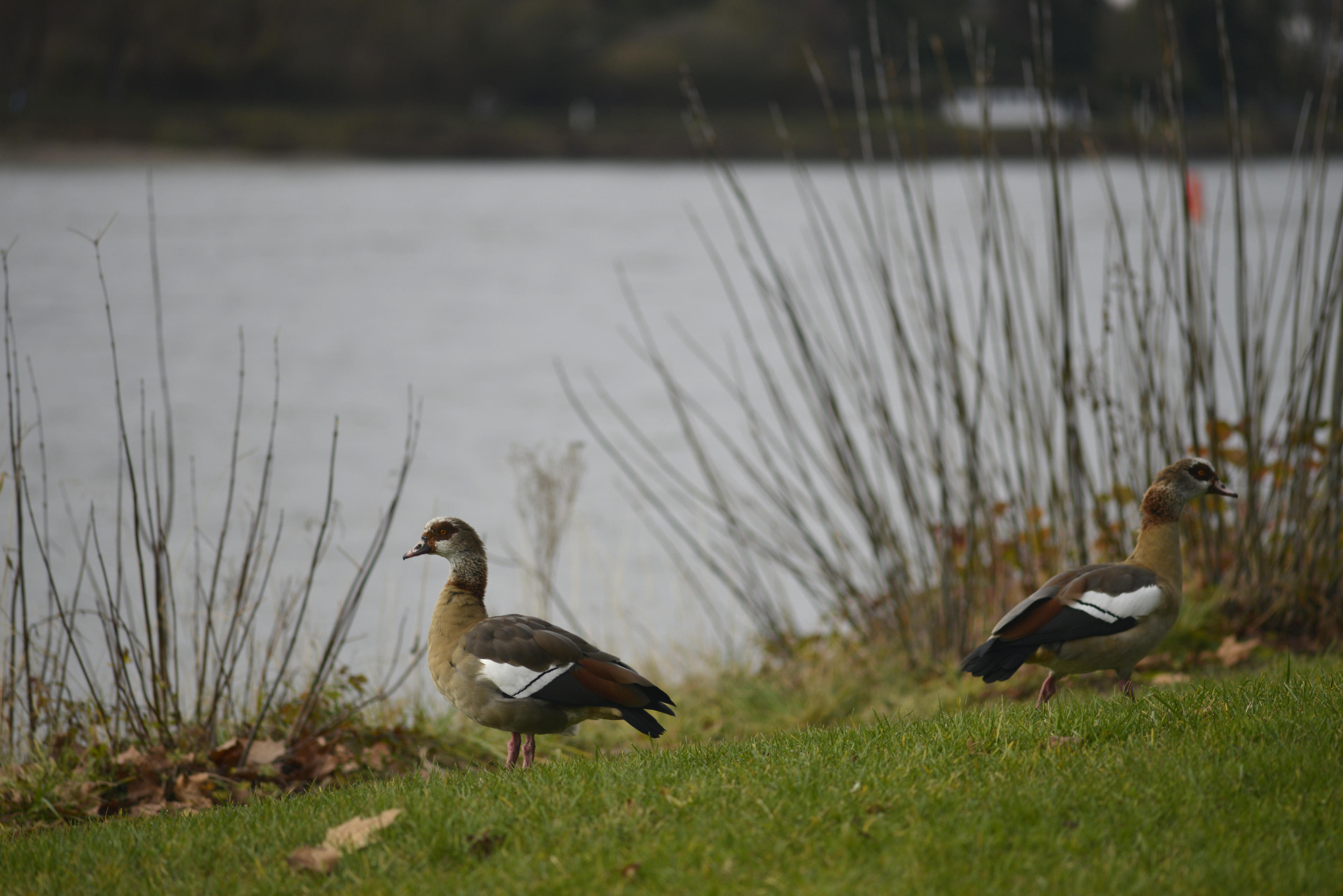 War ich gerade in die Knie gegangen, um die Gänse am Wasser zu bearbeiten, da kommt ein Schwarm von diesen möwenartigen Tieffliegern angerauscht. Die Gelegenheit! Einfach drauf halten! Der ganze Schwarm so: "Ach du Scheiße, da sitzt wer!" Besonders das arme Tier, das ich ins Visier genommen hatte, hat sich scheinbar zu Tode erschreckt! Aber so ist es ungefähr an der richtigen Stelle gewesen, dass ich es gut und schnell mit dem manuellen Objektiv einmessen konnte. Das Ergebnis: Voll krass Möwe! Die besten Fotos, die ich seit langem gemacht habe! Dagegen können die langweiligen Nilgänse nicht anstinken!