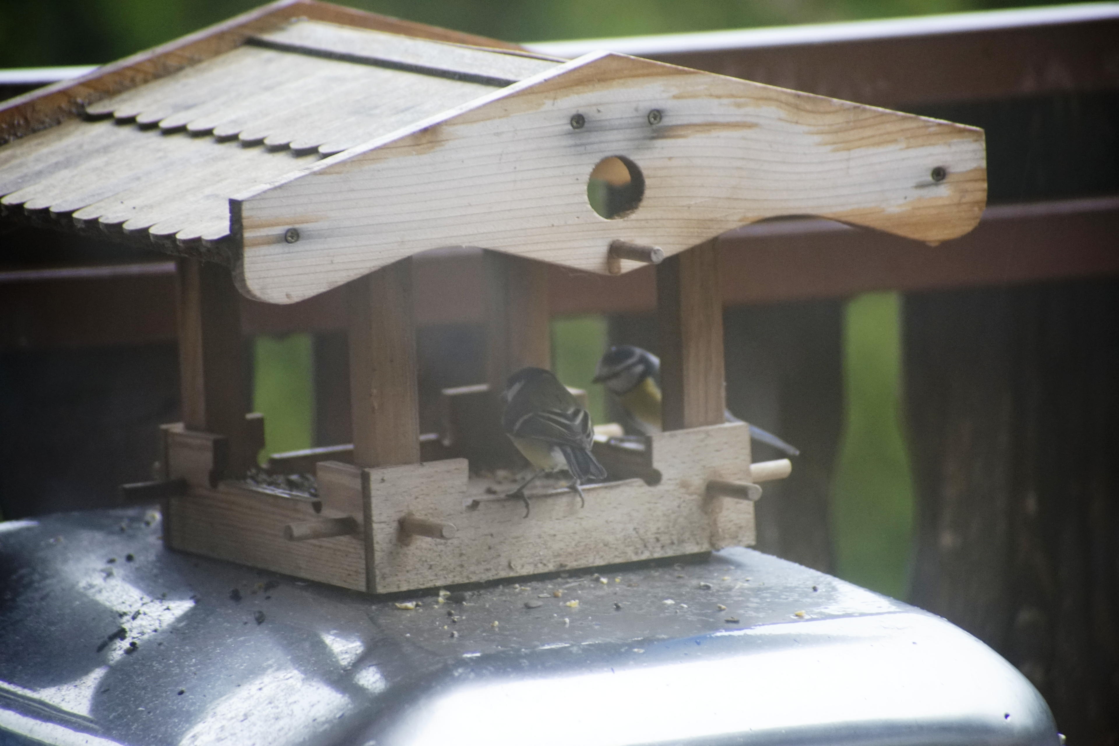 Damit kommen wir dann mal zu der Dunklen Seite der Macht: Es ist halt nicht wirklich modern. Heutzutage wäre da sicher eine Innenfokussierung drin, schnell und mit Ultraschall-Motor. Hier müssen wir einfach wie immer auf den eingebauten Motor in der Kamera vertrauen. Der Adapter an der A7 ist eher langsam, was das angeht. Nun hat das Objektiv aber auch einen sehr weiten Wurf, sodass es sehr präzise manuell zu fokussieren ist, wenn man das braucht. Bei den Lichtverhältnissen heute: Ja! Kann passieren! Dann das Vogelhaus stand so im Schatten, dass es selbst bei ISO 1600 (deshalb das Rauschen) nicht über 1/50s hinaus ging. (Dass es recht gut in der Hand liegt, sieht man daran, dass dabei tatsächlich einigermaßen scharfe und unverwackelte Bilder gemacht hat. Oder ich hab heute einfach einen sehr guten Tag, kann natürlich auch sein!