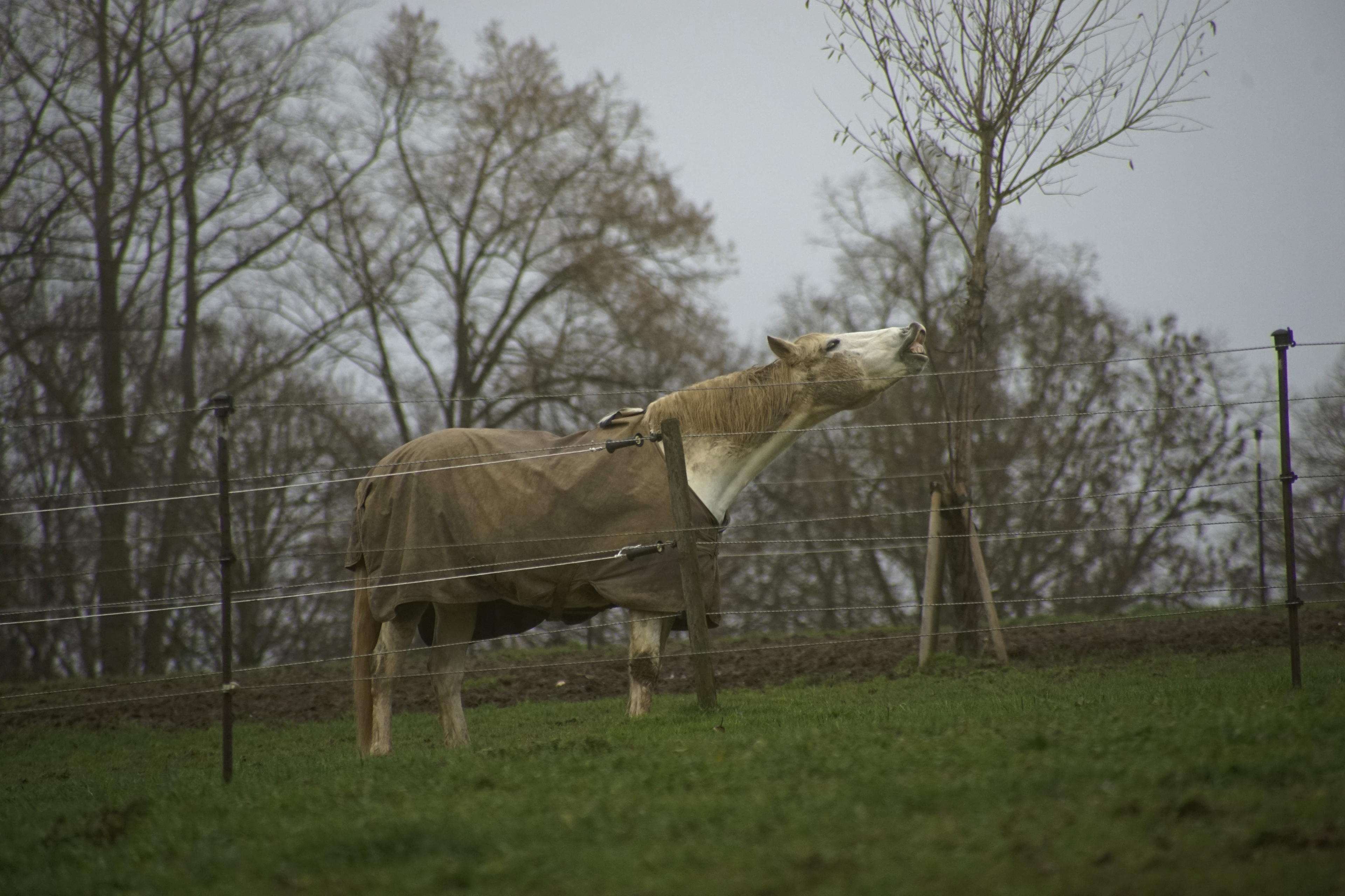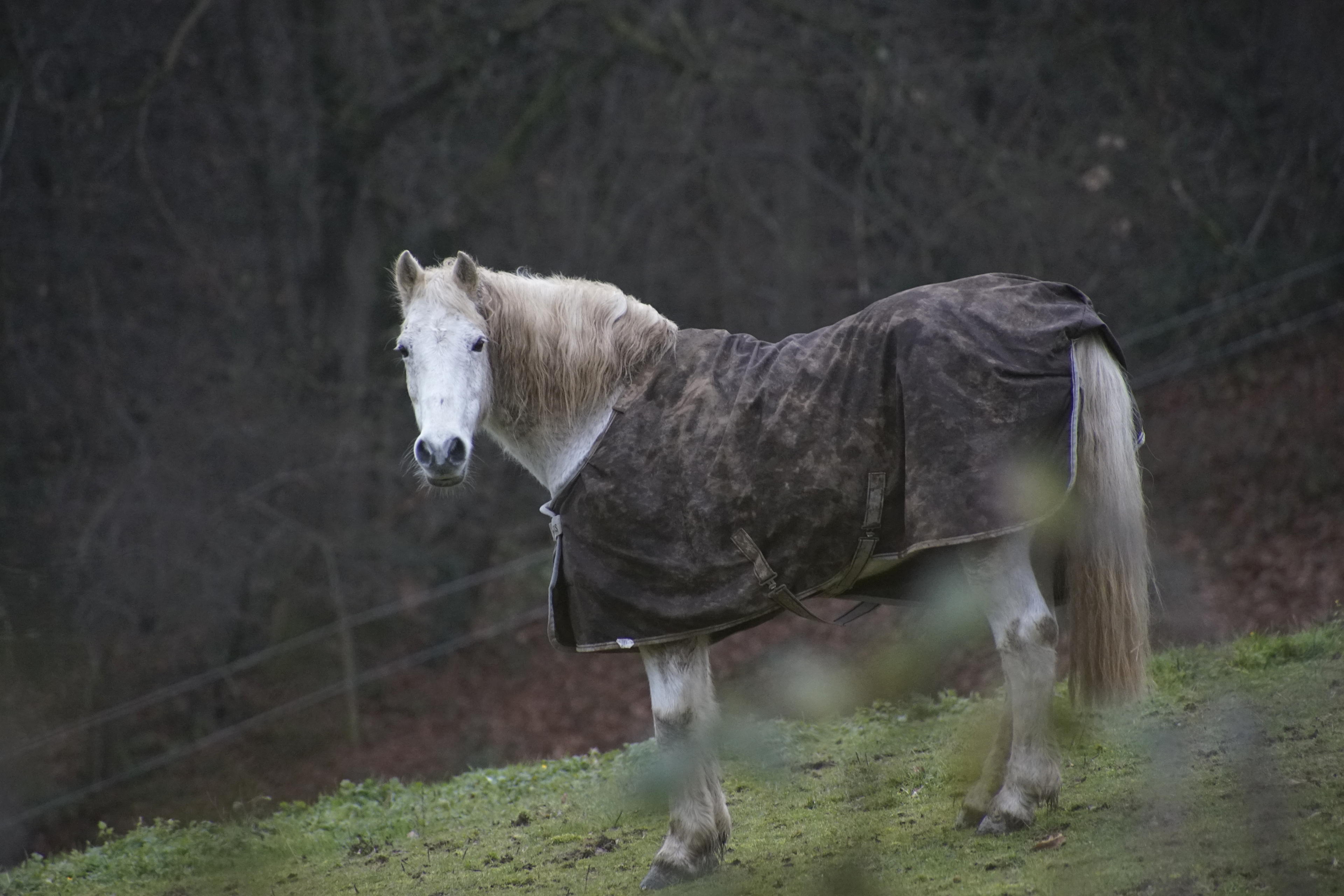 Dann steht man aber endlich zwischen all den Pferden, die hier oben zu dem Reiterhof gehören. Wie man sieht, war es eher nass-matschig die letzten Tage und das haben die Damen und Herren auch direkt mal ausgenutzt, um sich im Schlamm zu wälzen. Da hilft auch kein Jäckchen, die sind einfach schmuddelig! Gut, so eine schöne dicke Schlammschicht hält warm und zugleich die Viecher fern. Wobei, jetzt im Winter sind ja eher weniger Bremsen, Fliegen und sonstige Beißinsekten unterwegs.
