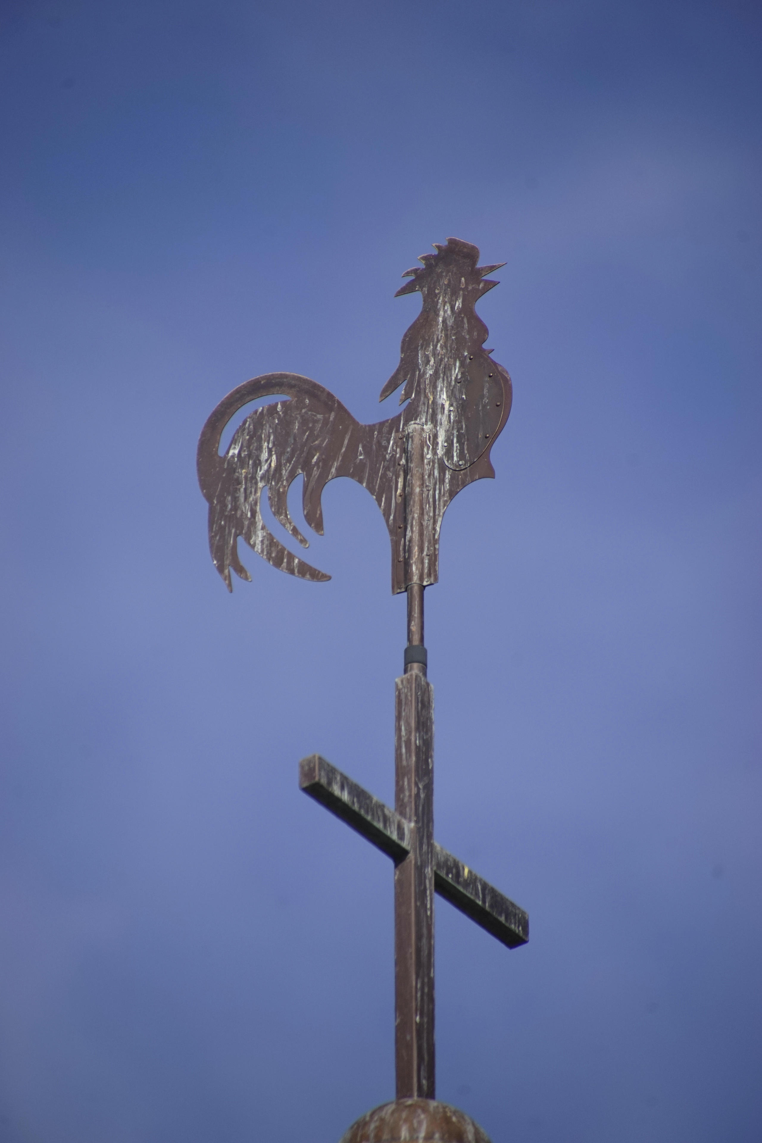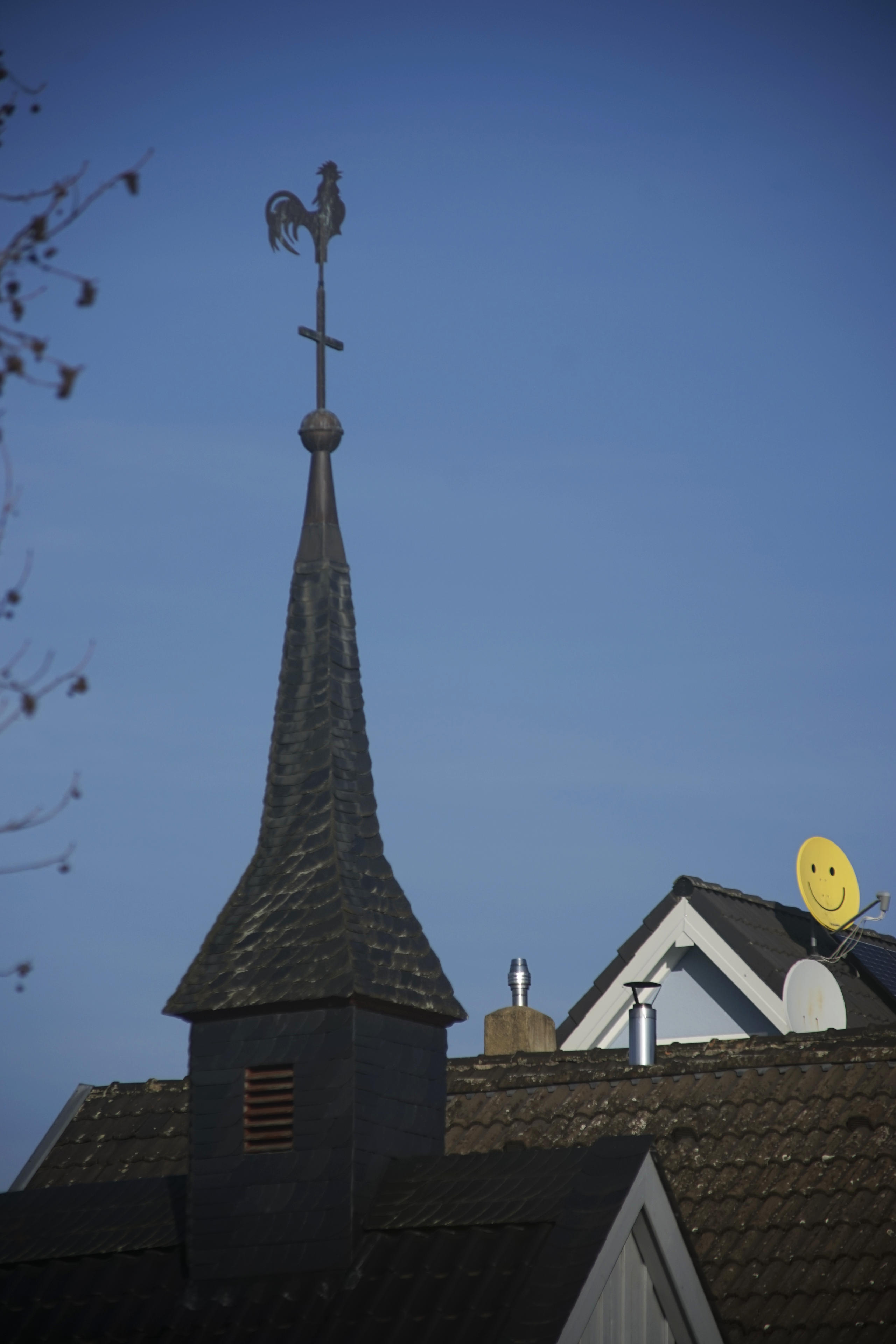 Im Dorf steht jedenfalls die Kapelle, die mit den an diesem Objektiv verfügbaren Brennweiten schon eher ein bisschen schwierig zu fotografieren ist. Dafür kann man Details mitnehmen, die man sonst eher nicht zu sehen kriegt, zB die Kaka-Streifen am Hahn auf dem Türmchen. OK, musste man jetzt auch nicht so dringend wissen, aber. Weil! Ich! Es! Kann!